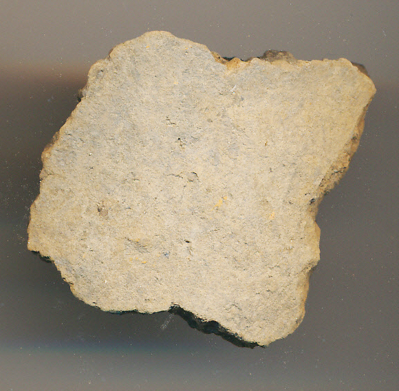 Kívül szürkés téglaszínű felületű, fekete törésű, kevés kerámiazúzalékkal soványított, korong nélkül készített edény kopott oldaltöredéke.