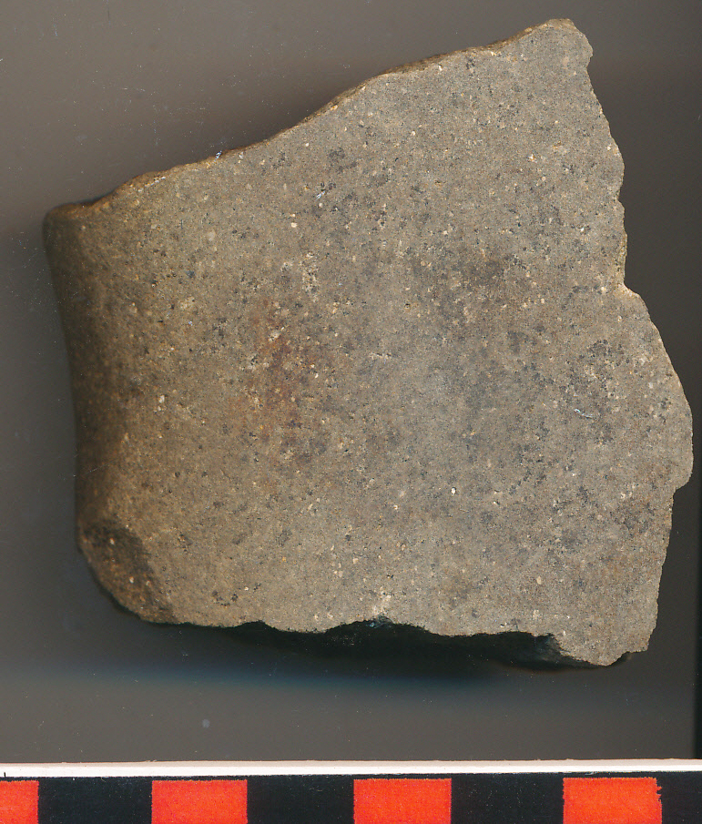 Sötétszürke, tömött anyagú kőtárgy, melynek két oldala szépen csiszolt, egyik éle elvékonyodóan ívesen csiszolt.