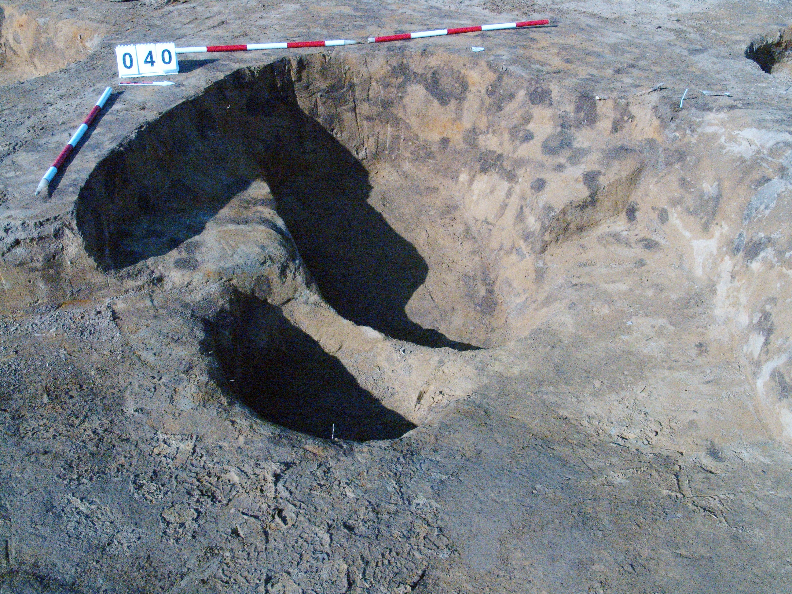A bontás során a függőleges fal alapján és egyenes alja alapján egy ház sarka lehetett, amelybe beleásták a 40. számú gödröt. A K-i oldal túlbontása miatt nem dönthető el, mekkora volt és mi ez!