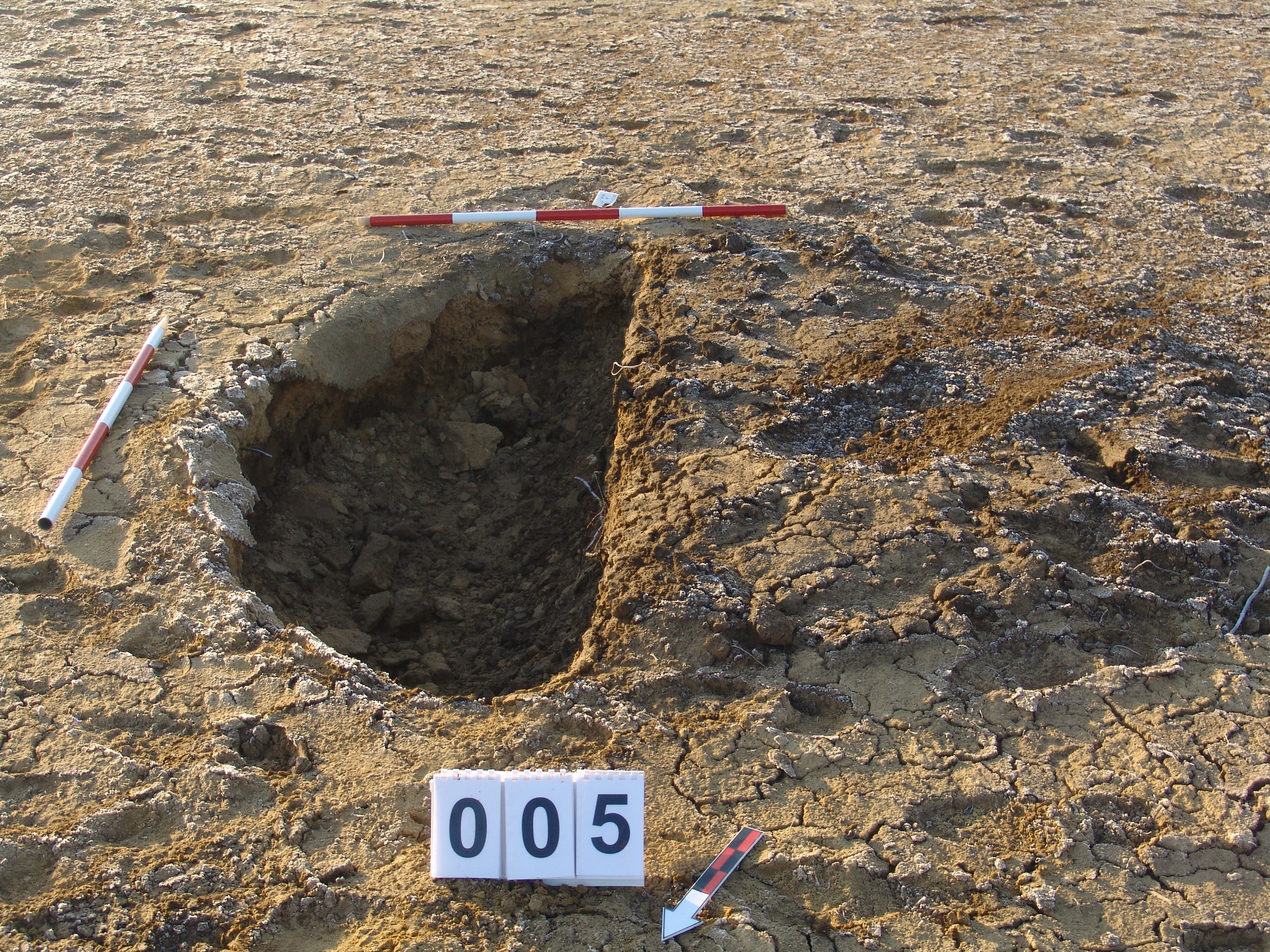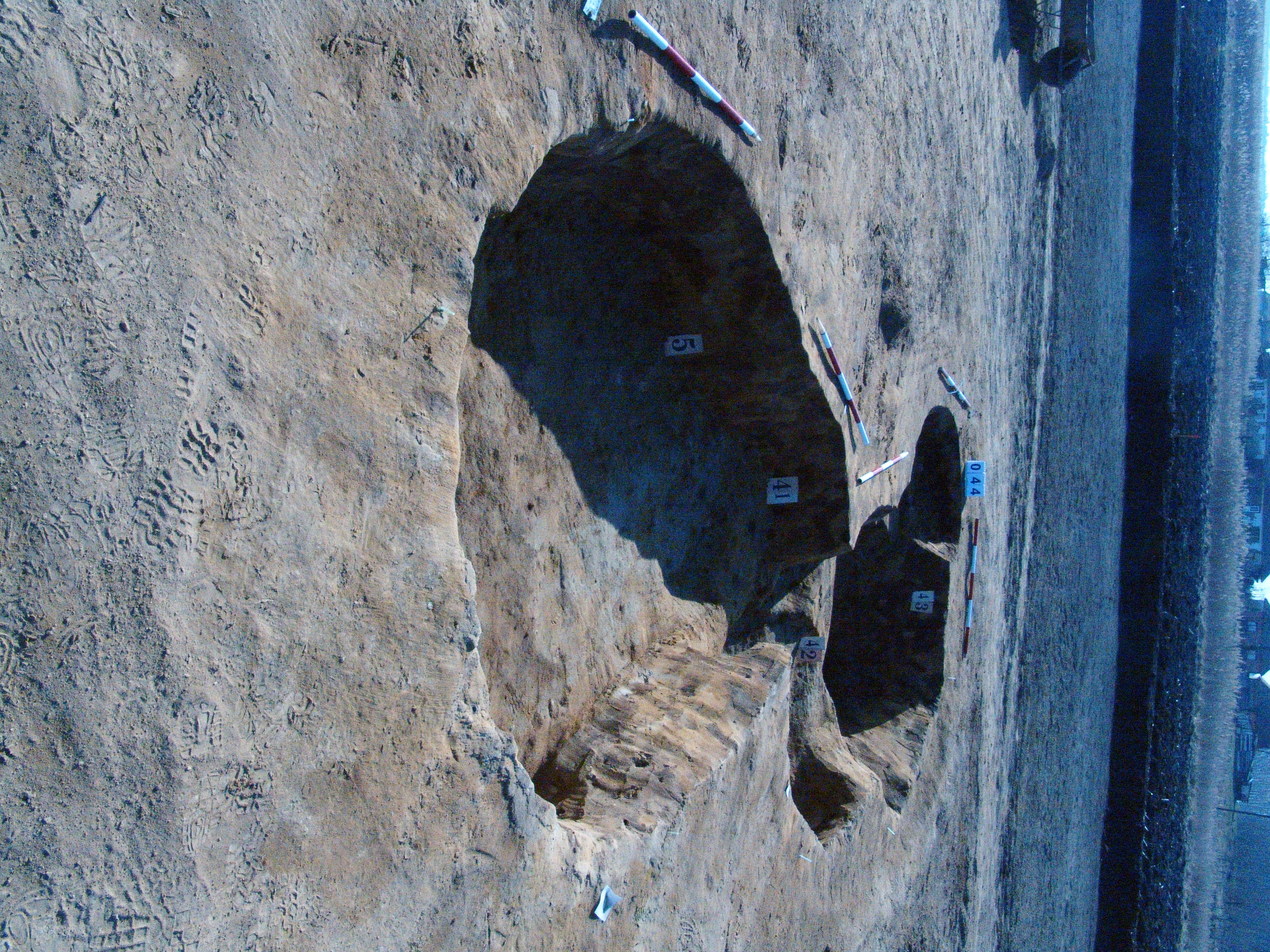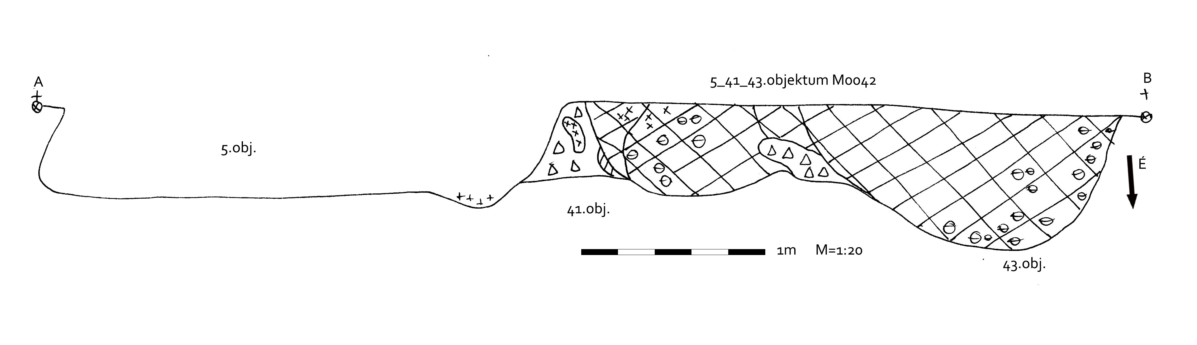 Az MNM NÖK 81639/1. számú kutatóárkában körülbelül 1/3 részben kibontott gödör. A Ny-i oldal 2/3 -a maradt meg. NÖK száma 81639/1. - Str. 5. Jól rajzolódó ovális alaprajzú, egynemű barnásszürke betöltésű, függőleges falú gödör. Fent 215 X 245, alul 240 X 197 centiméter. Mélysége: 47-55 centiméter.