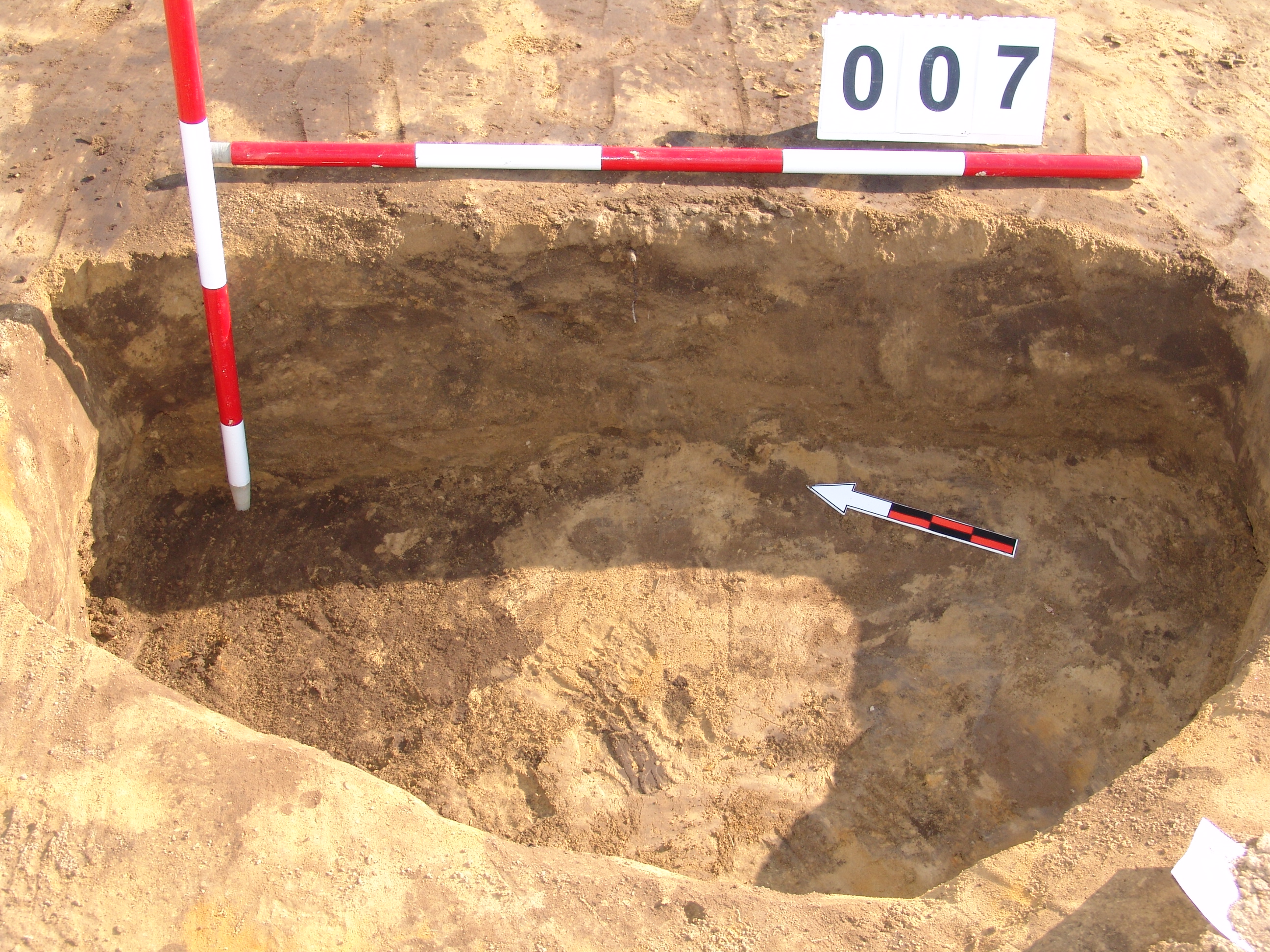 Az MNM NÖK által a 81639/1. számú árokban kibontott nagyon sekély gödör, melynek K-i fele maradt bent. Jól látszó kerek folttal jelentkezett. Betöltése: sötétbarna. Fala függőleges, alja egyenes. Valószínűleg a NÖK str.4.