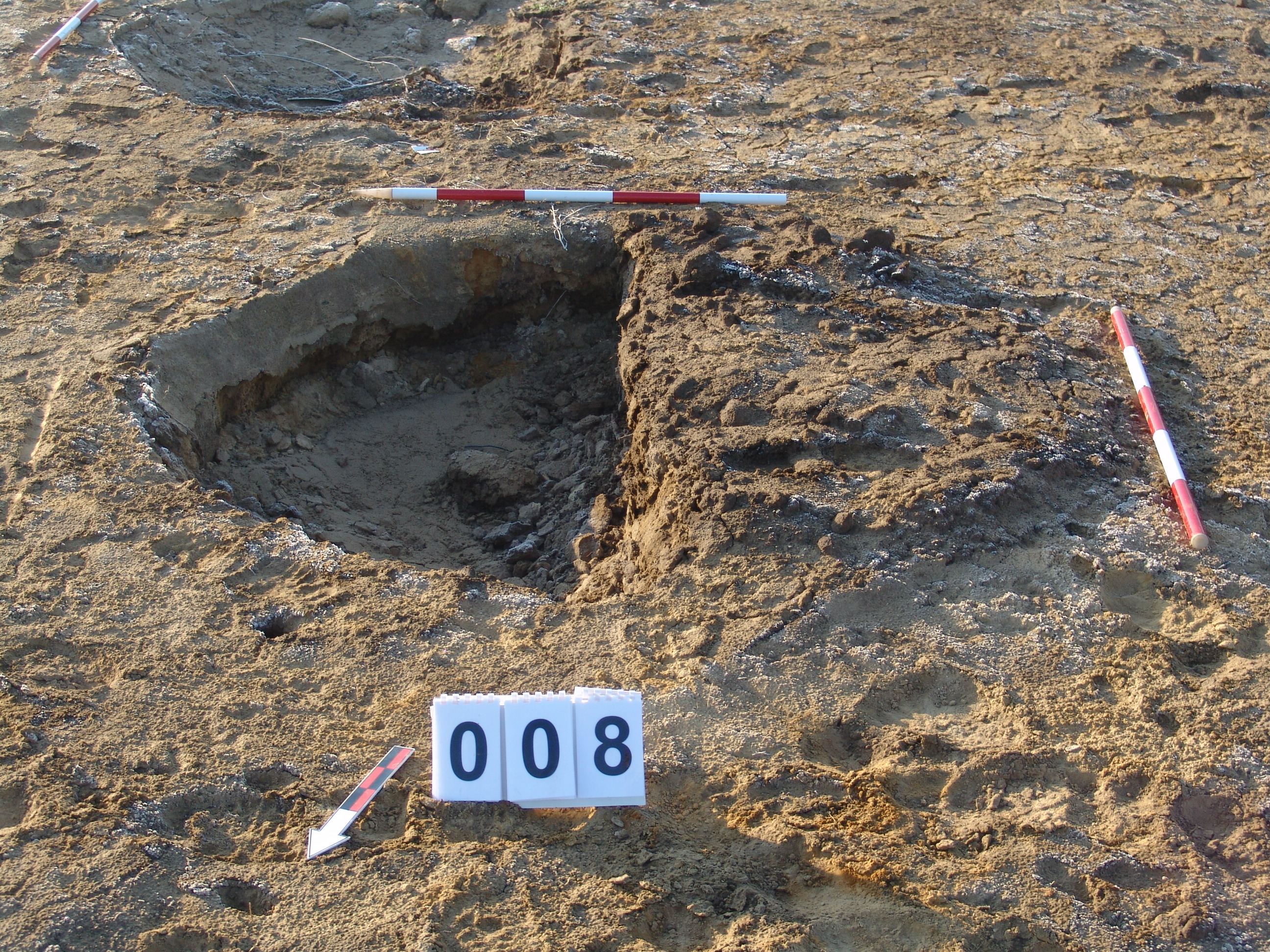 Az MNM NÖK által elkezdett gödör a 81639/1. számú szondában. Keleti felét bontották ki. A 3457. karónál lévő fél objektum. Kerek szabályos fala volt. Fala csaknem függőleges, alja egyenes, betöltése erősen állatjáratos barnásszürke egynemű. Átmérője K-Ny 172 centiméter fent, lent 150 centiméter. É - D fent 170 centiméter, lent 166 centiméter. Mélysége: 31 centiméter.