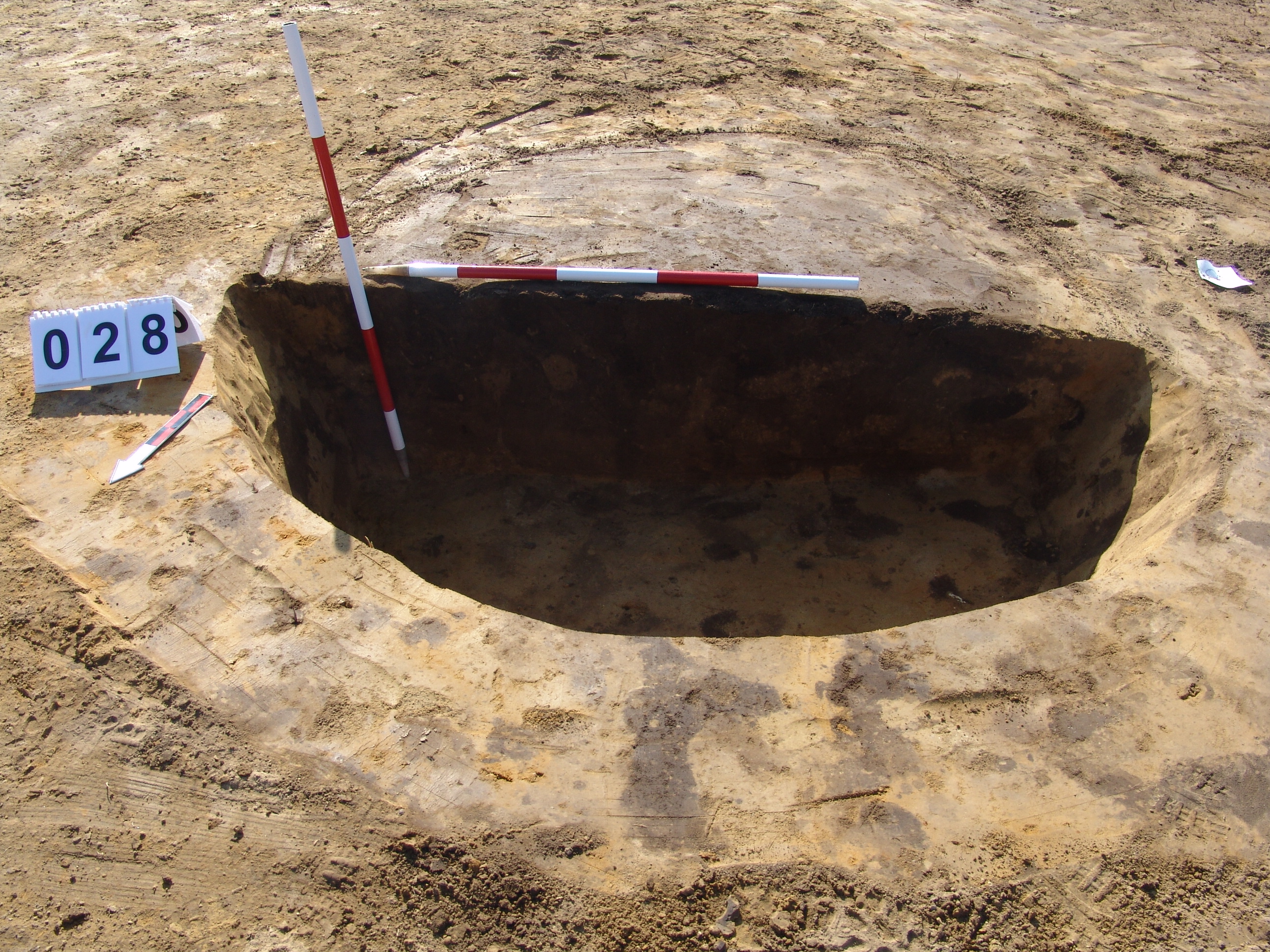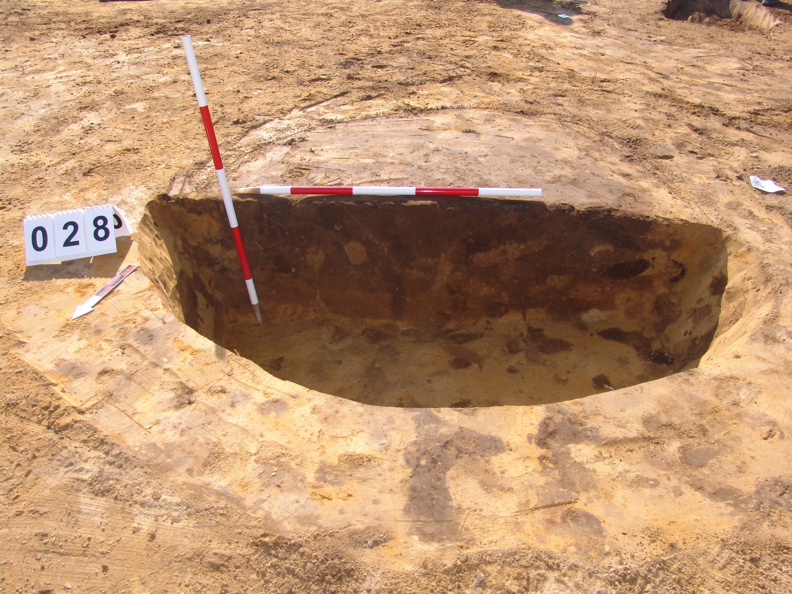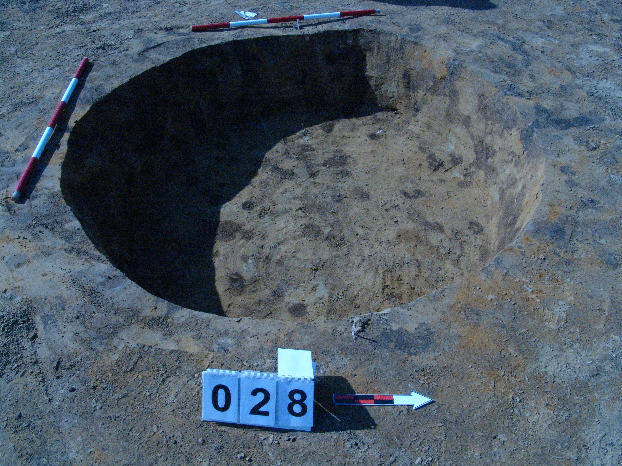 A feltárandó terület ÉNy-i sarkában jelentkező, kissé elúszó, kerek barna folt a sárga homokban. Jól látszó, kerek folttal jelentkező gödör. Betöltése felül barnásszürke, alul sötét barna. Fala kicsit meredek, alja felé szűkült, alja egyenes. Átmérője fent 187 X 195, lent 170 X 154 centiméter. Mélysége: 39-47 centiméter.