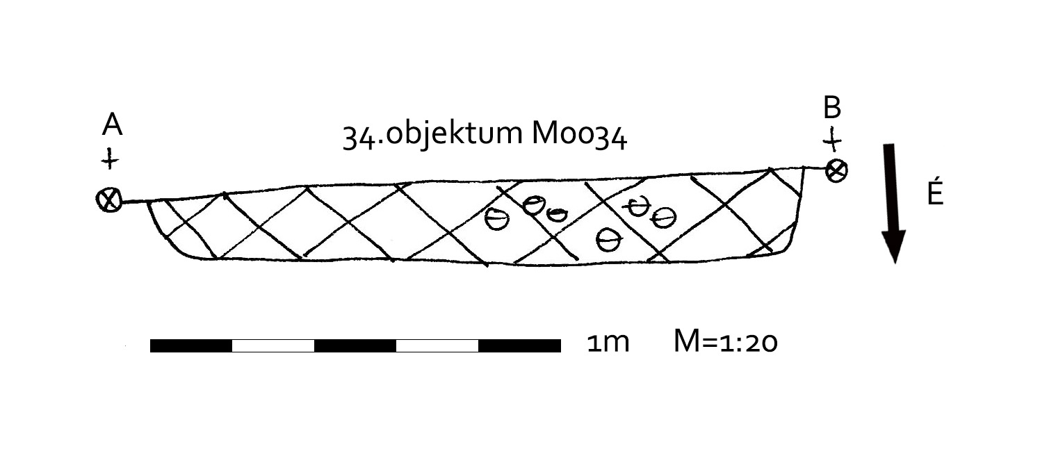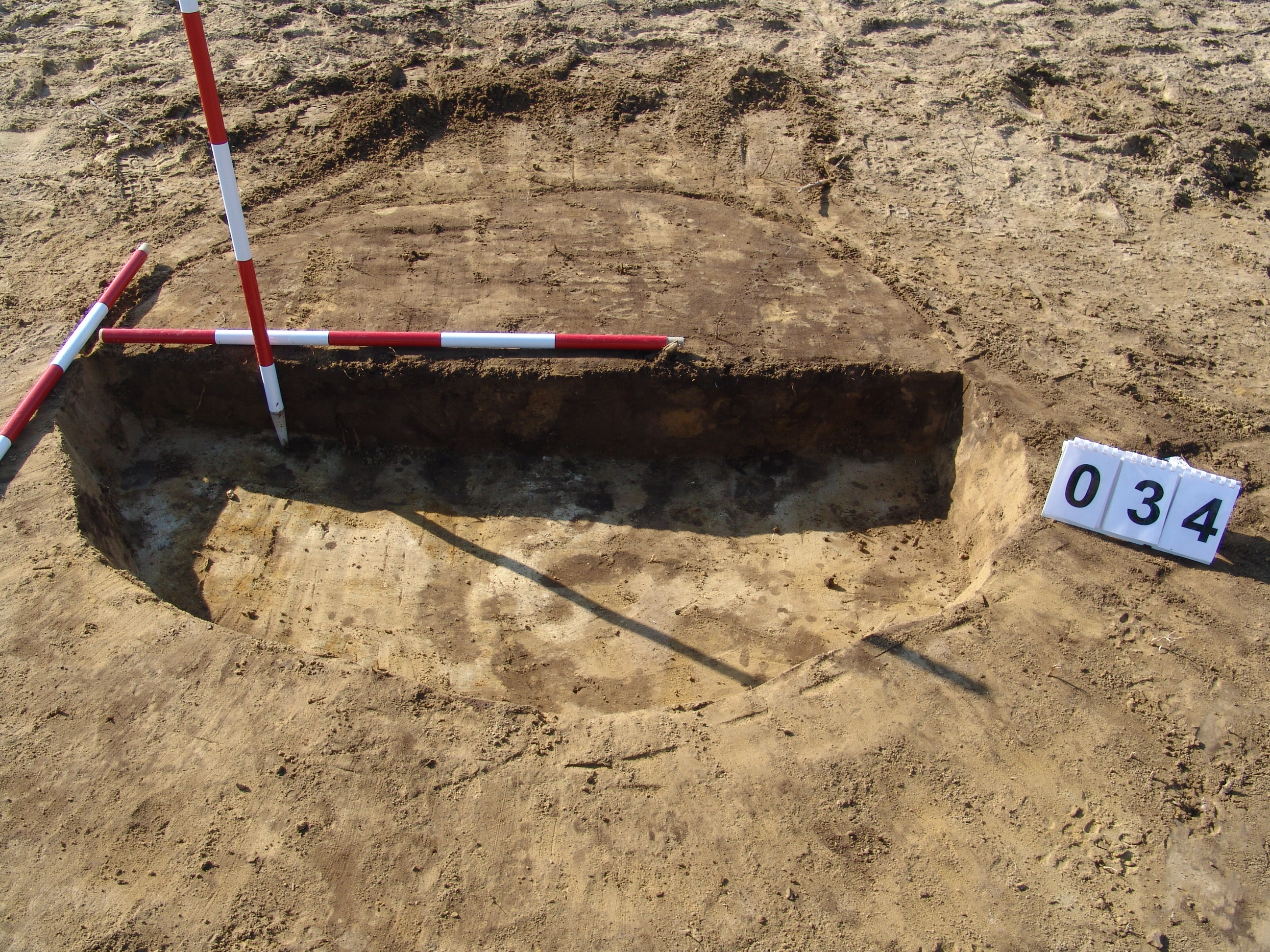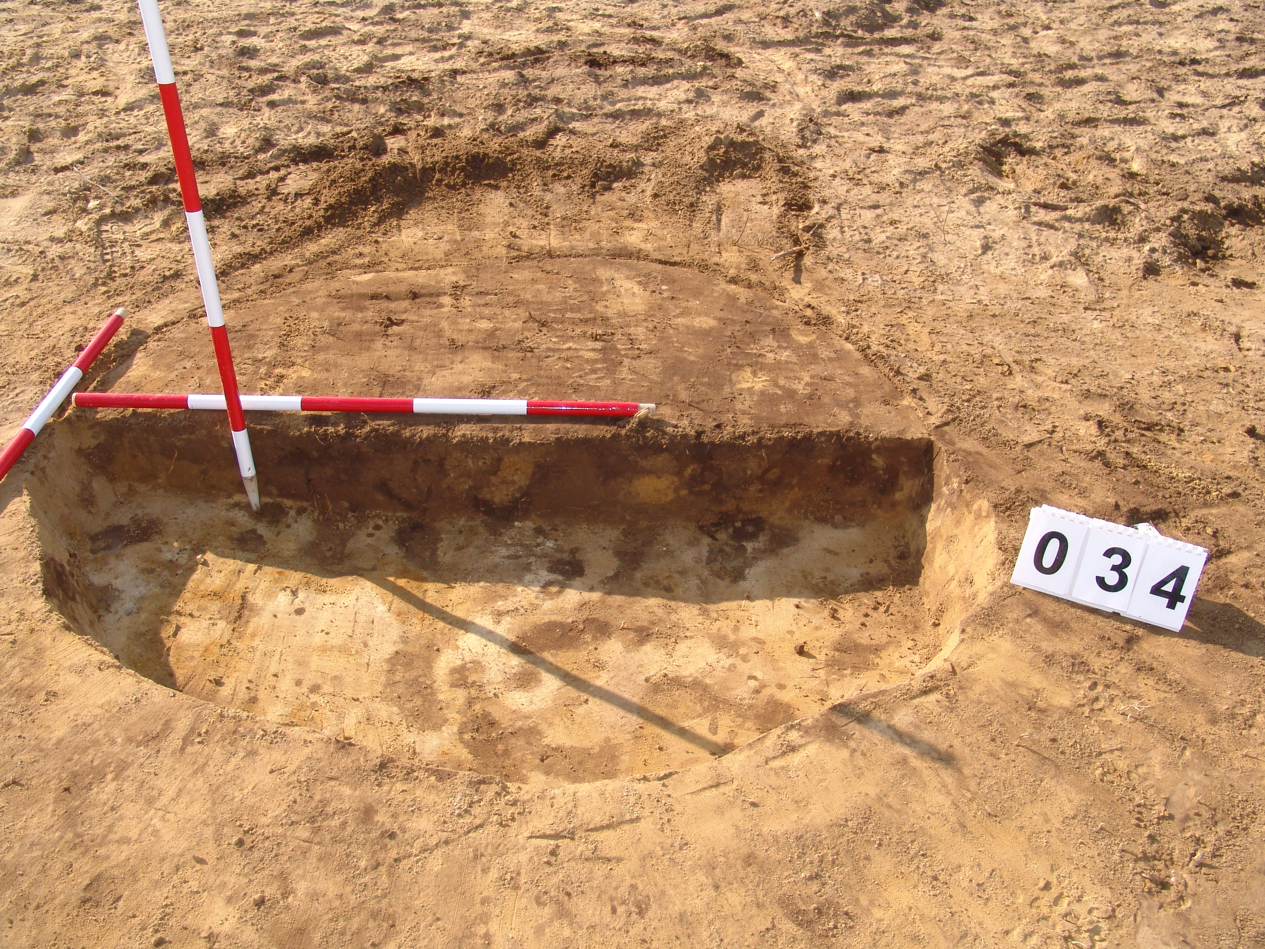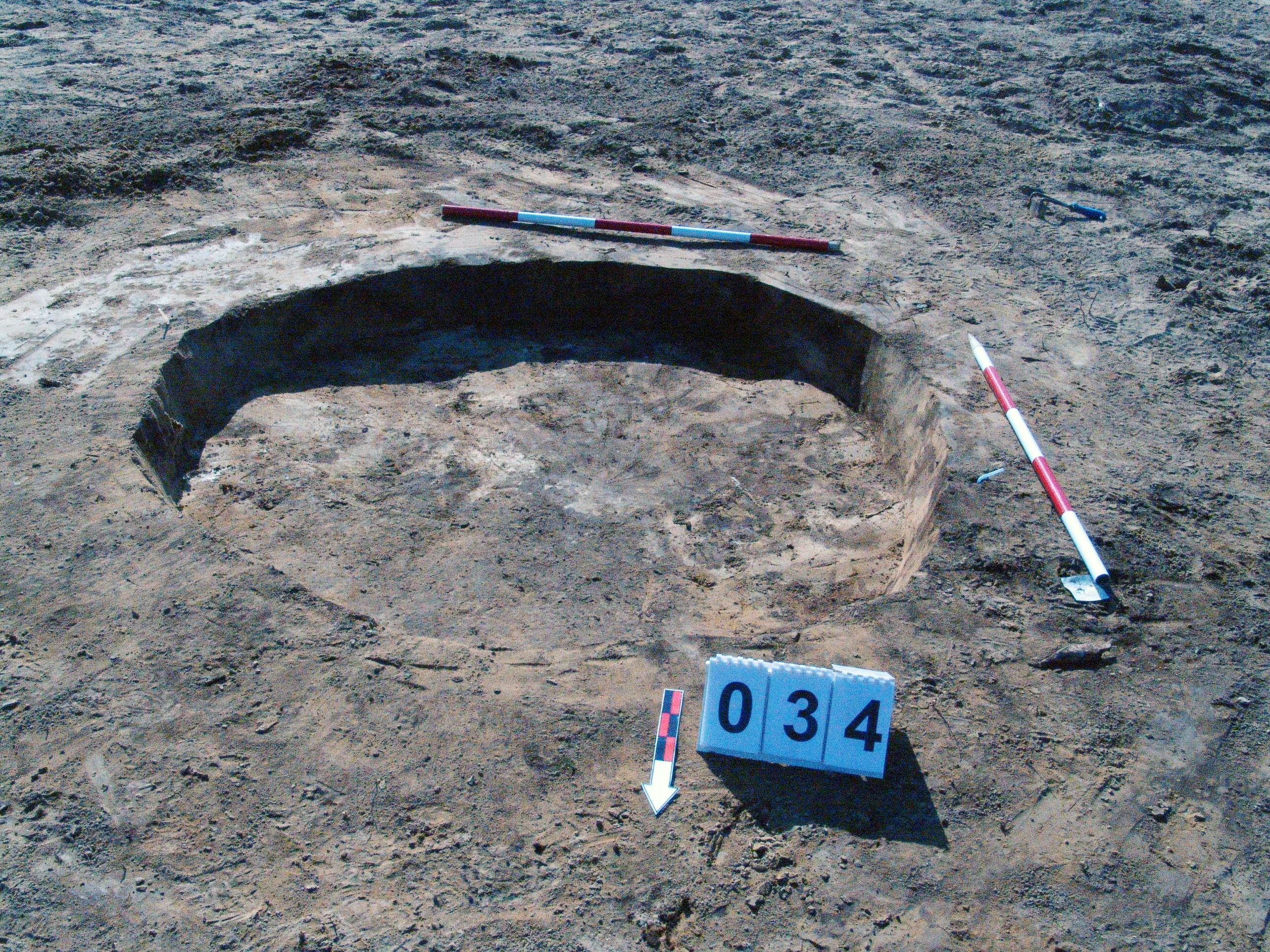 Szabályos, kissé elúszó kerek folttal jelentkezett. Betöltése: egynemű, barnásszürke. Fala függőleges, alja egyenes, sekély. Átmérője: 150 - 156 centiméter. Mélysége: 19 centiméter. Foltfotó nem készült!