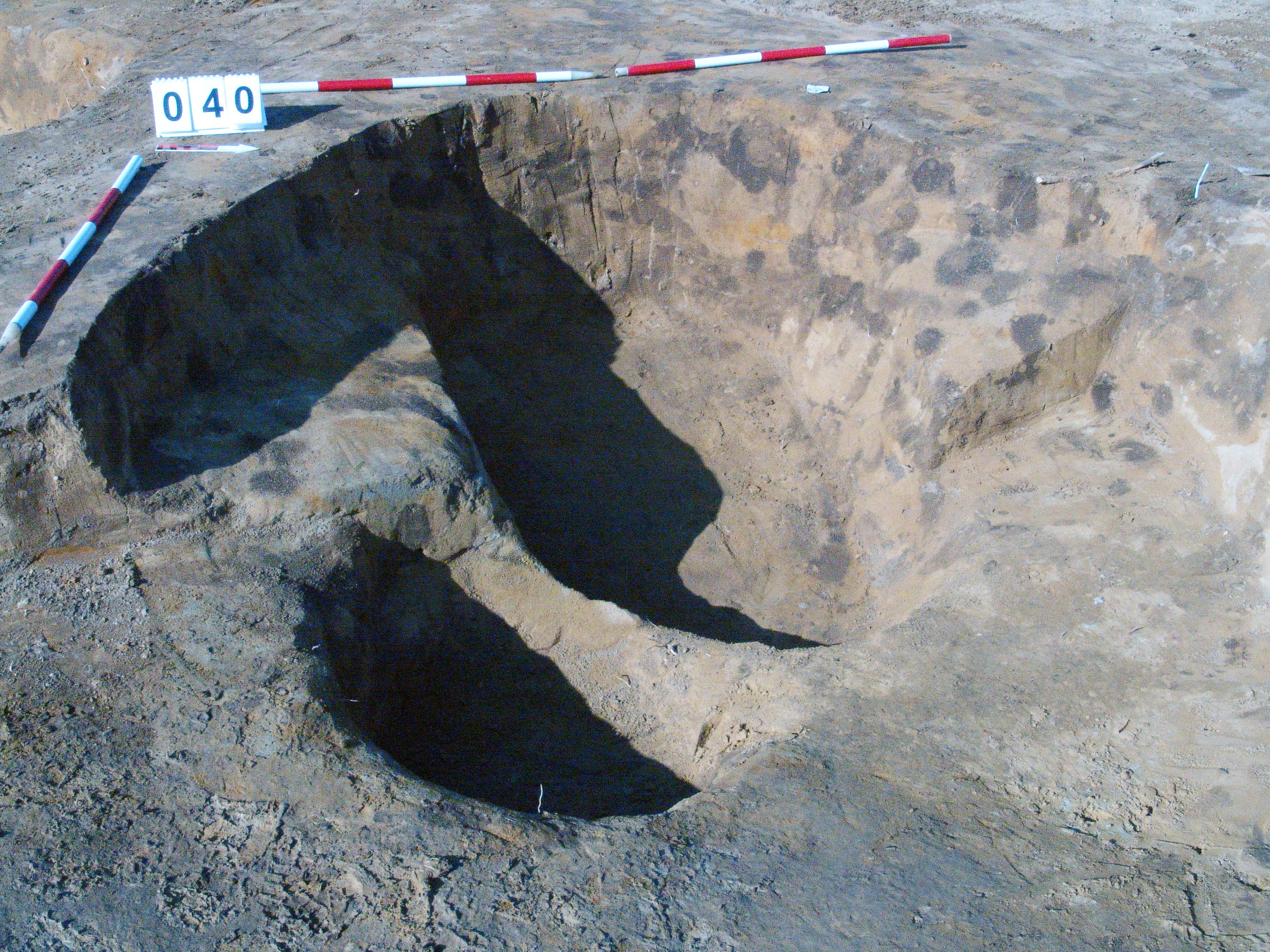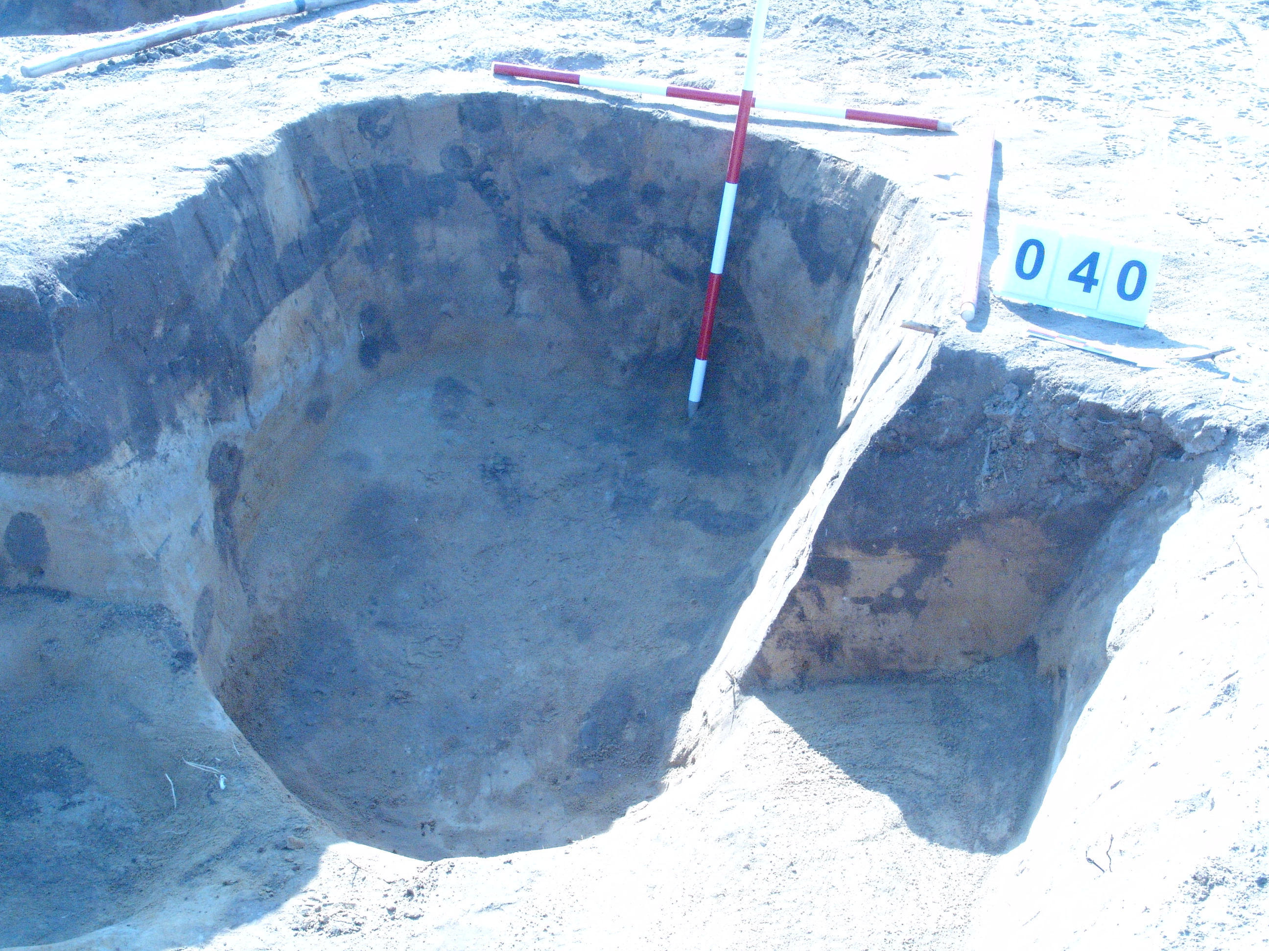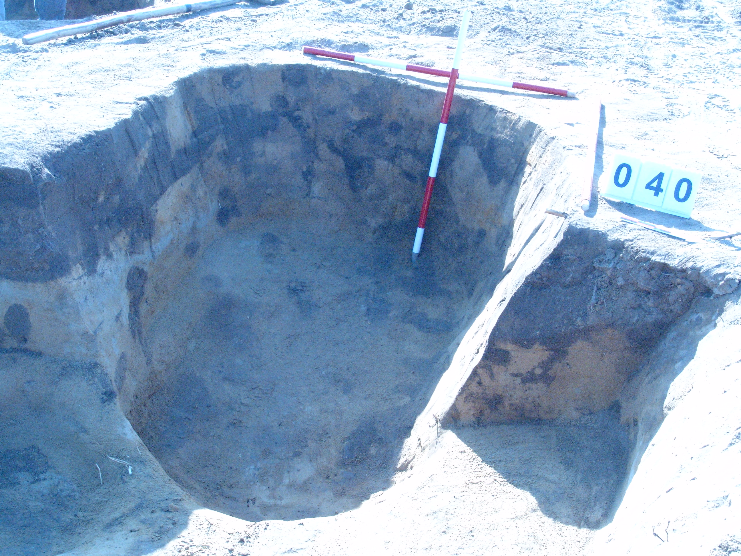 A 2 objektumba beásott gödör vagy cölöplyuk. A NÖK által metsztefalon nehezen kivehető foltja jelentkezett, amely alapján talán másodlagosan beásott. Betöltése apró fehér szemcsés sötétbarna. A bontás után meredek oldalú, egyenes aljú gödör lett belőle. Átmérője fent 175 X 135 centiméter, lent, 97 X 142 centiméter.