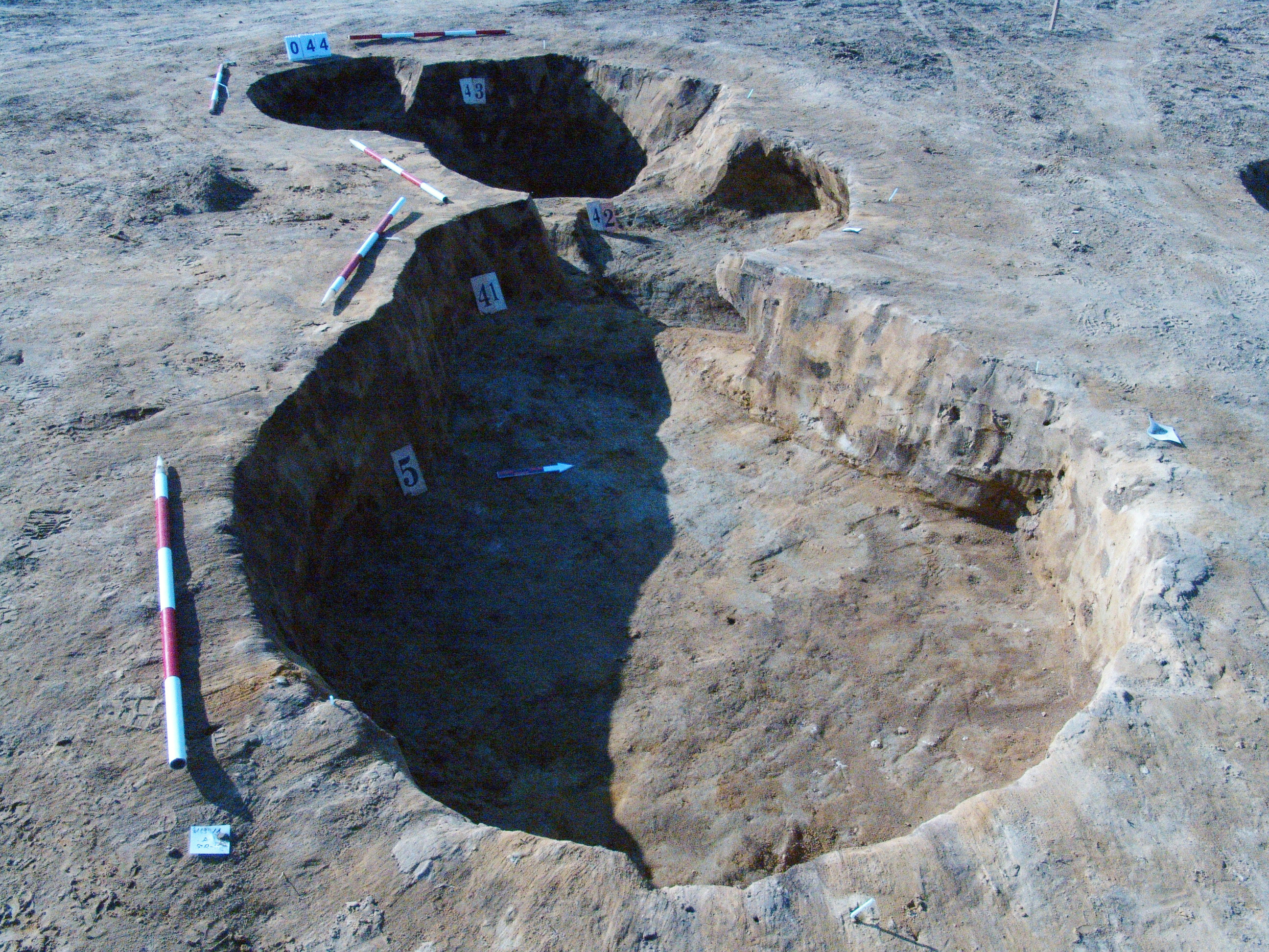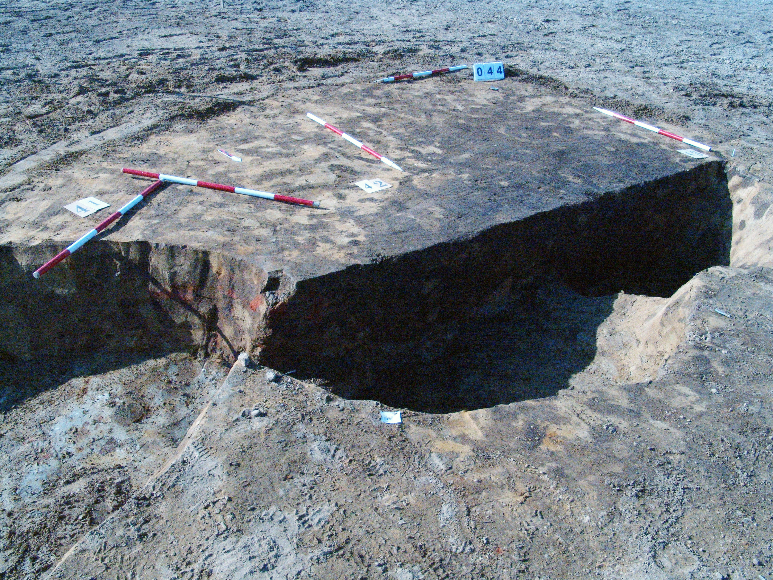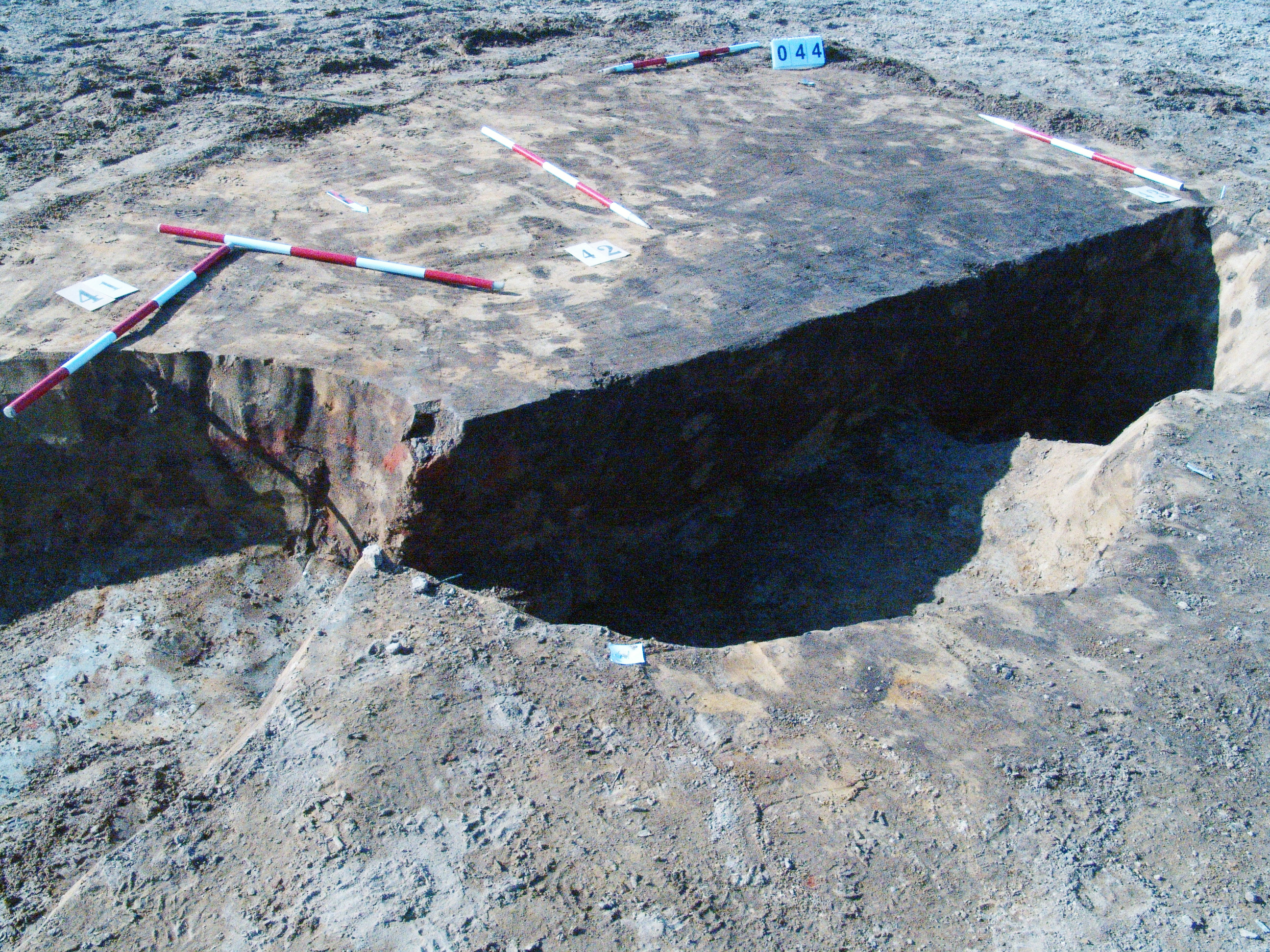 Az 5 számú objektumtól Ny-ra lévő 41 számú objektum Ny-i szélét vágó kerek folttal jelentkezett. Tőle Ny DNy-ra egy következő gödör (43 objektum), amelyet meg ráástak a 42-re. Méhkas alakú, kör alaprajzú objektum. Betöltése barnásszürke állatjáratos. Alja kissé íves volt. Átmérője fent 140, lent 150 centiméter. Mélysége 45 centiméter. Alja egyenetlen - valószínűleg túlbontás is.