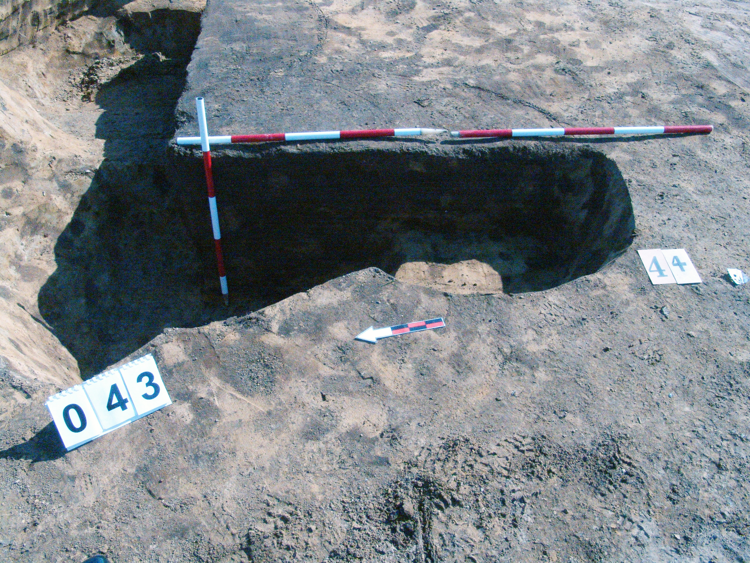 A 43 számú objektum alatt, attól DNy-ra jelentkező kerek folt. A 43 számú objektumot ráásták az É-i oldalára. Betöltése egynemű barnásszürke. Fala kissé meredek, alja egyenes. Átmérője fent 145, lent 115 centiméter. Mélysége 43 centiméter.