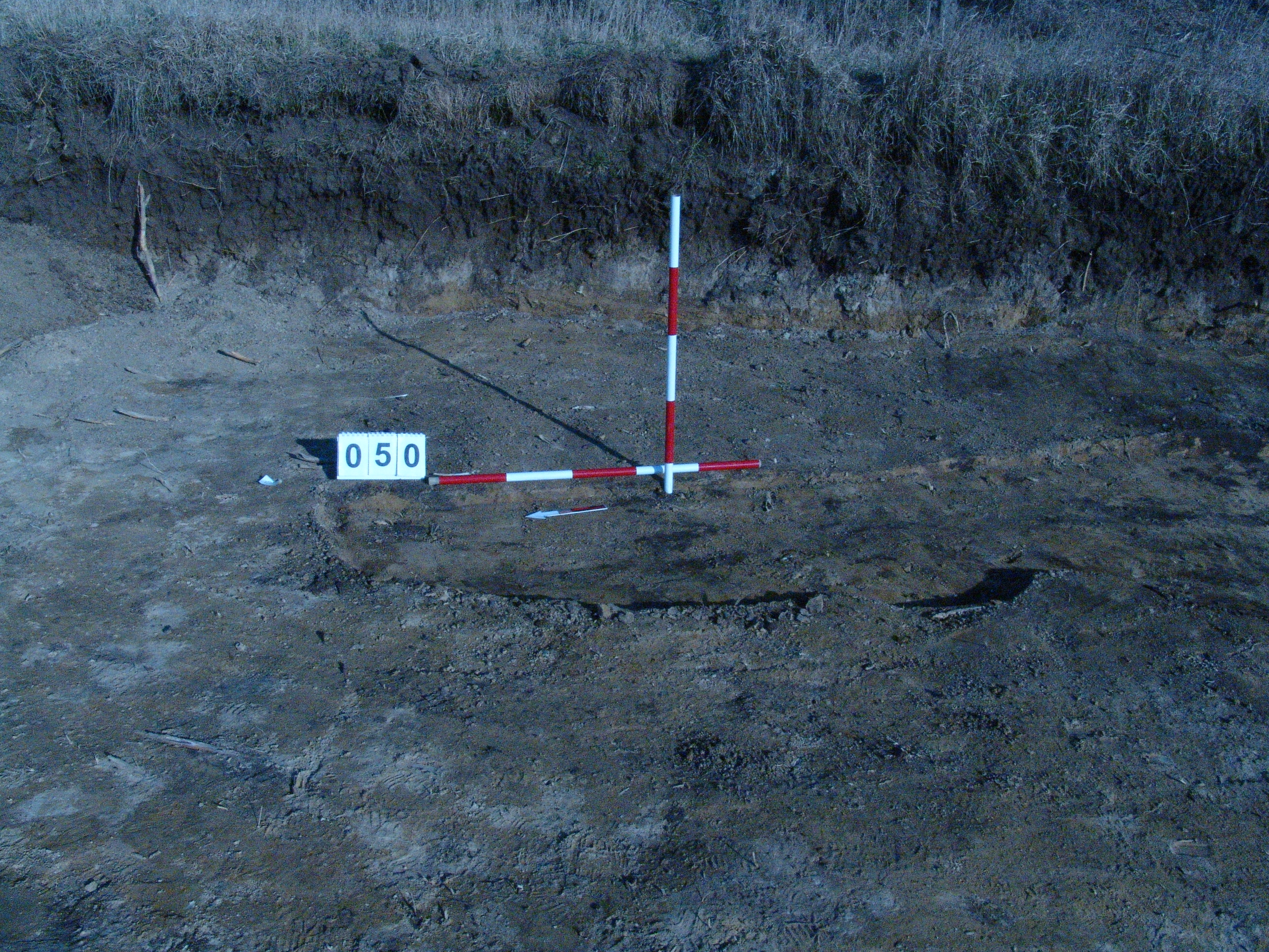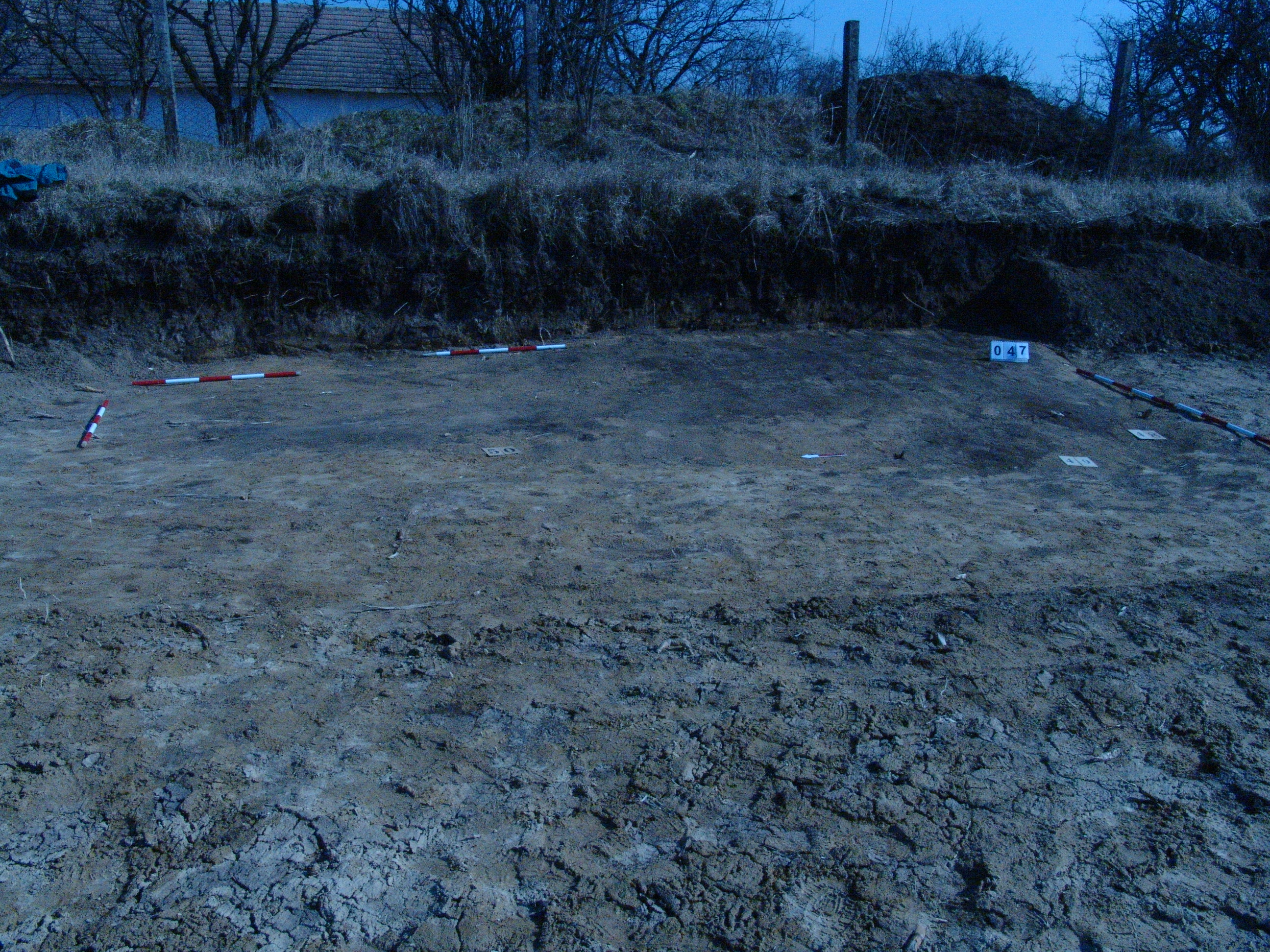A 47 számú objektum É-i végén jelentkező kerek folt. Bontáskor kiderült, hogy ugyan enyhén ívesen mélyül, mint egy gödör, de betöltése (fekete) és jellege alapján nem régészeti jelenség.