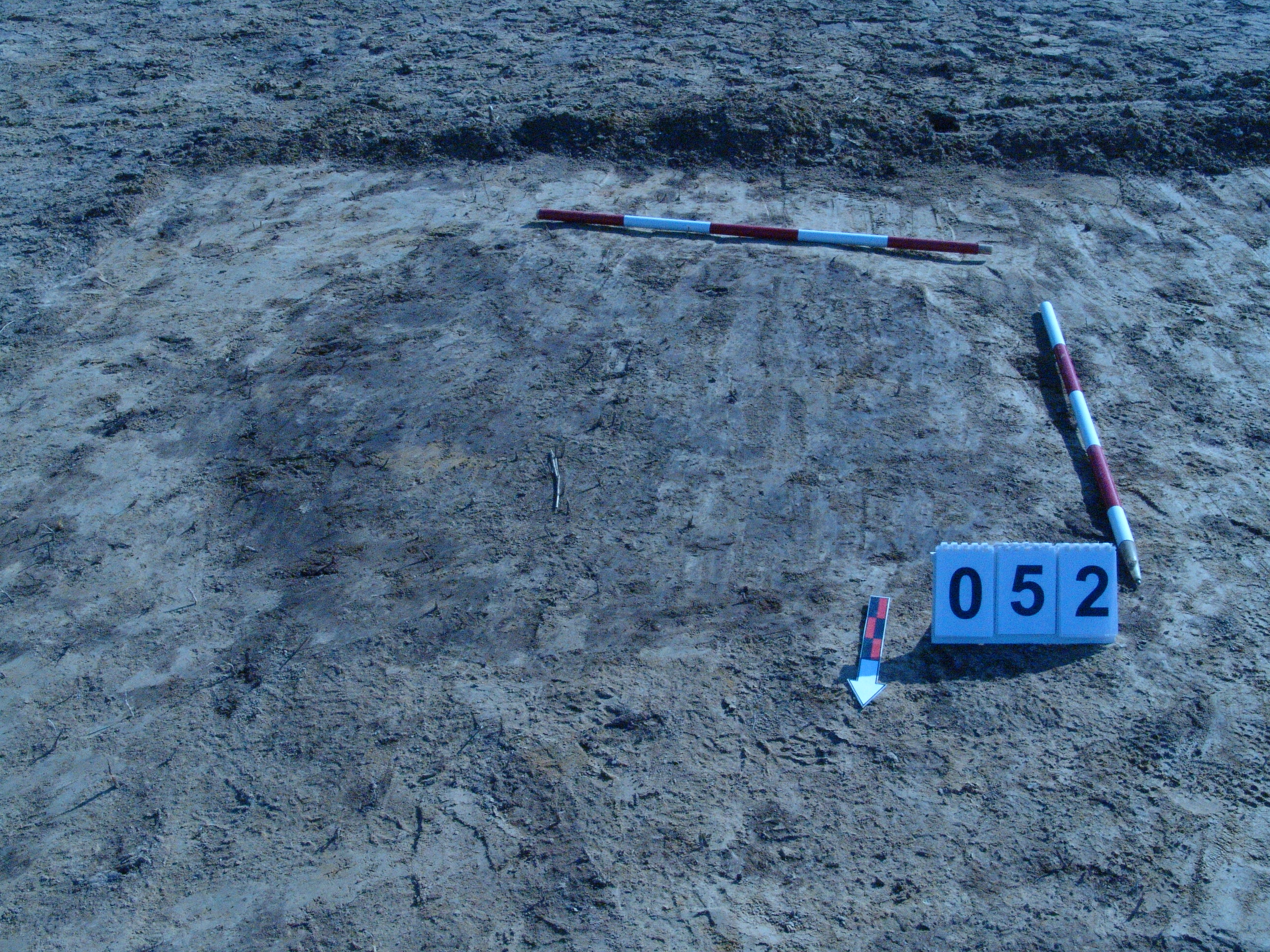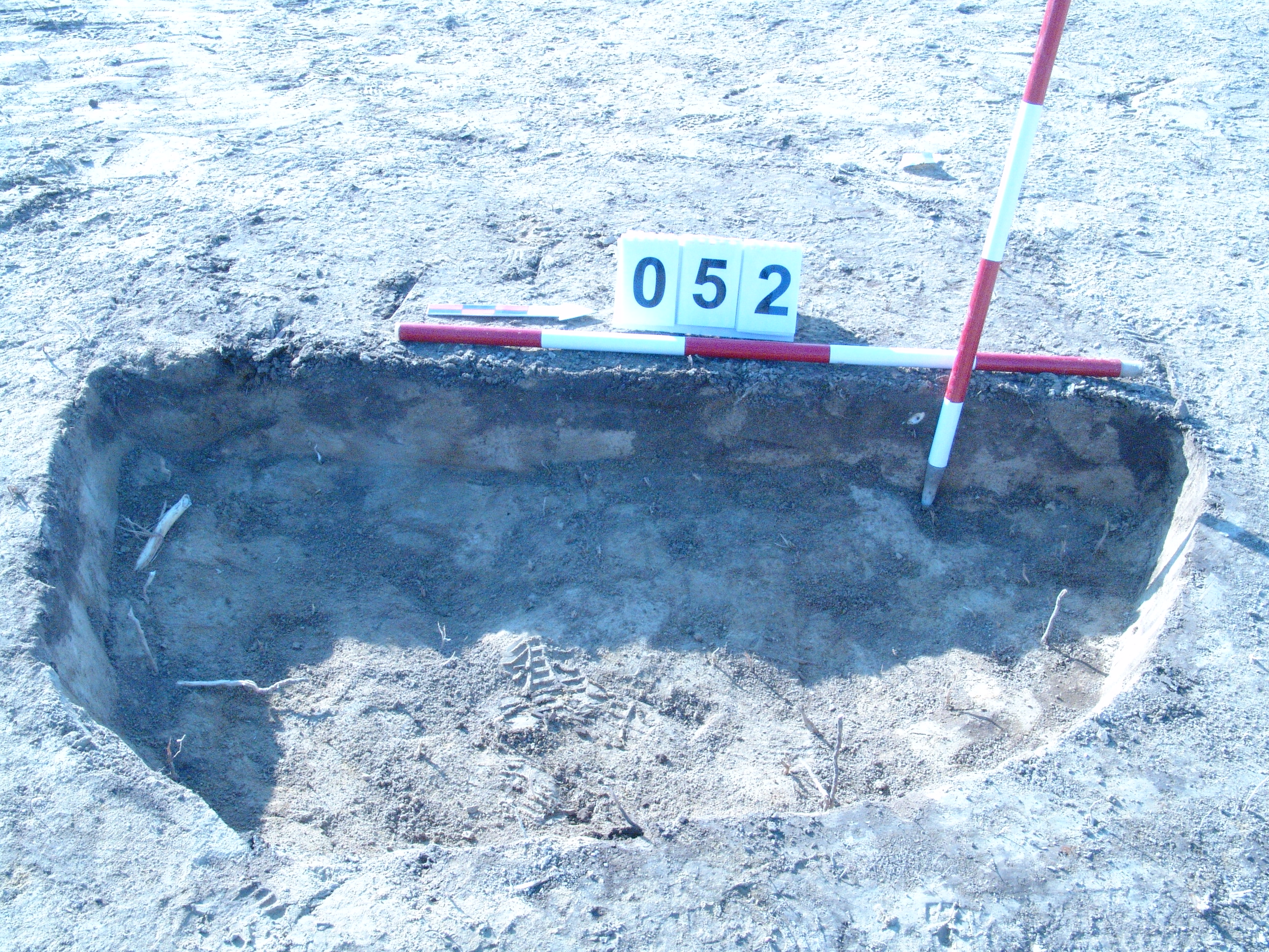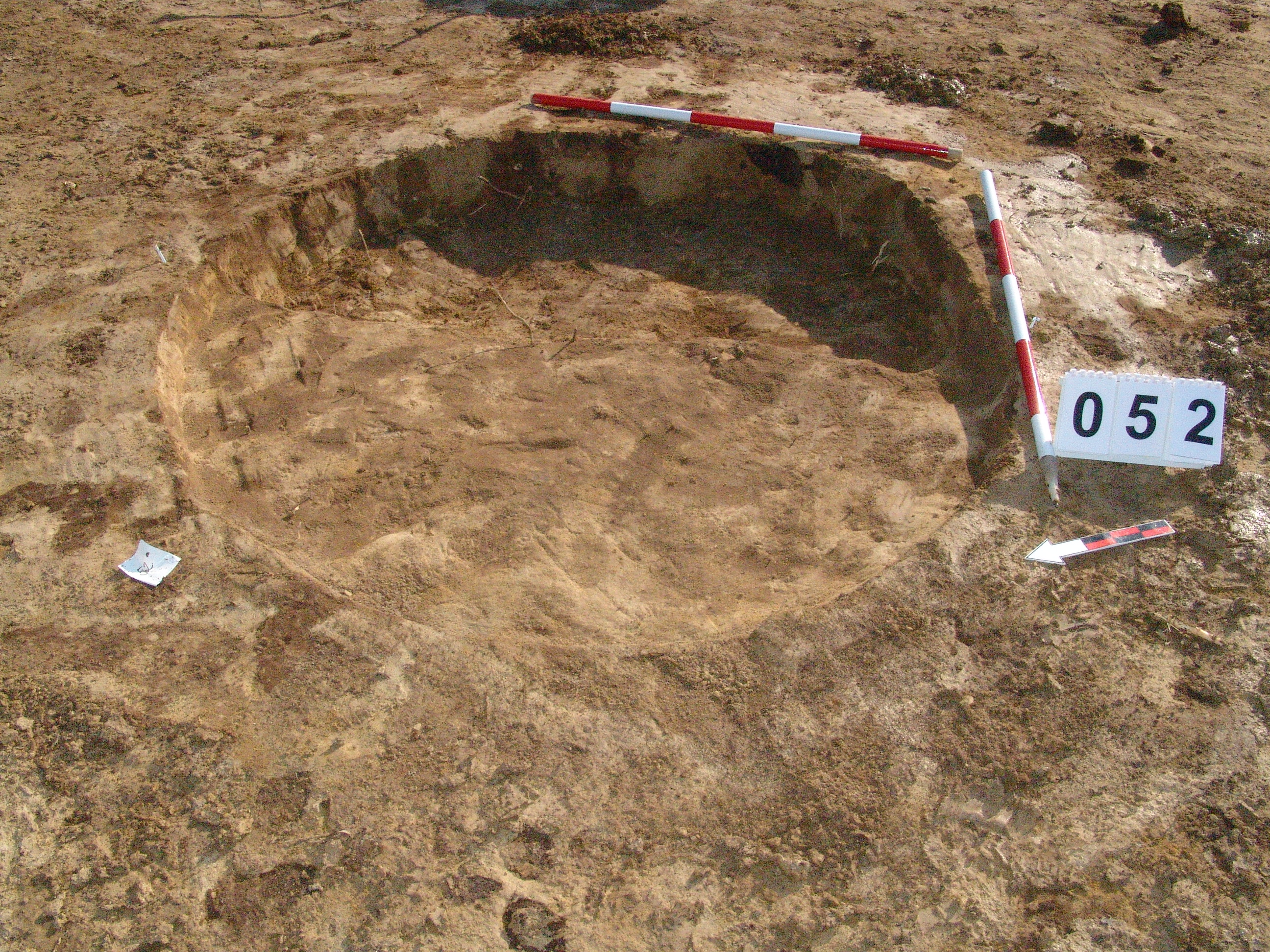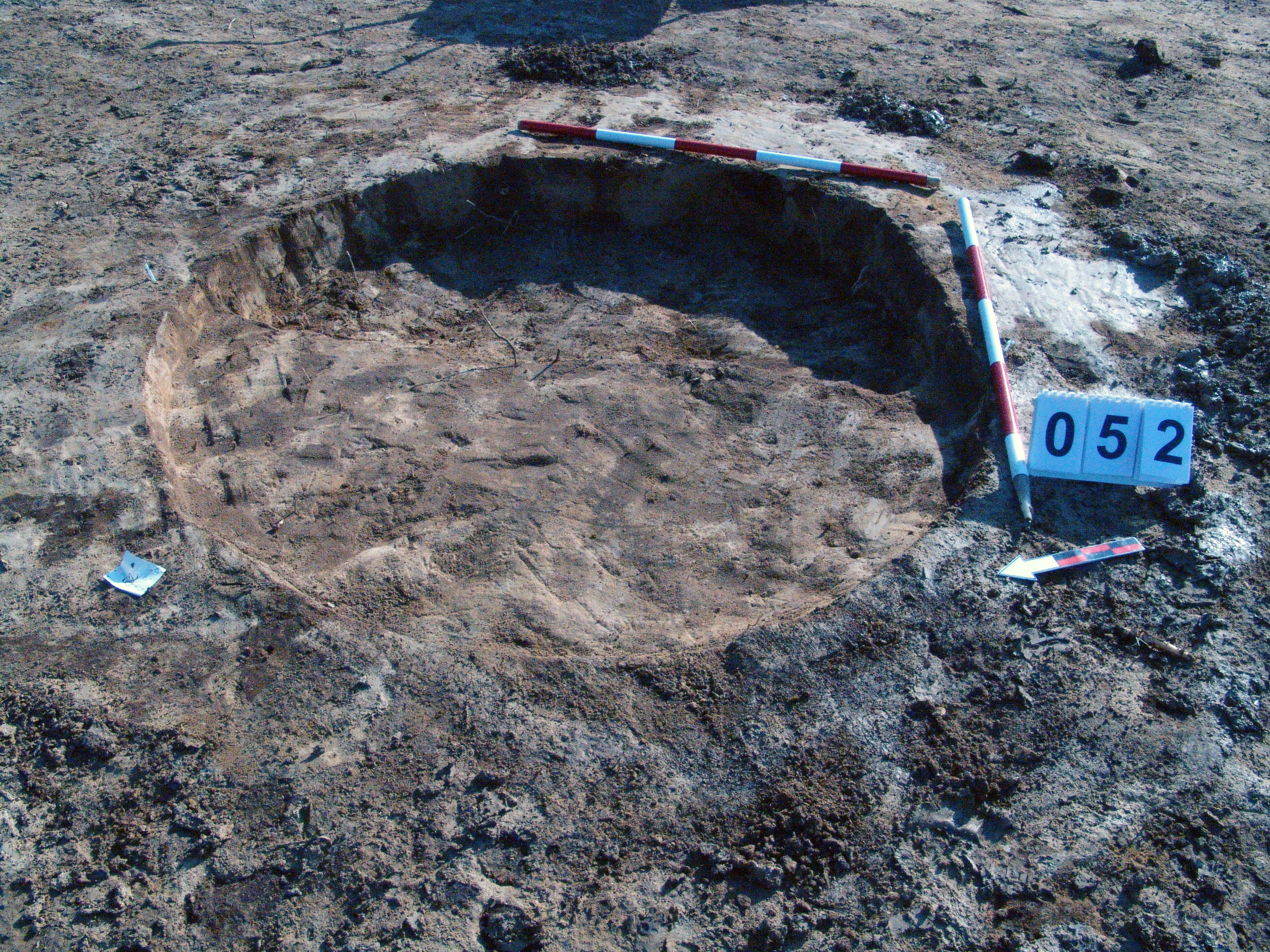Jól látszó, kerek folttal jelentkező gödör. Alját túlbontottuk a K-i felében. Igen sekélyen maradt meg. Betöltése barnásszürke. Függőleges falú, egyenes aljú gödör. Átmérője 150 centiméter. Mélysége 5 - 10 centiméter.