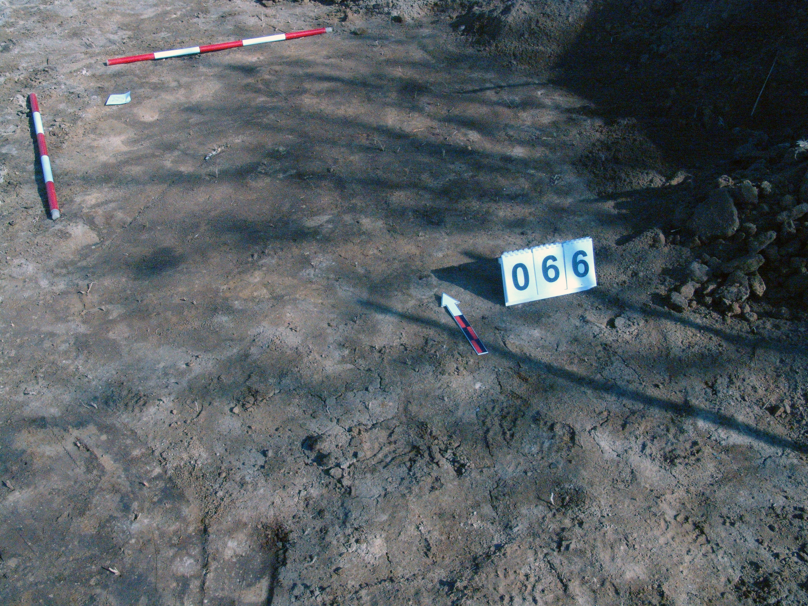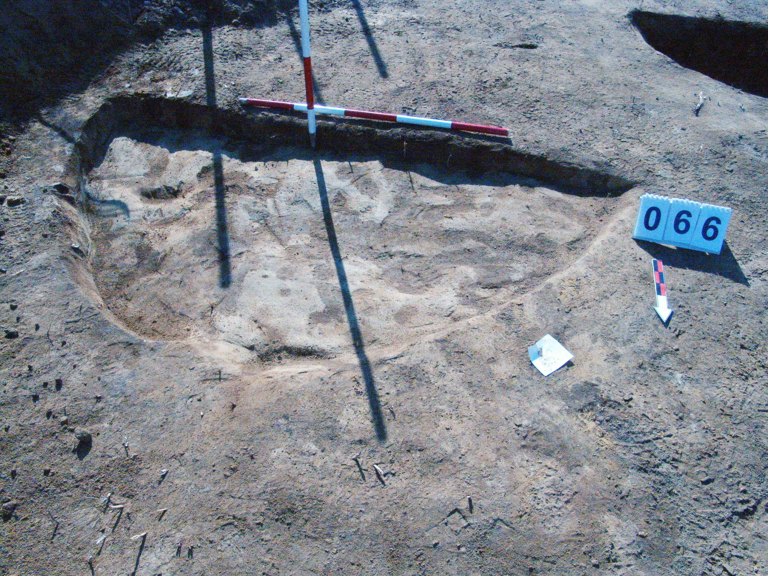 Elúszó kerek, rosszul rajzolódó folttal jelentkező gödör a feltárás K-i széle mellett. A bontás során tisztáztuk, hogy nem régészeti jelenség.