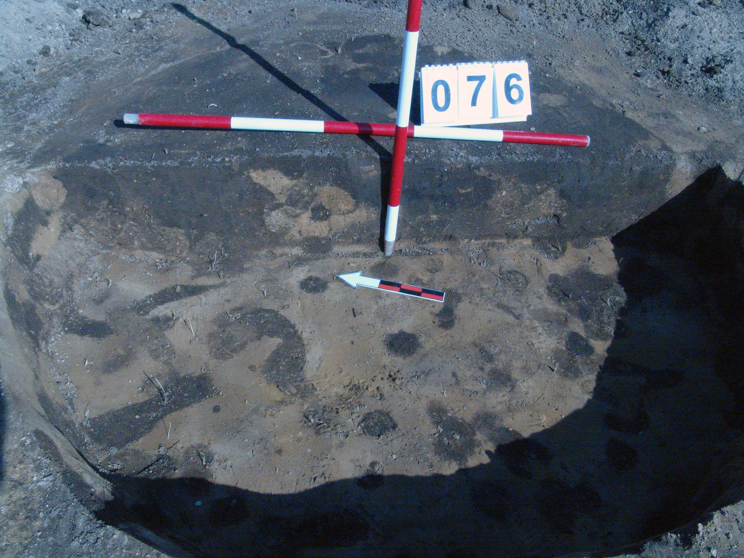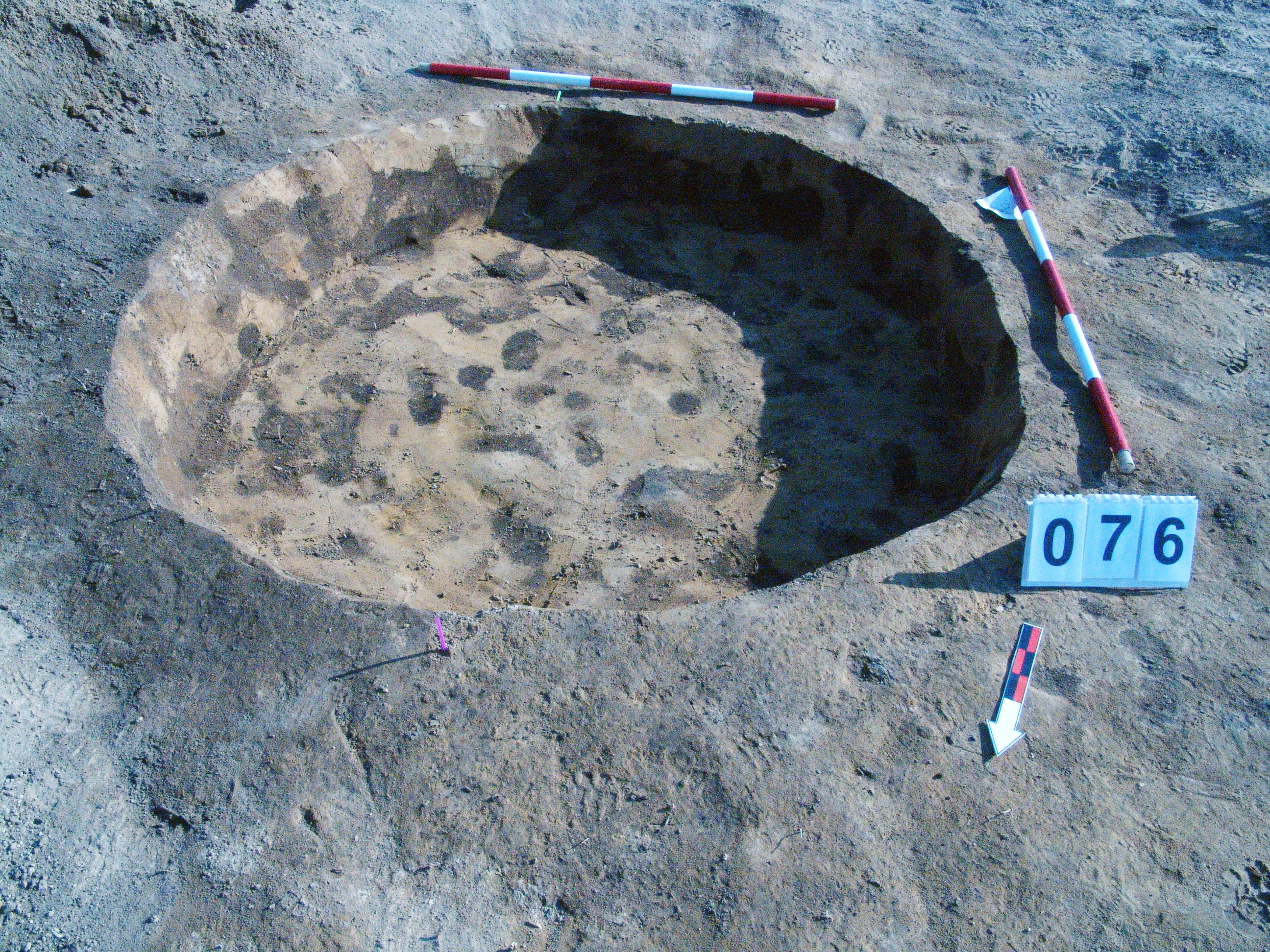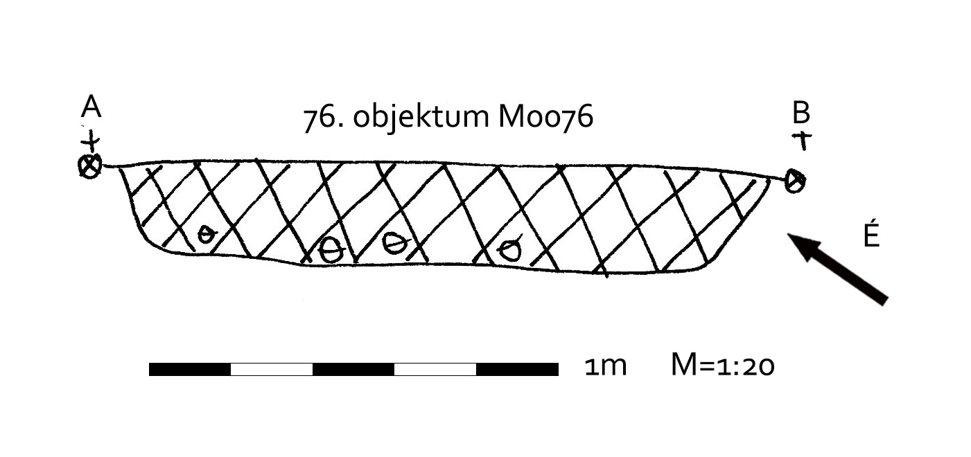 A NÖK által megkutatott 13 objektumtól K-re jól látszó kerek sötét folttal jelentkező gödör. Fala függőleges, alja egyenes. Betöltése barnásszürke egynemű. Átmérője 155 centiméter. Mélysége: 22 - 28 centiméter.