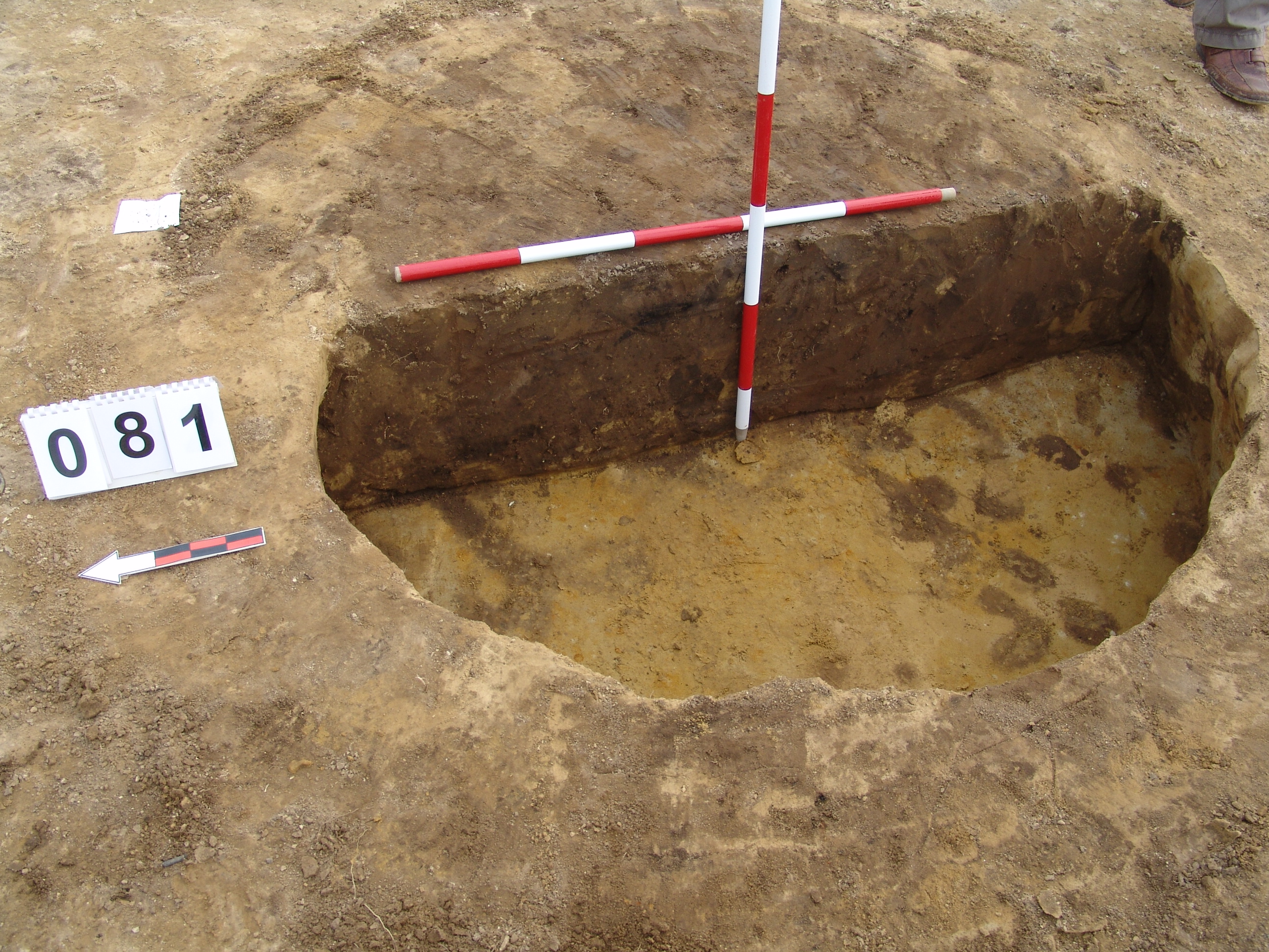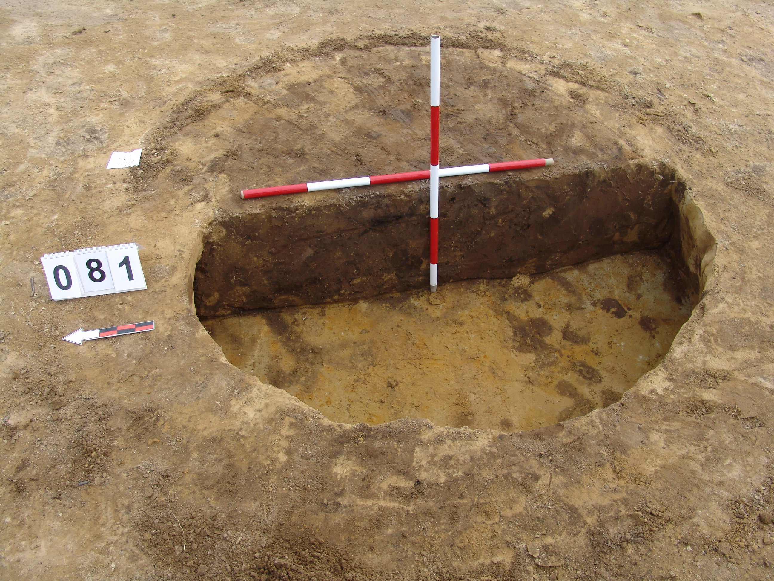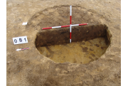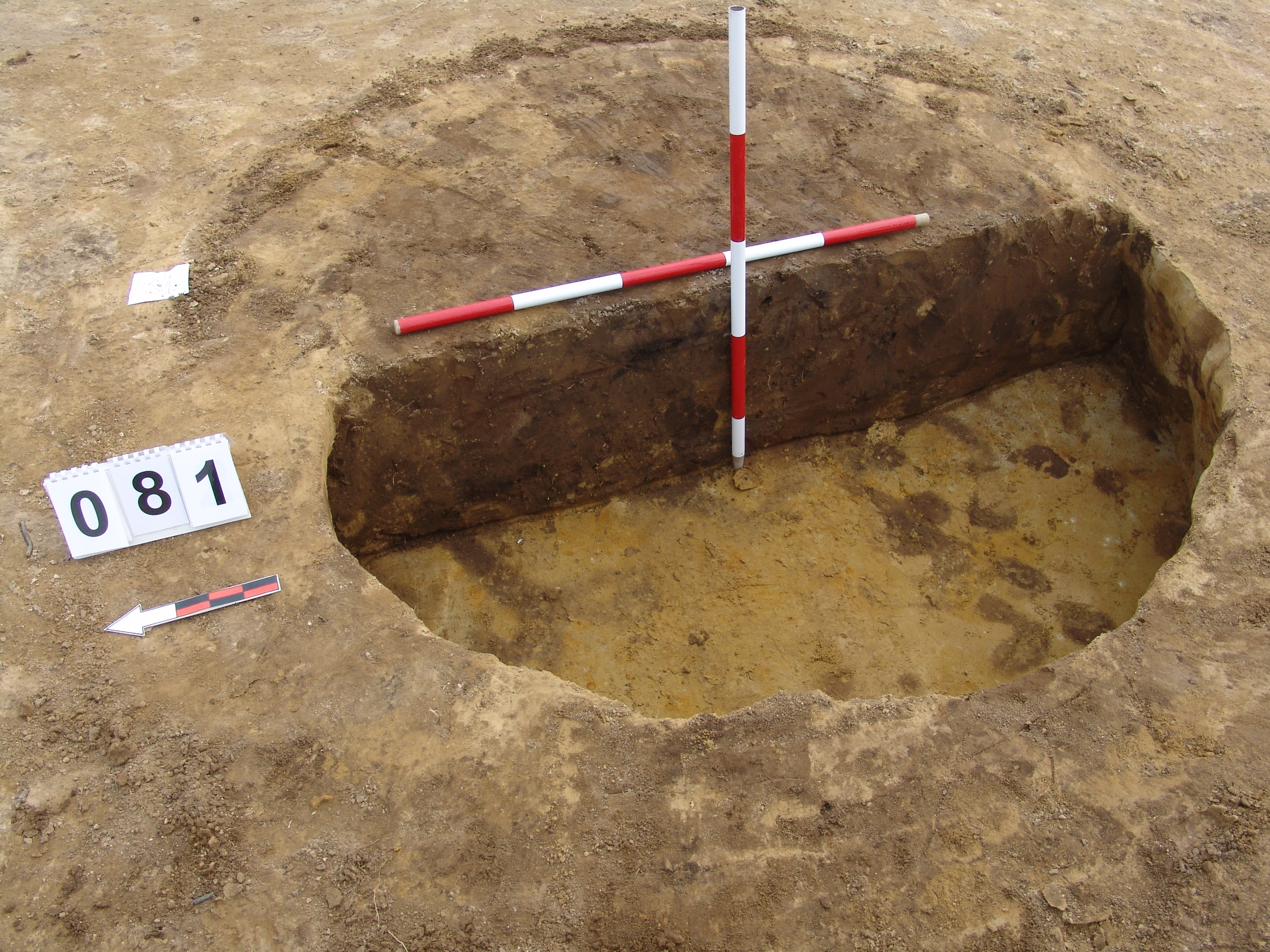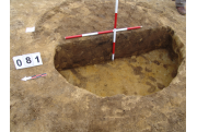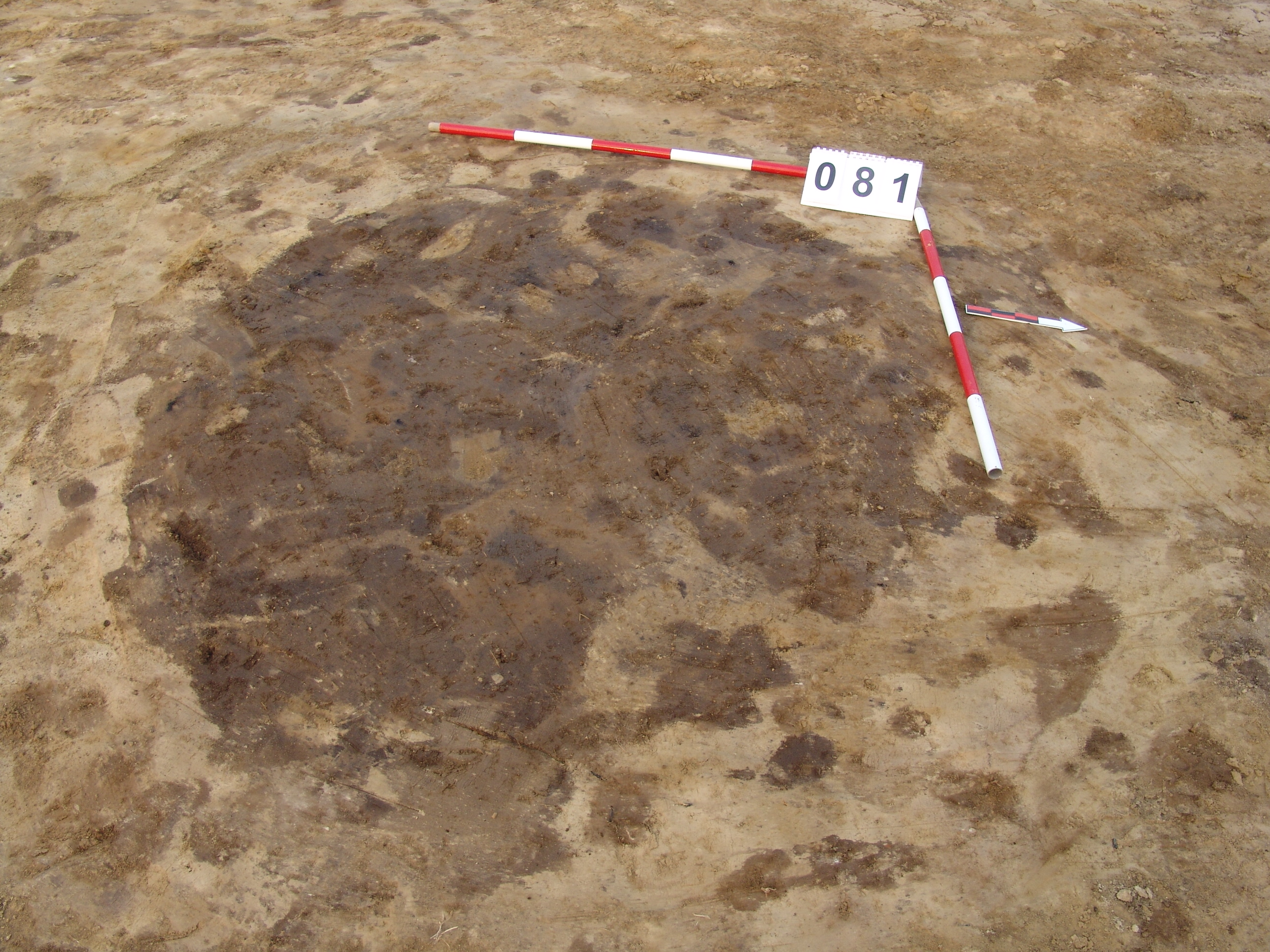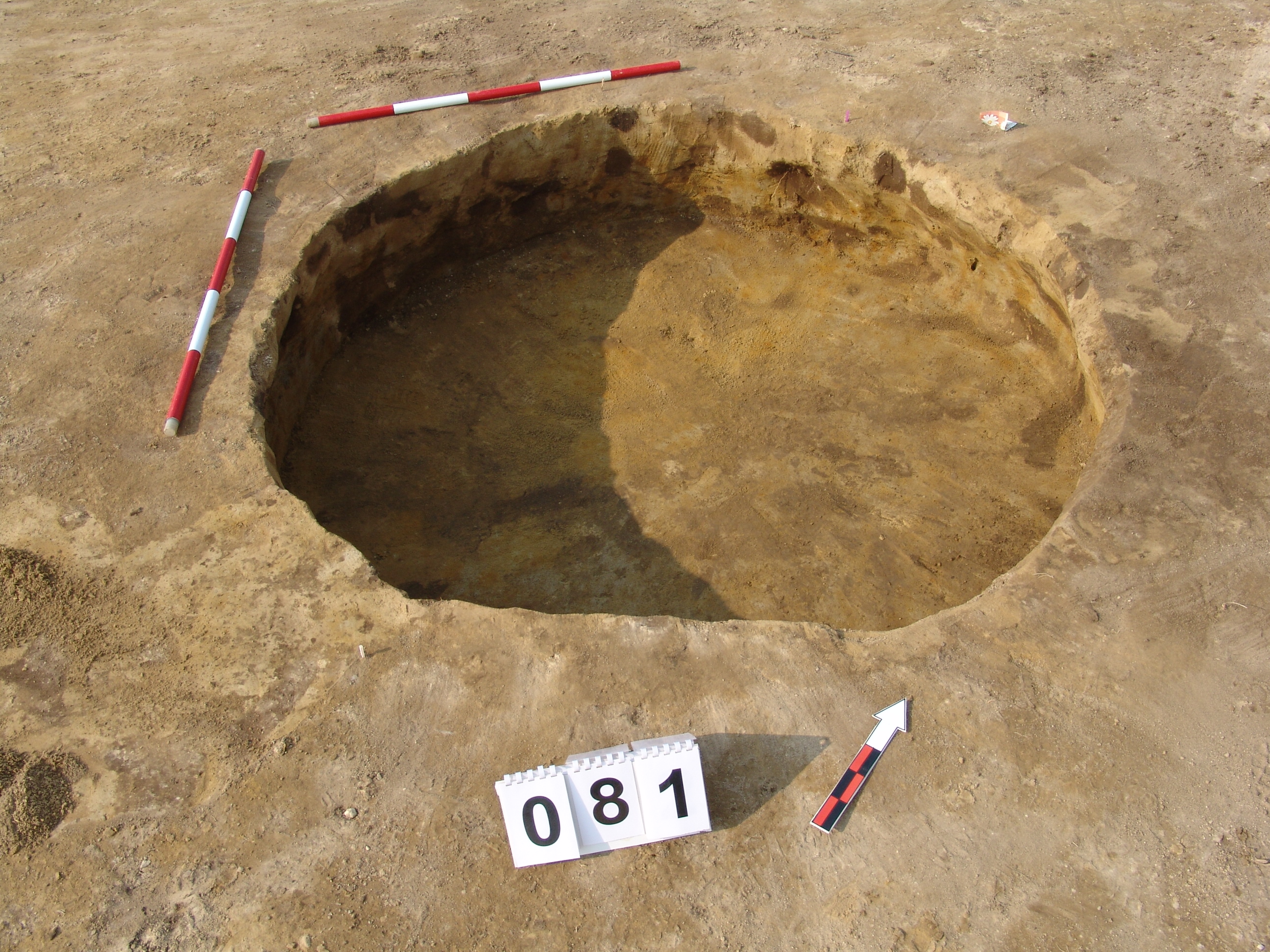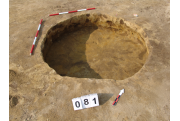 A 71 számú objektumtól DNy-ra, a 82 számú objektum mellett, jól látszó kerek sötét folttal jelentkezett. Betöltése: viszonylag homogén, szélein sárgával kevert szürkésbarna. Metszet: az alja felé teknőszerűen elszélesedő, egyenes alj. Az alján pár mm-es kormos fekete réteg húzódik- valószínűleg kiégették a gödröt.