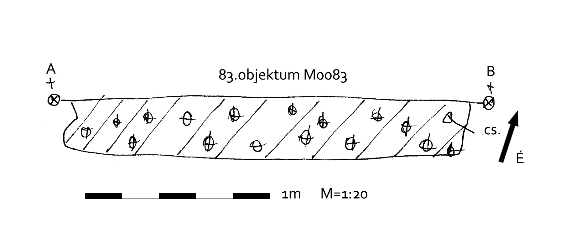 A 82 számú objektumtól K-DK-re nagy jól látszó kerek folttal jelentkező gödör. Sárga és fekete szemcsés sötétbarna betöltésű gödör. Kör alaprajzú. A Ny-i oldalán méhkasos, a Keletin inkább függőleges. Átmérője fent Ny-K 220, D-É 220 centiméter. Mélysége 30 centiméter.