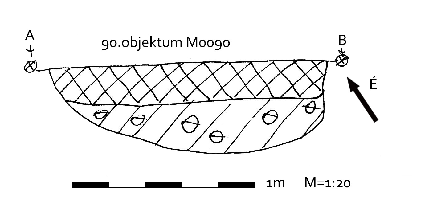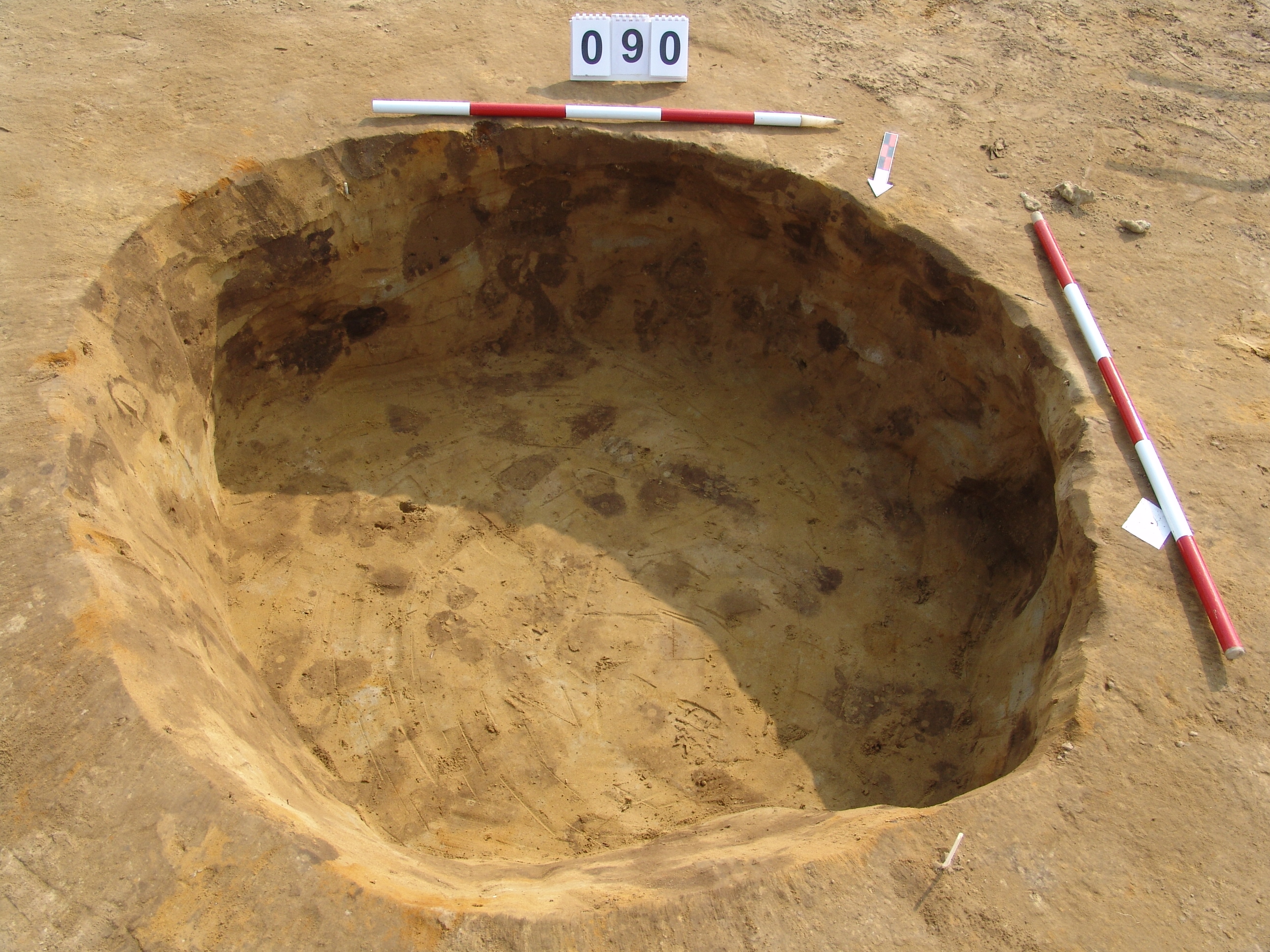 A 8 számú és a 74 számú objektum közt jelentkező kissé elúszó sötét kerek folt. Betöltése: sárga szemcsés szürkésbarna humusz. Metszet: íves oldalfalak, hordószerűen kapaszkodik déli falában, északi része túlbontott, alja egyenes.