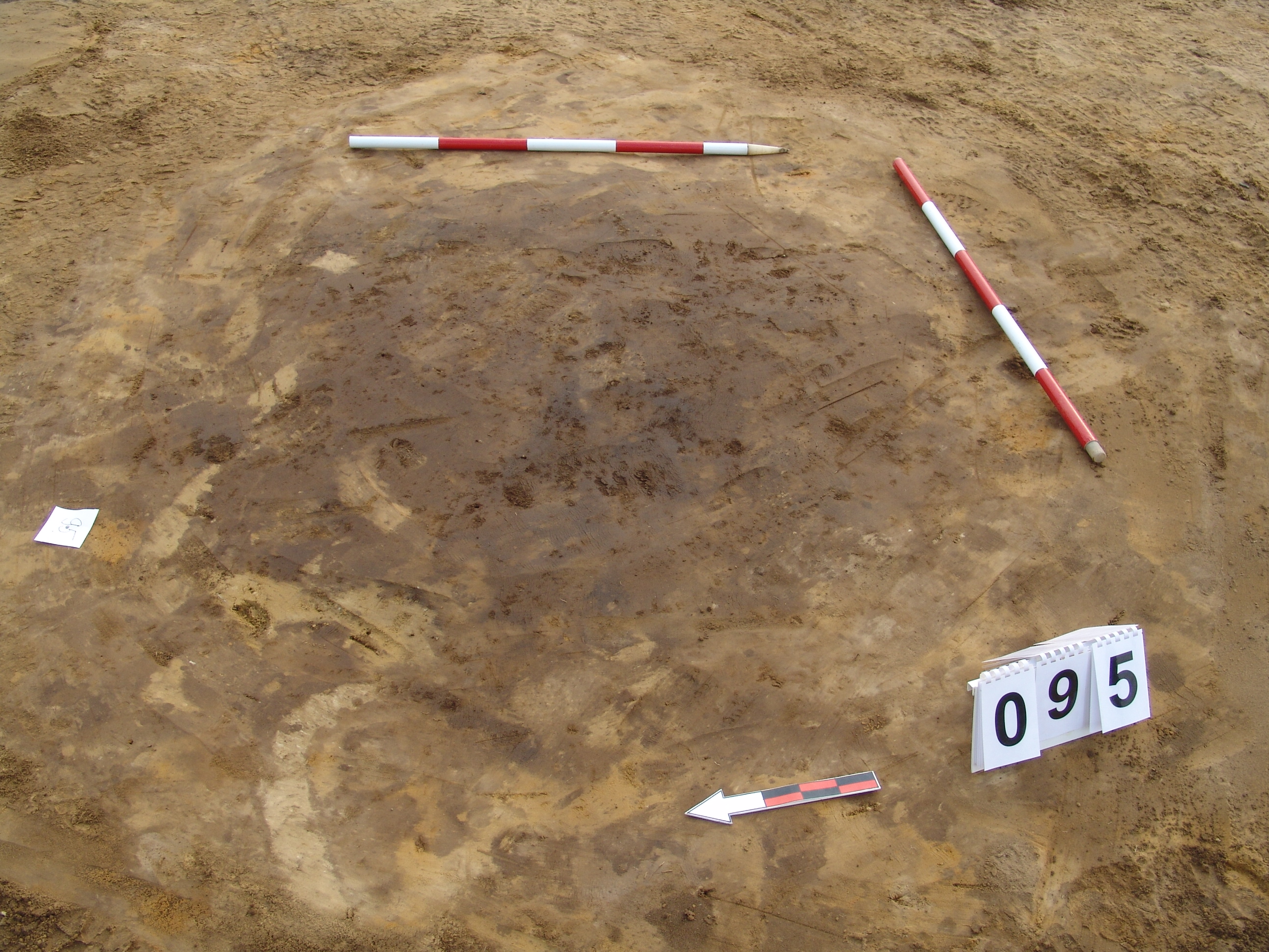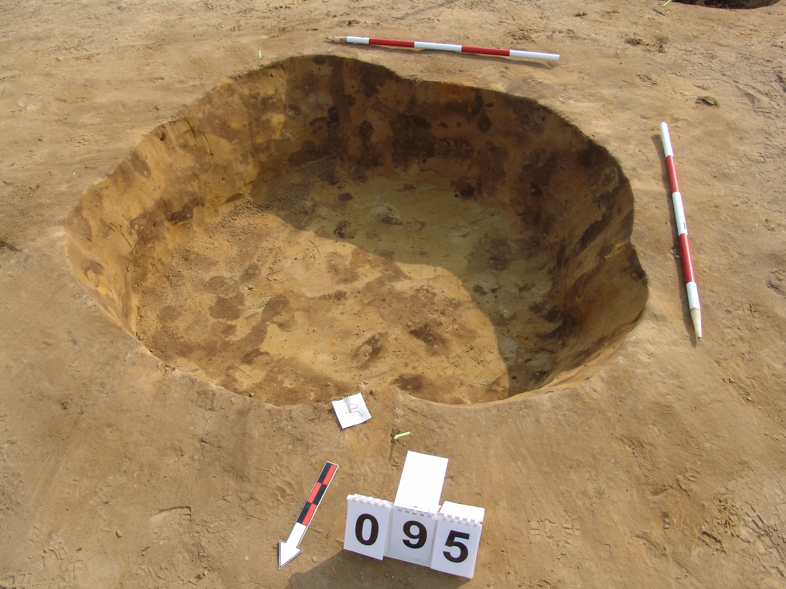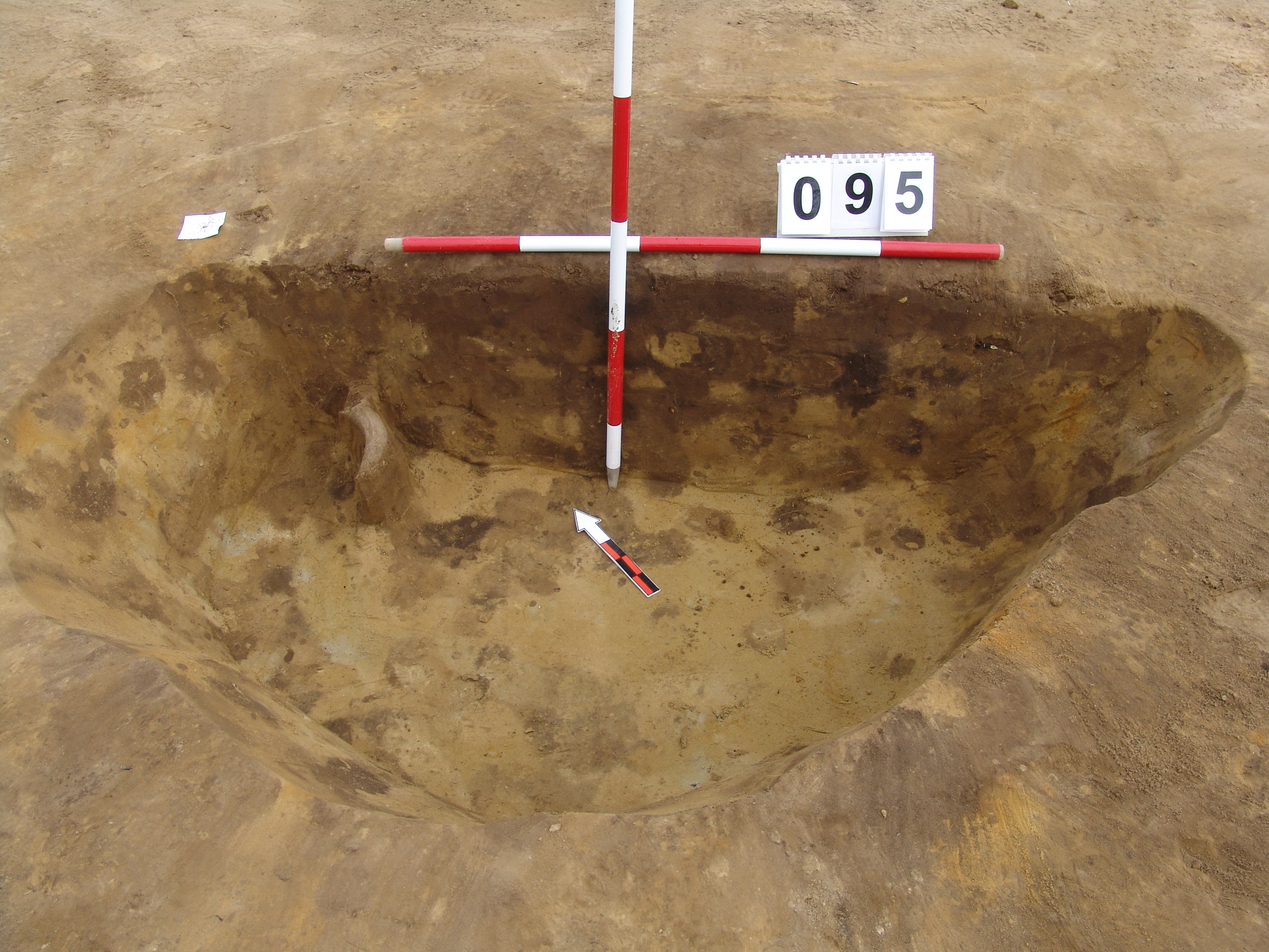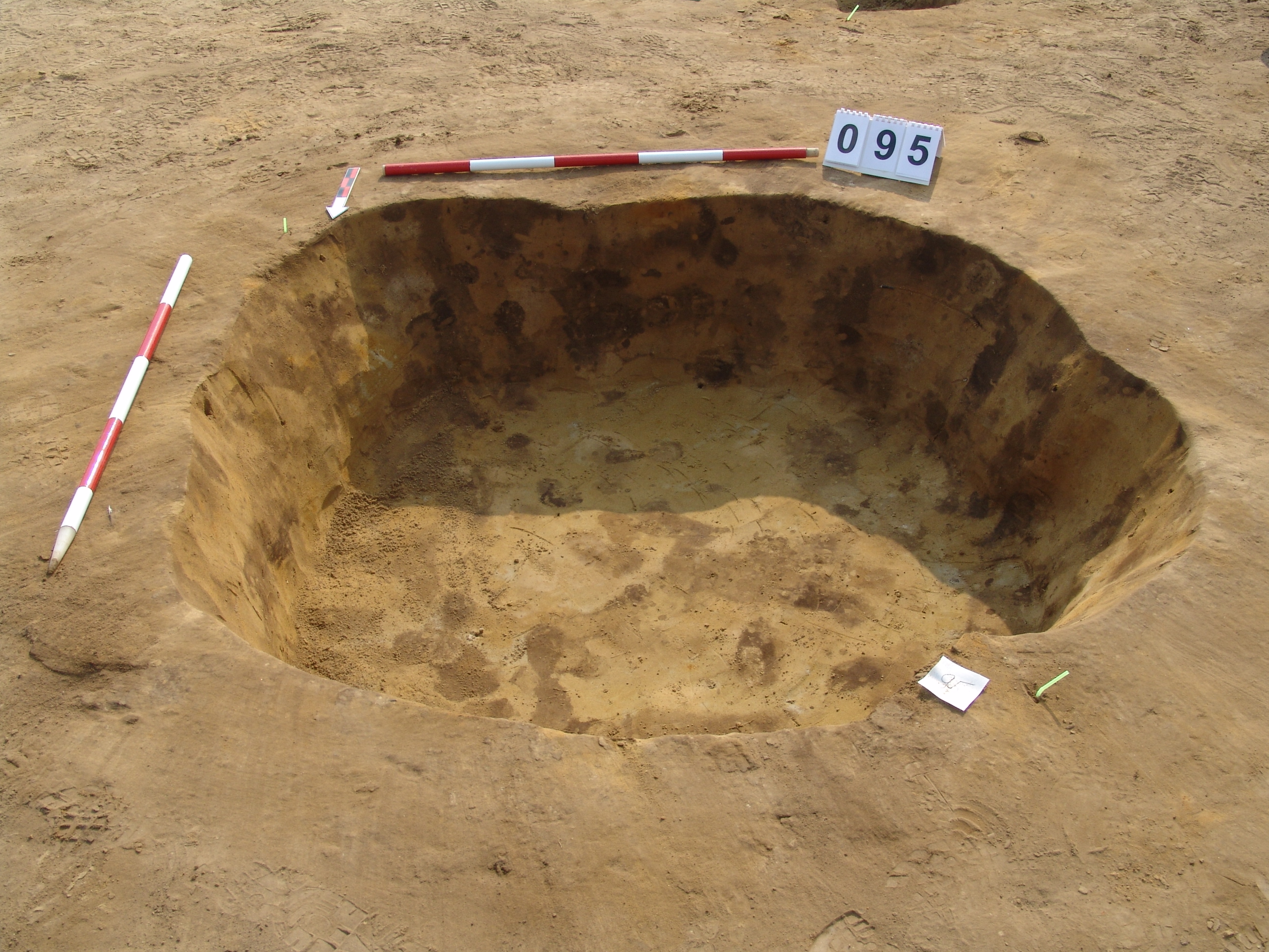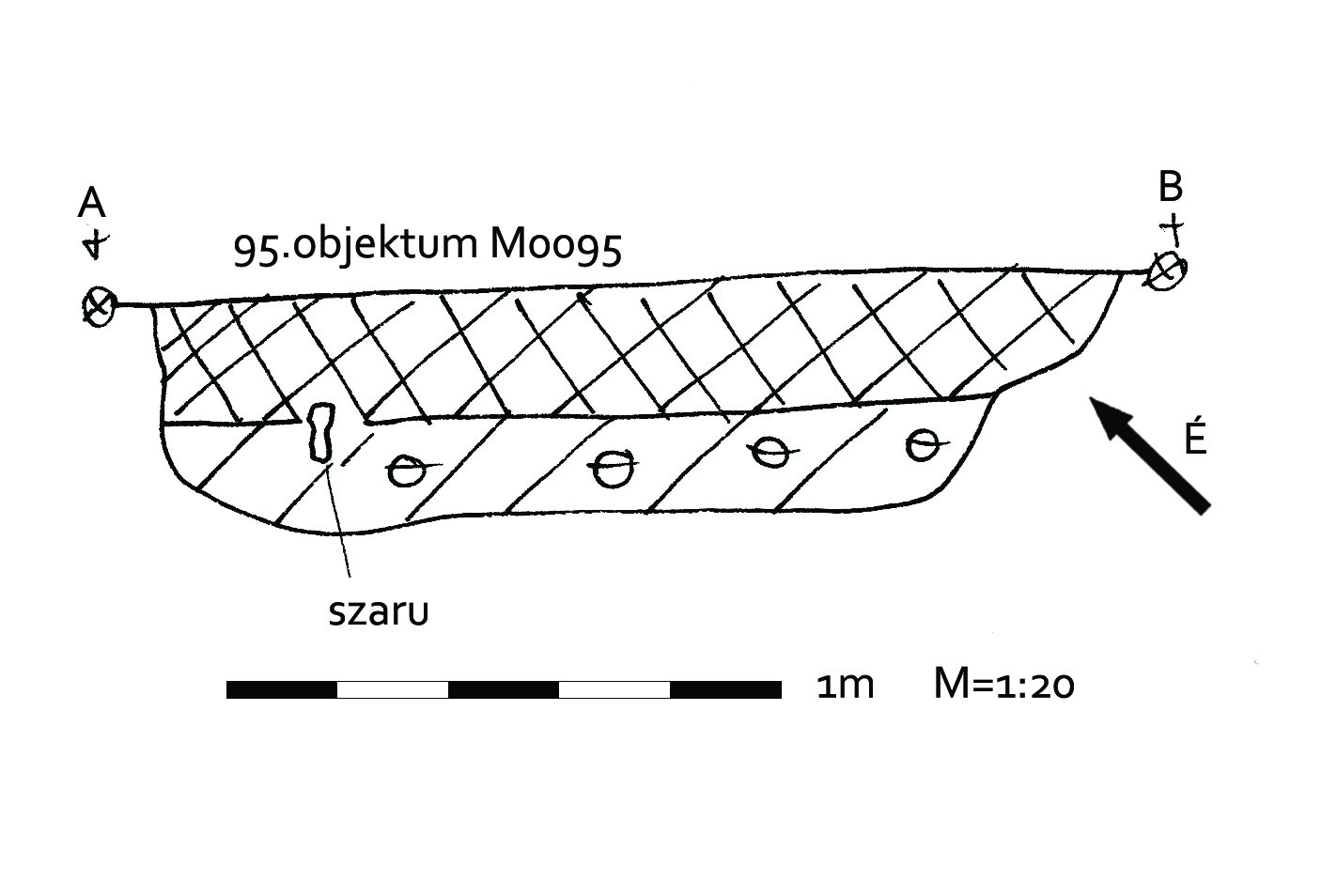 A 94 számú objektumtól ÉK-re jól rajzolódó kerek folttal jelentkezett. Betöltése: sárga szemcsével kevert szürkésbarna humusz. Metszet: íves oldalfalak, egyenes alj. Északi falába a betöltésben egyenes. Fotózva. Átmérője felül 180, alul 140 centiméter.