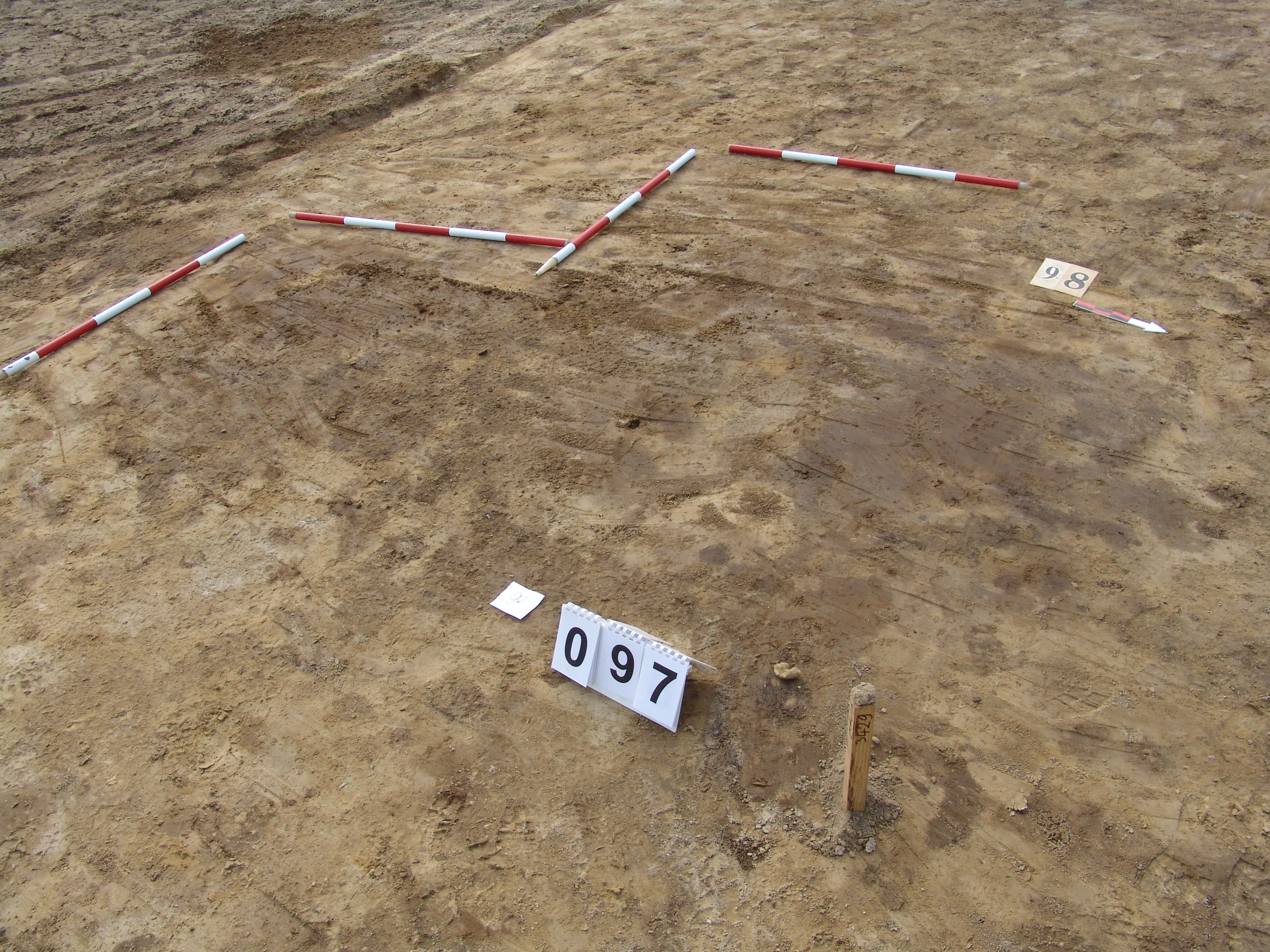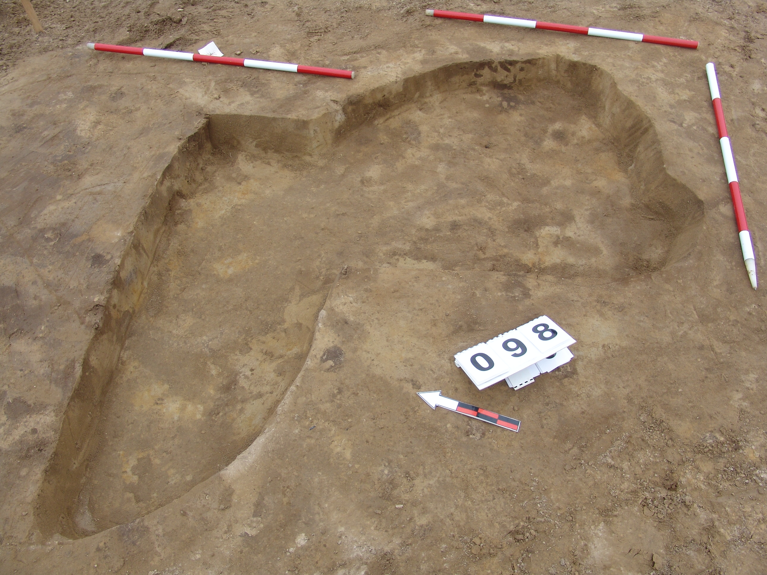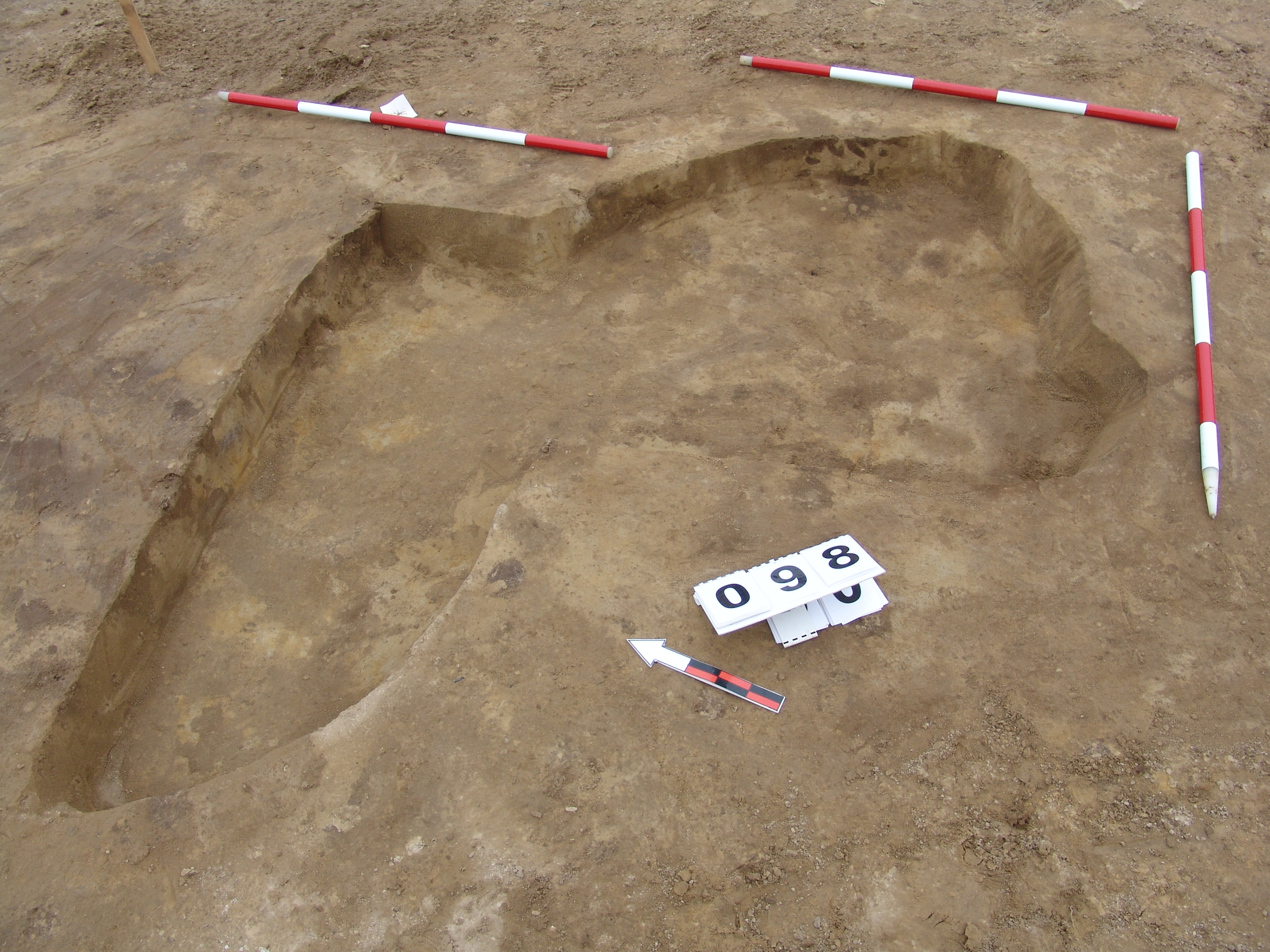A 85 számú objektum vágja. Metszete alapján kérdéses, hogy régészeti jelenség -e. Ha igen, akkor függőleges falú, vízszintes aljú, világos kevert betöltésű.