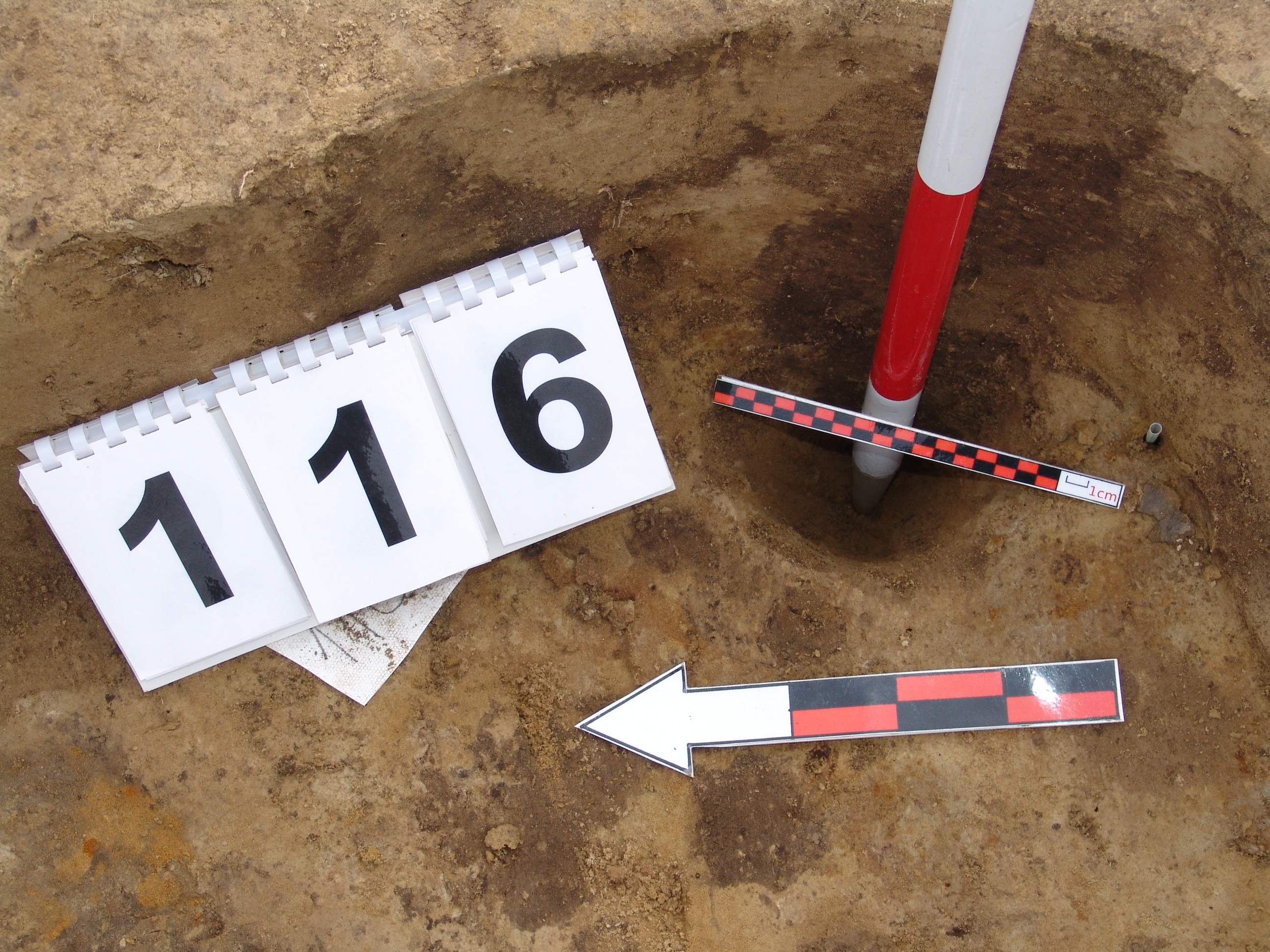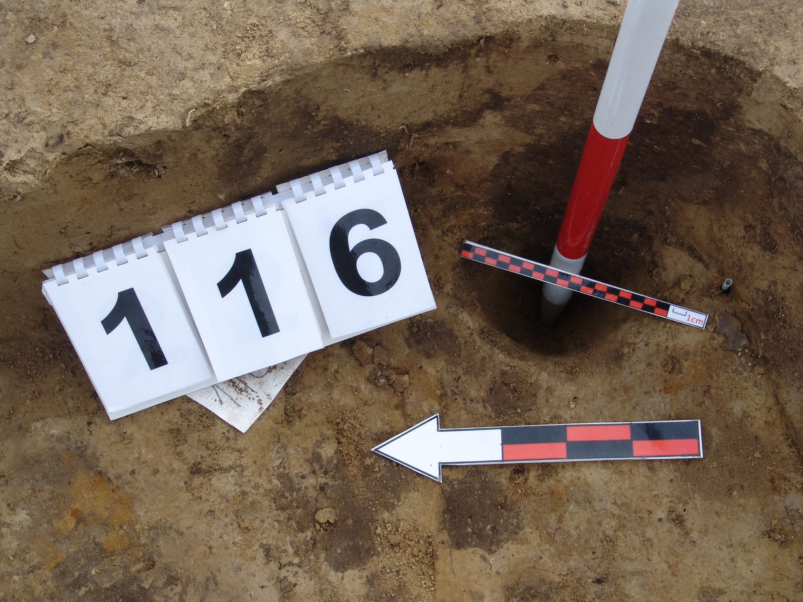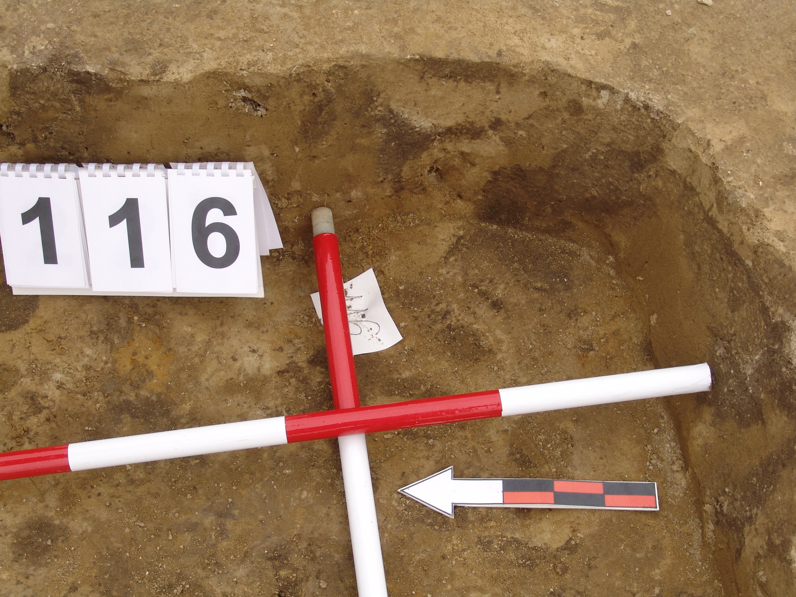 A 100 objektum DK-i sarkában jelentkező kissé elúszó folttal jelentkező "kiugrik" a ház falánál DK-re. A ház jelentkezési szintjén átmérője 15 X 26 cm. Betöltése: egynemű, sárga-szürke szemcsés szürkés. Átmérője a padlószinten 15 X 17 cm, alján 12 cm. Mélysége a ház jelentkezési szintjétől 36, a padlótól 22 centiméter.