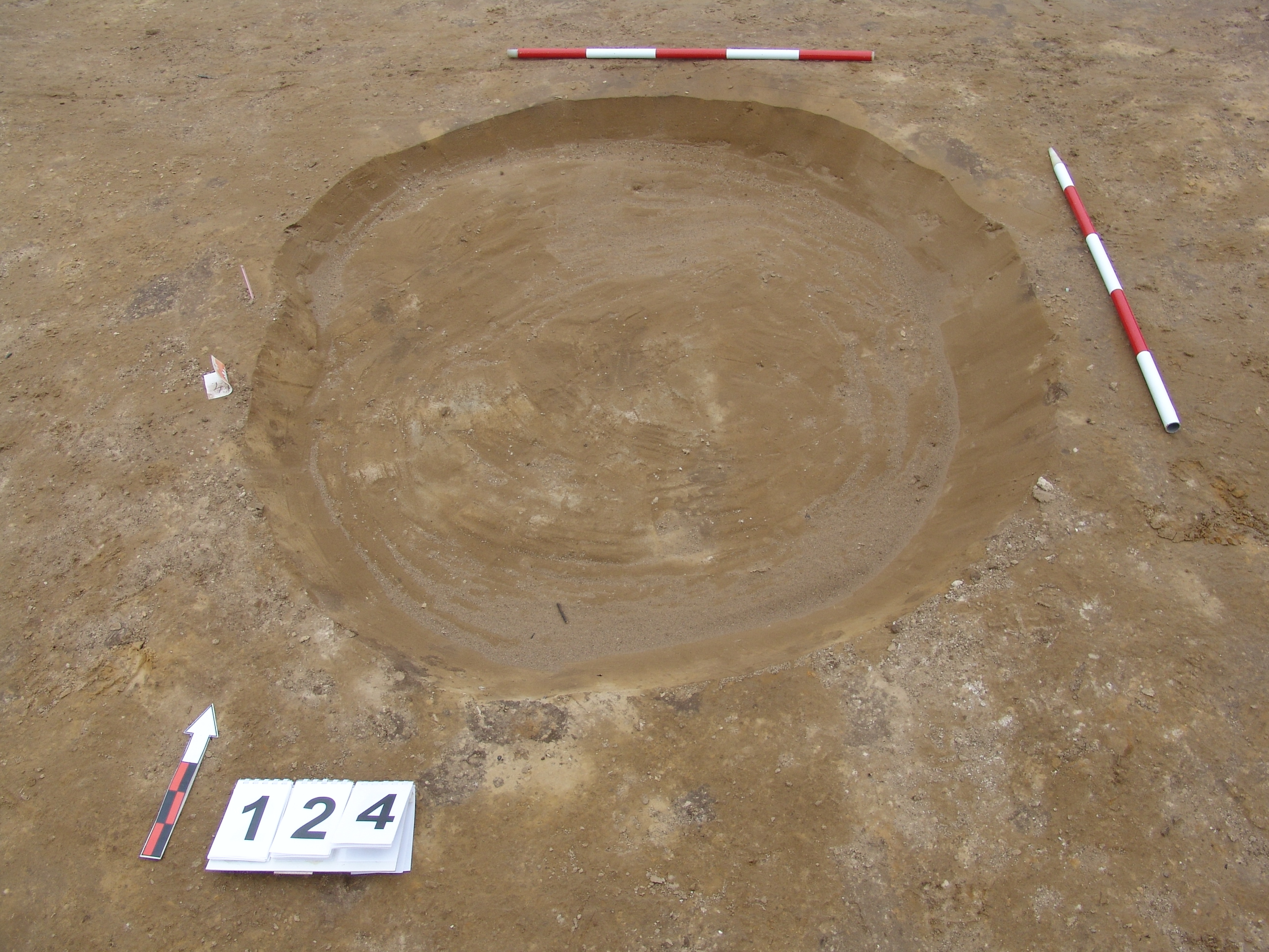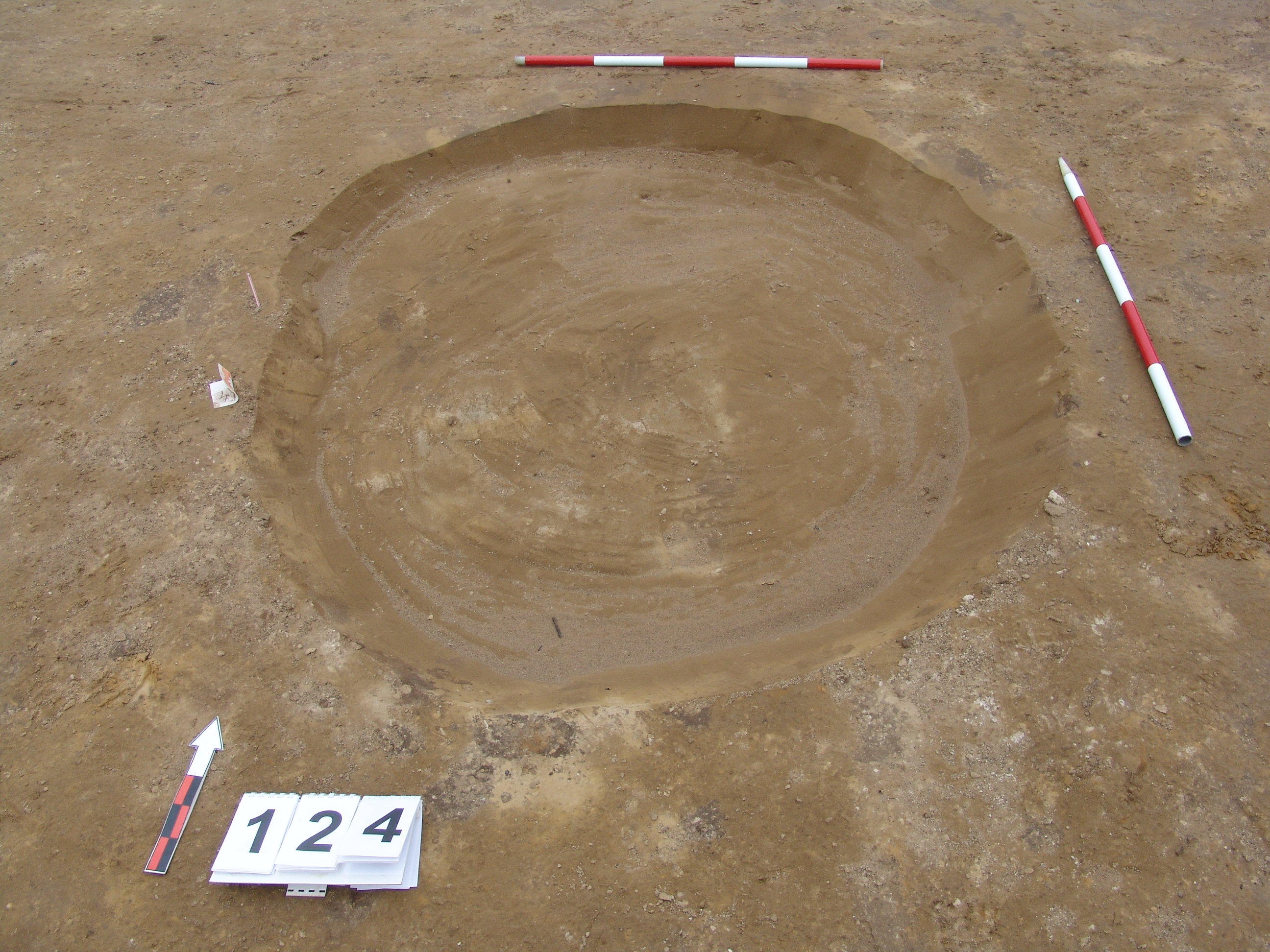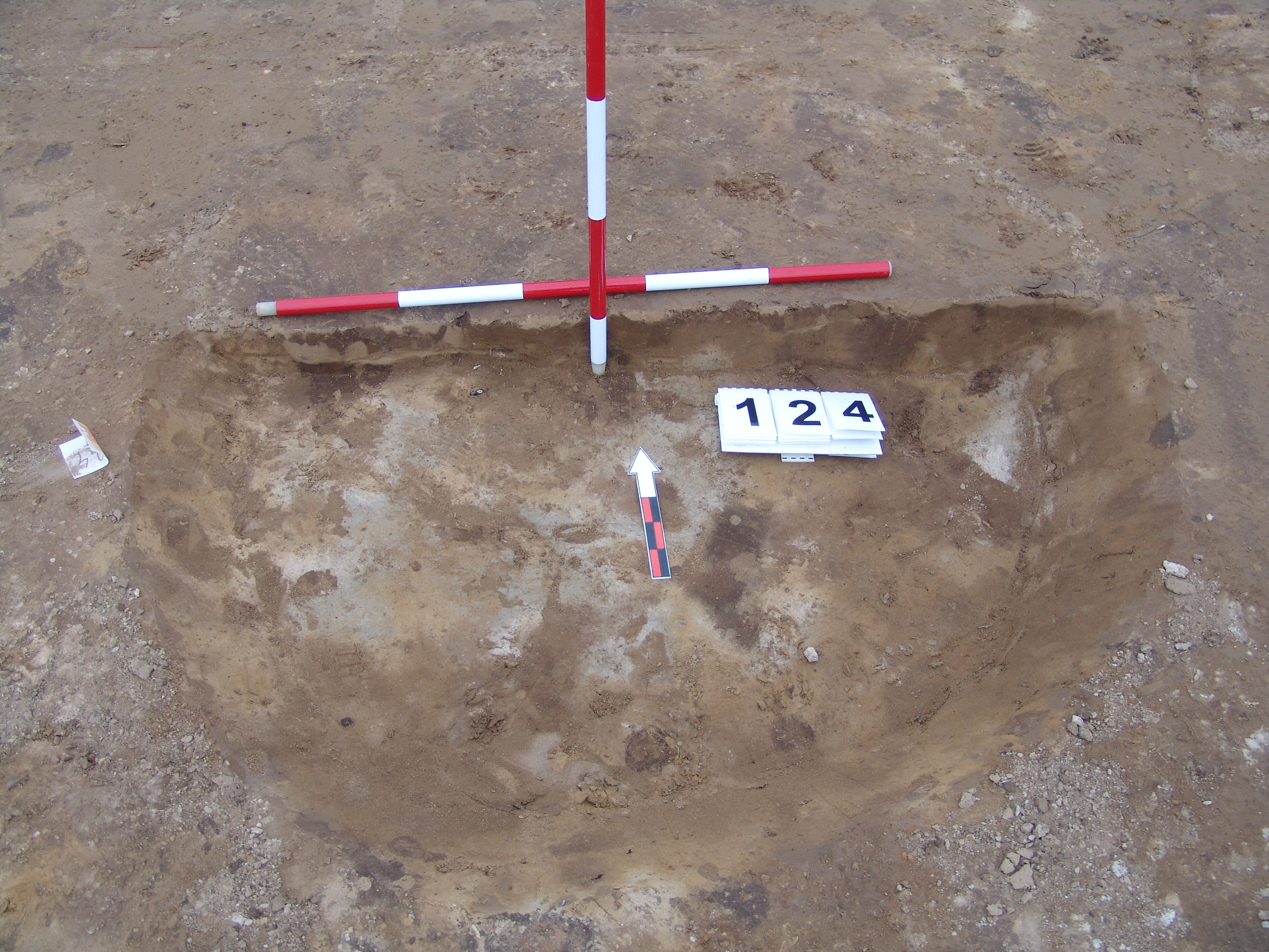 Bizonytalan, sárga szemcsés, kevert, kerek folttal jelentkezik a 125 objektumtól D-re. Talán meredek falú, egyenes aljú, kör alaprajzú gödör. Betöltése világos barnás kevert. Átmérője fent Ny-K 155, É-D 185 cm, alul Ny-K 140, É-D 160 cm.