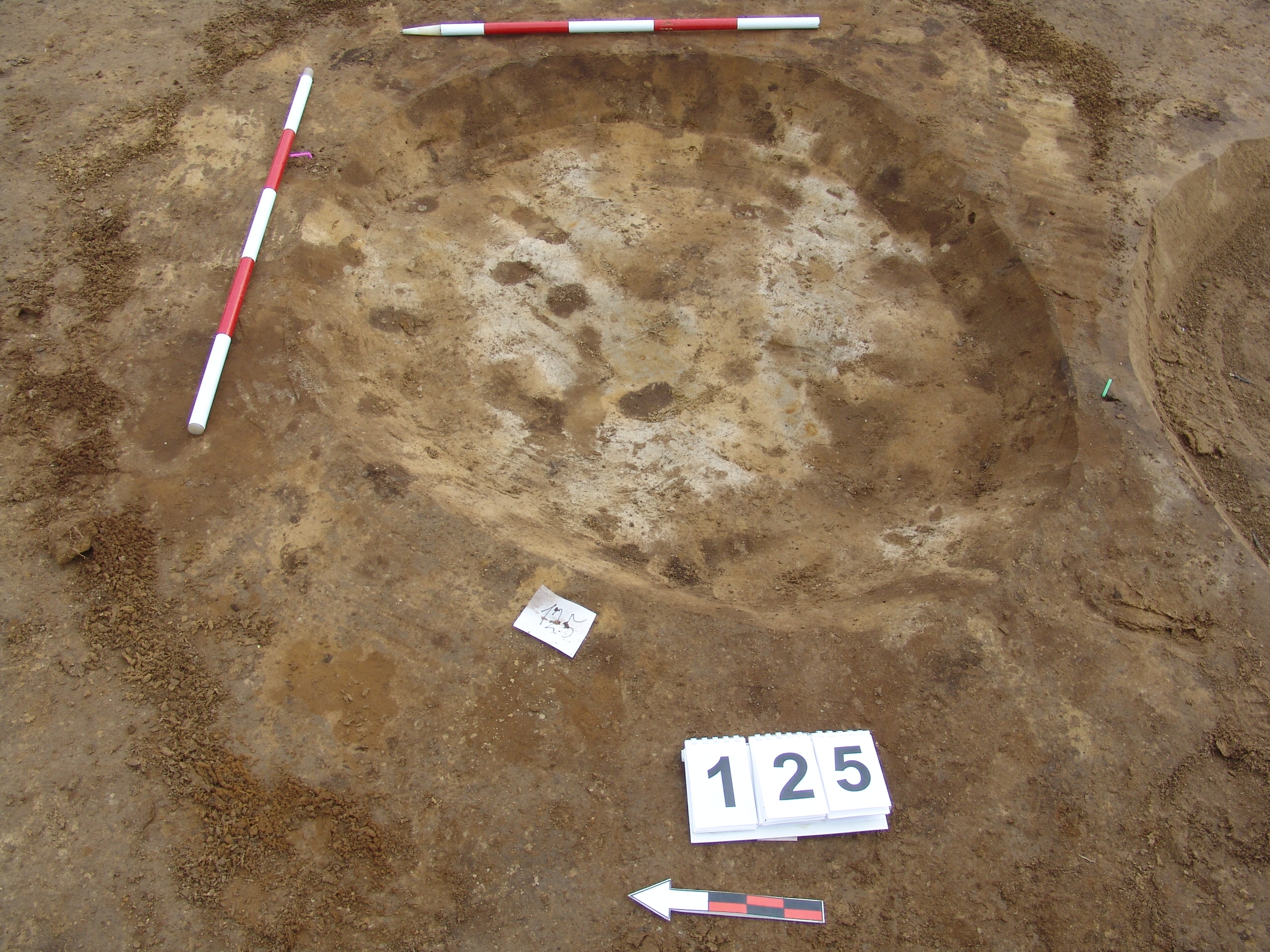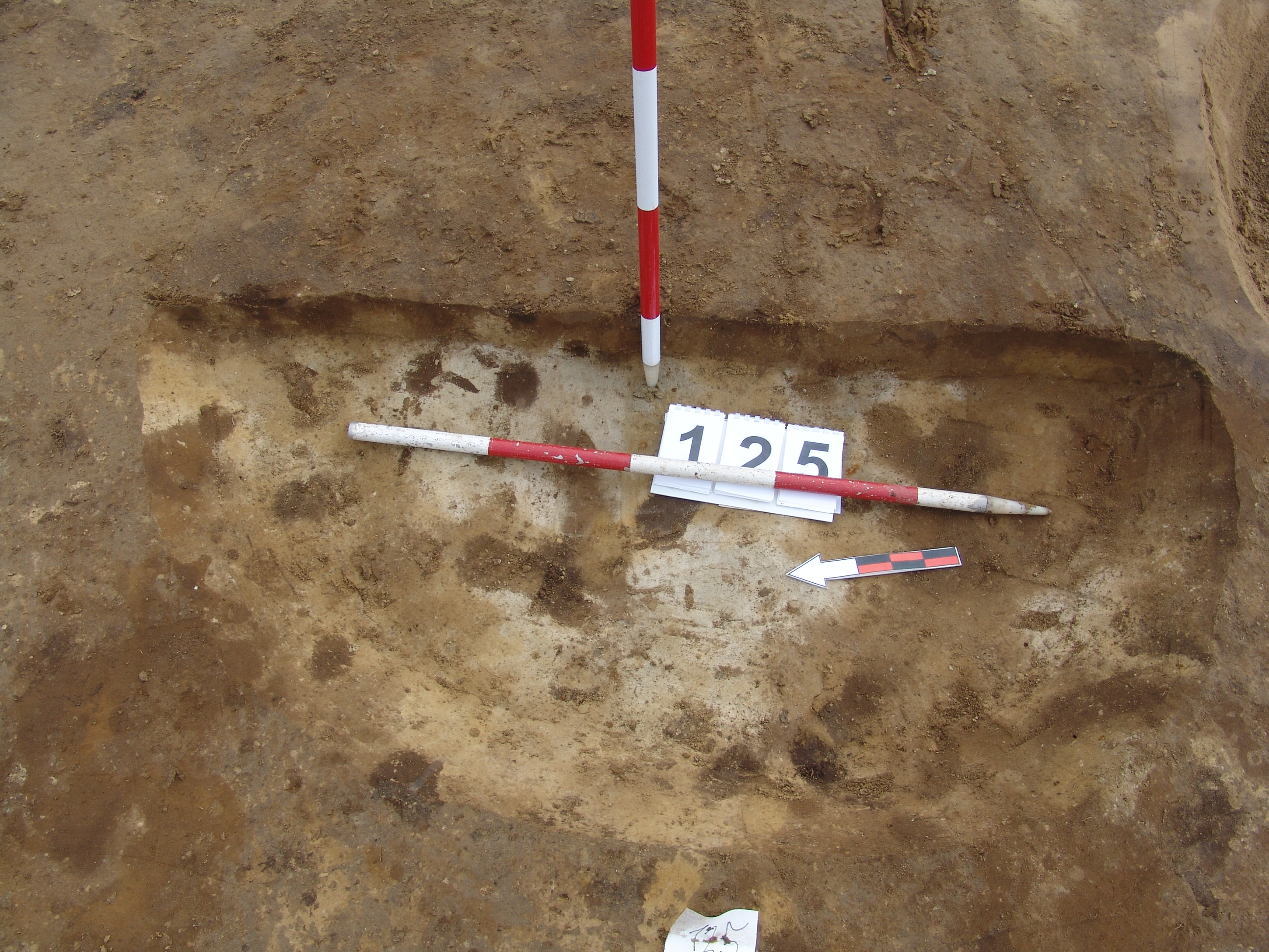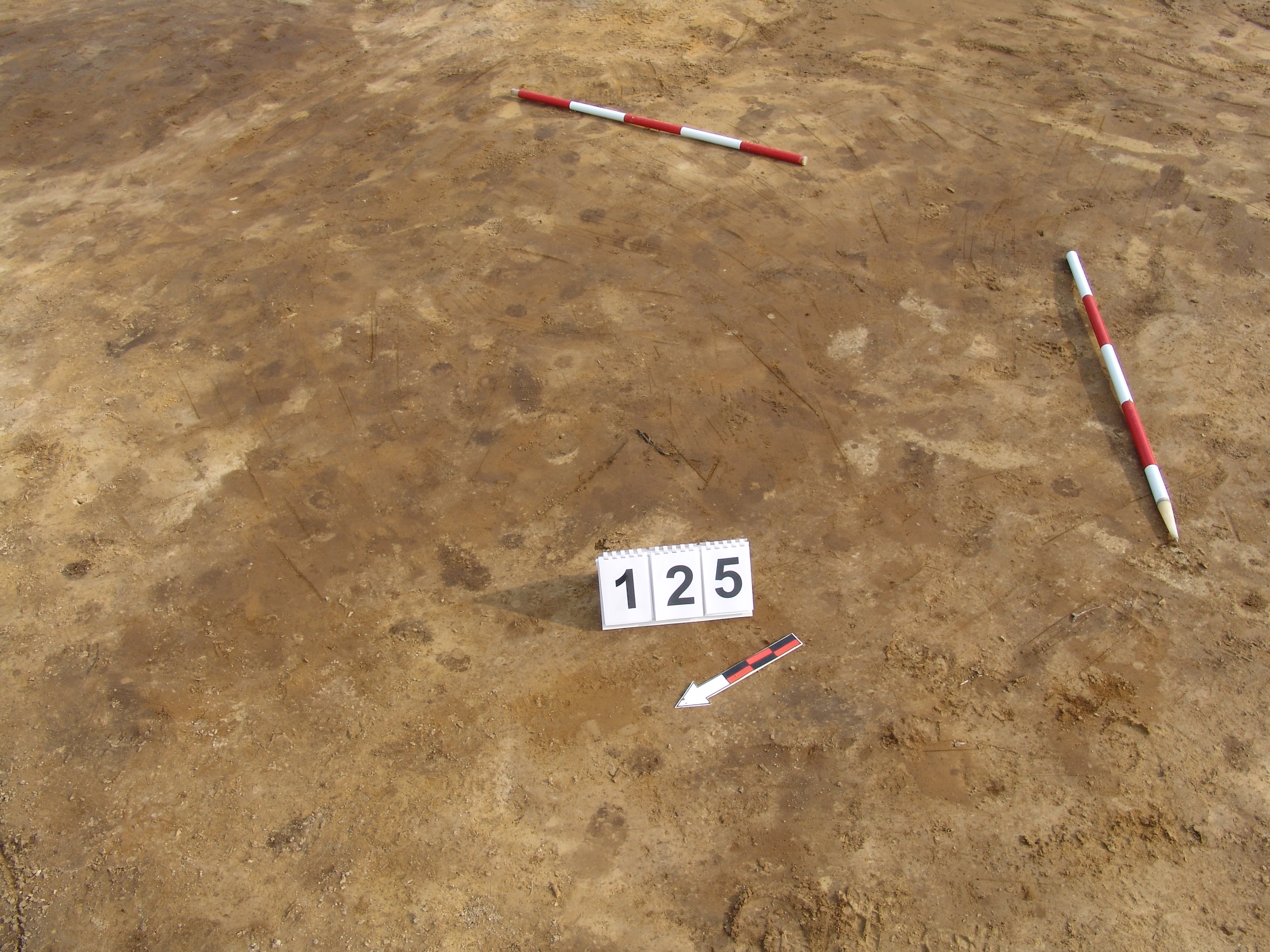 Bizonytalan, sárgás szürke kevert betöltésű, Ny-K tájolású négyzetes folttal jelentkezik. Lehet, hogy két objektumról van szó? Betöltése: sárga - szürke kevert betöltésű kör alaprajzú, meredek falú gödör. Bizonytalan, kérdéses, hogy valóban régészeti jelenség e. Átmérője fent 140 X 150, lent 120 X 130 cm. Mélysége 12 cm.