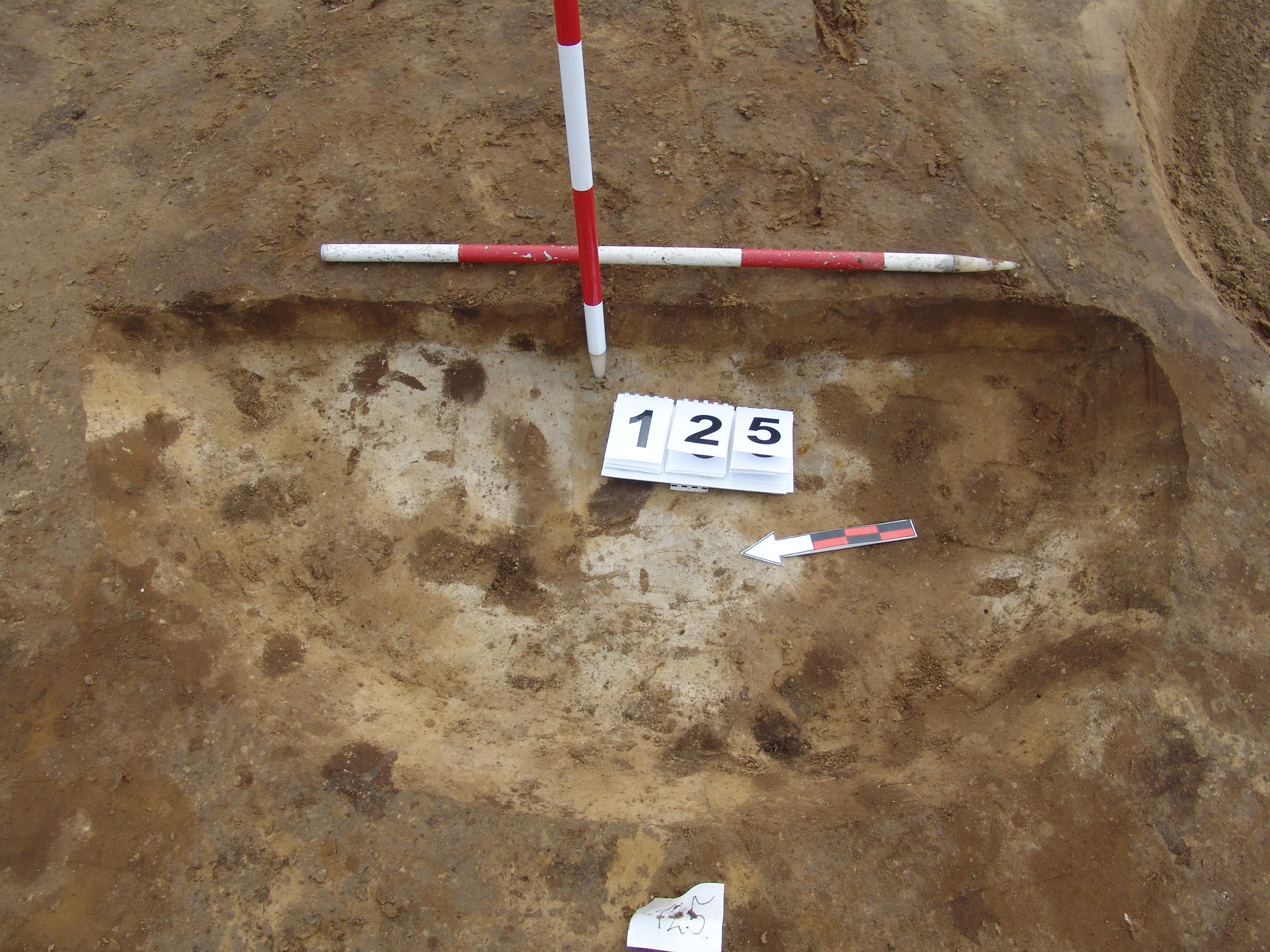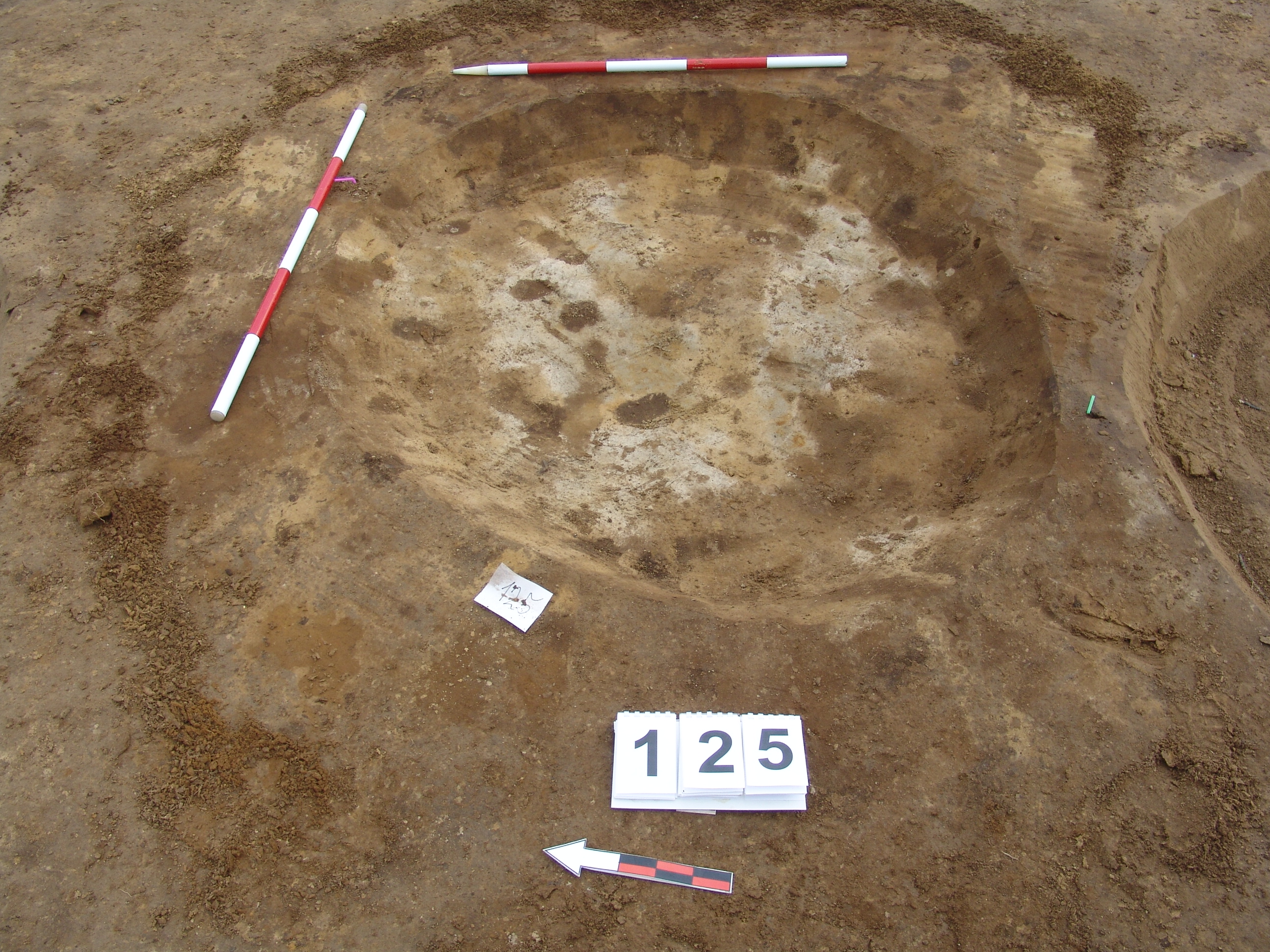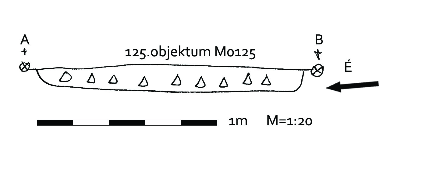 Bizonytalan, sárgás szürke kevert betöltésű, Ny-K tájolású négyzetes folttal jelentkezik. Lehet, hogy két objektumról van szó? Betöltése: sárga - szürke kevert betöltésű kör alaprajzú, meredek falú gödör. Bizonytalan, kérdéses, hogy valóban régészeti jelenség e. Átmérője fent 140 X 150, lent 120 X 130 cm. Mélysége 12 cm.