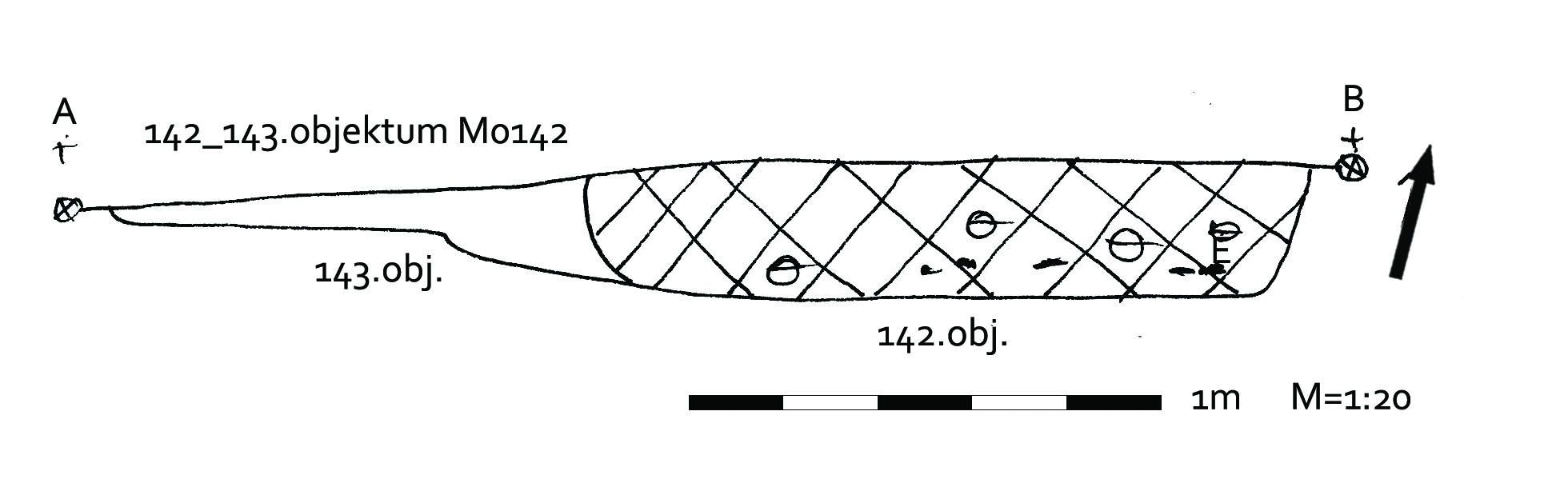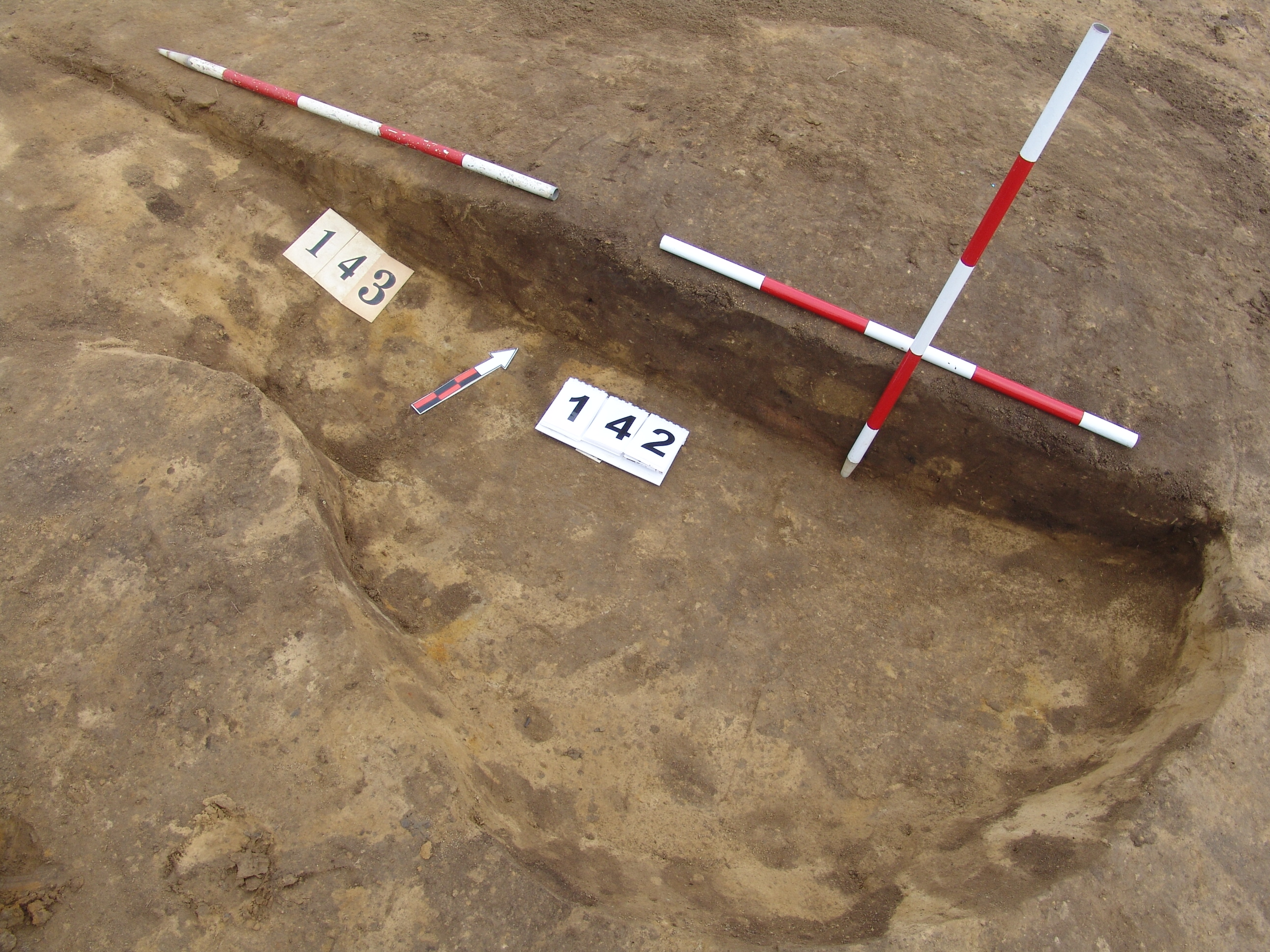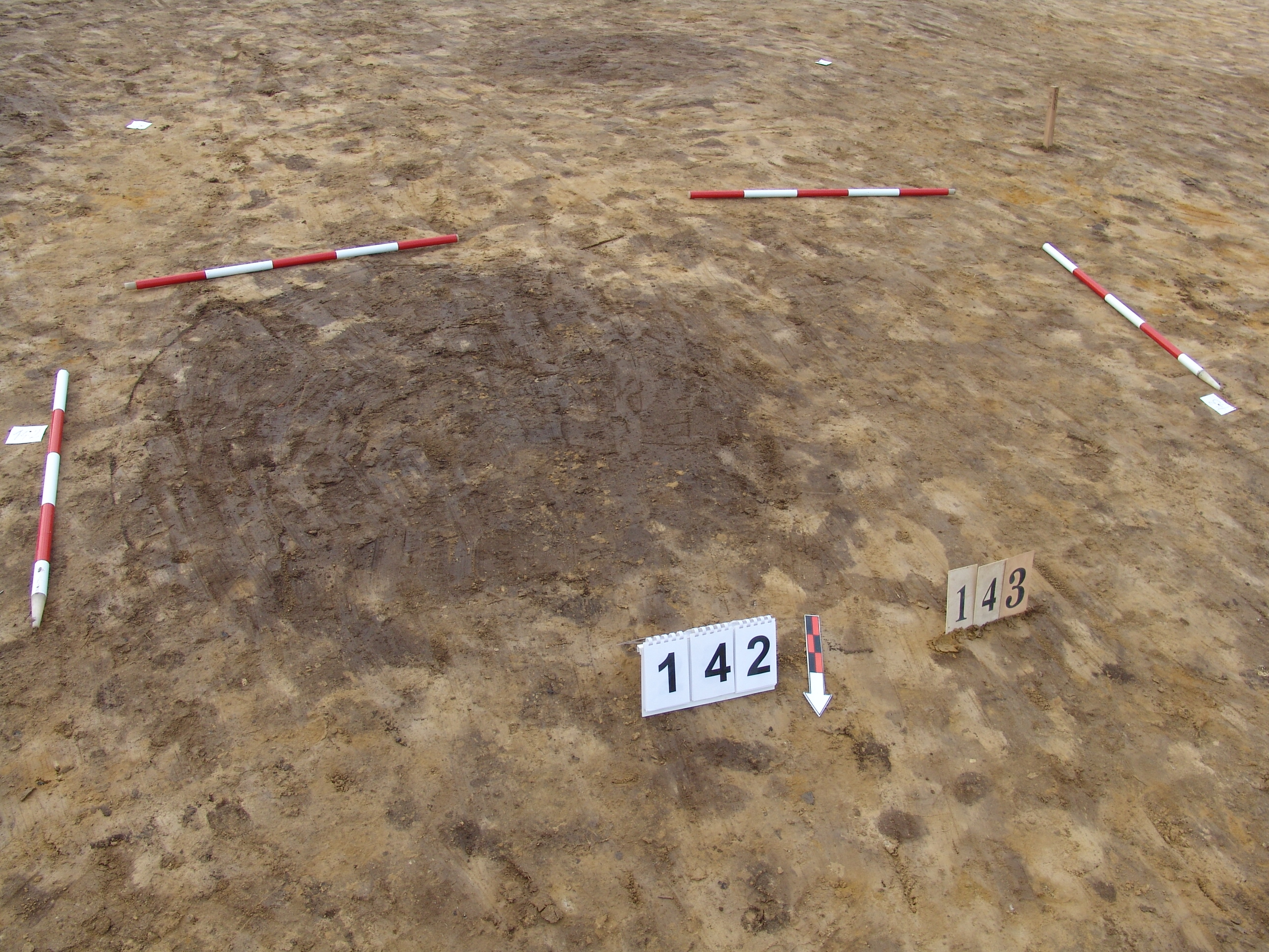 A 142 gödörtől Ny-ra bizonytalan, elúszó, halvány folt. Nagyjából kör alakú. Nem egyértelmű, hogy régészeti jelenség. A bontás során tisztázódott, hogy nem régészeti jelenség.