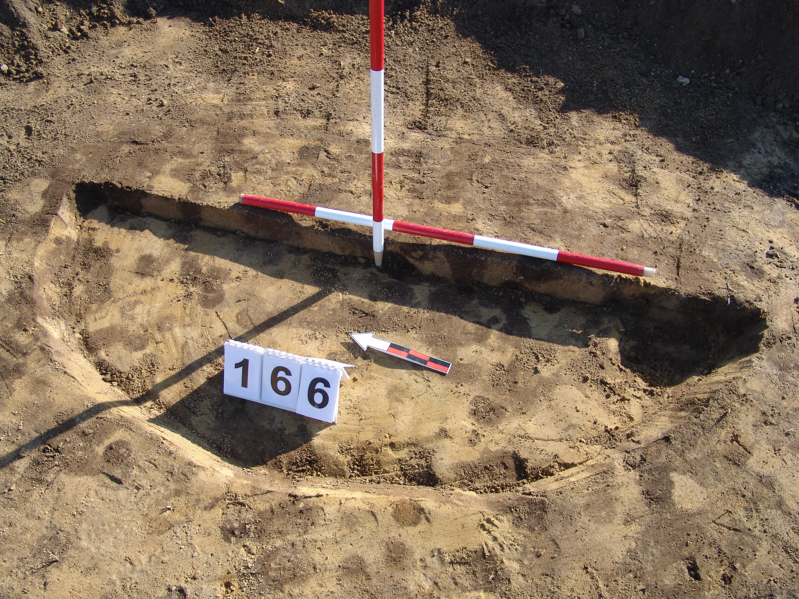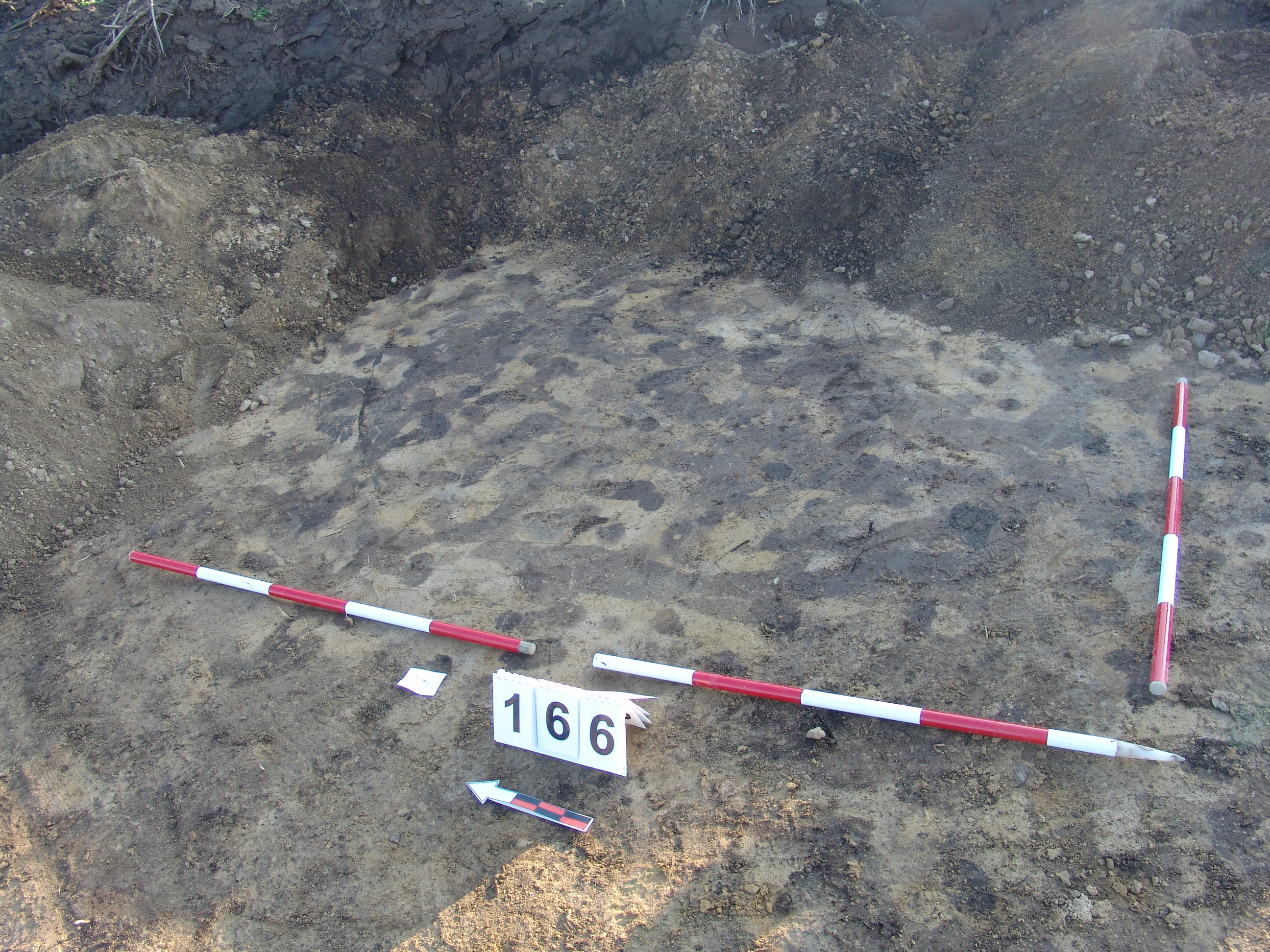 A feltárandó terület K -i szélénél bizonytalan, elúszó folt, mely valószínűleg természetes jelenség, de inkább megnézzük tényleg az -e. A bontás során kiderült, hogy nem régészeti jelenség.