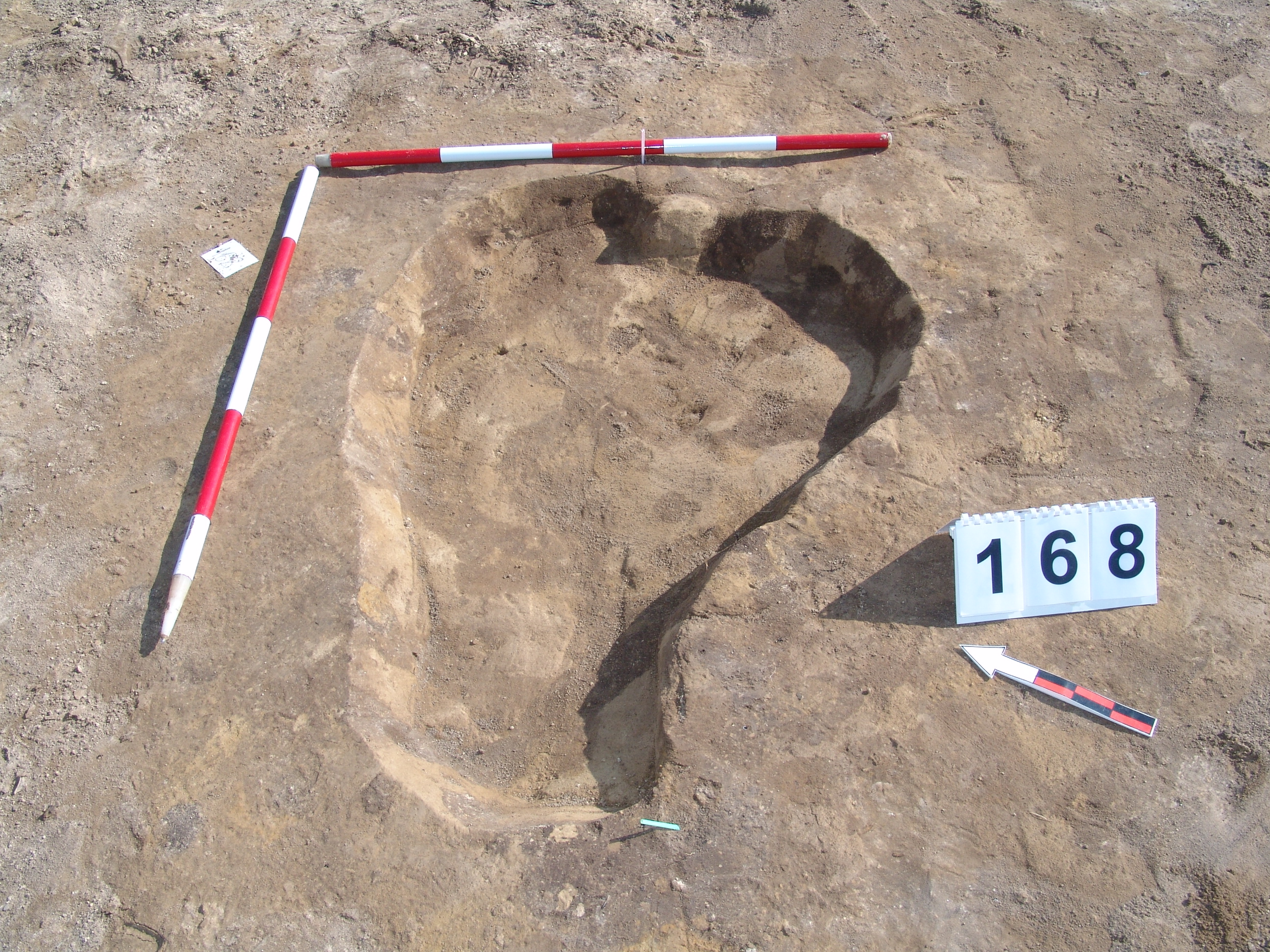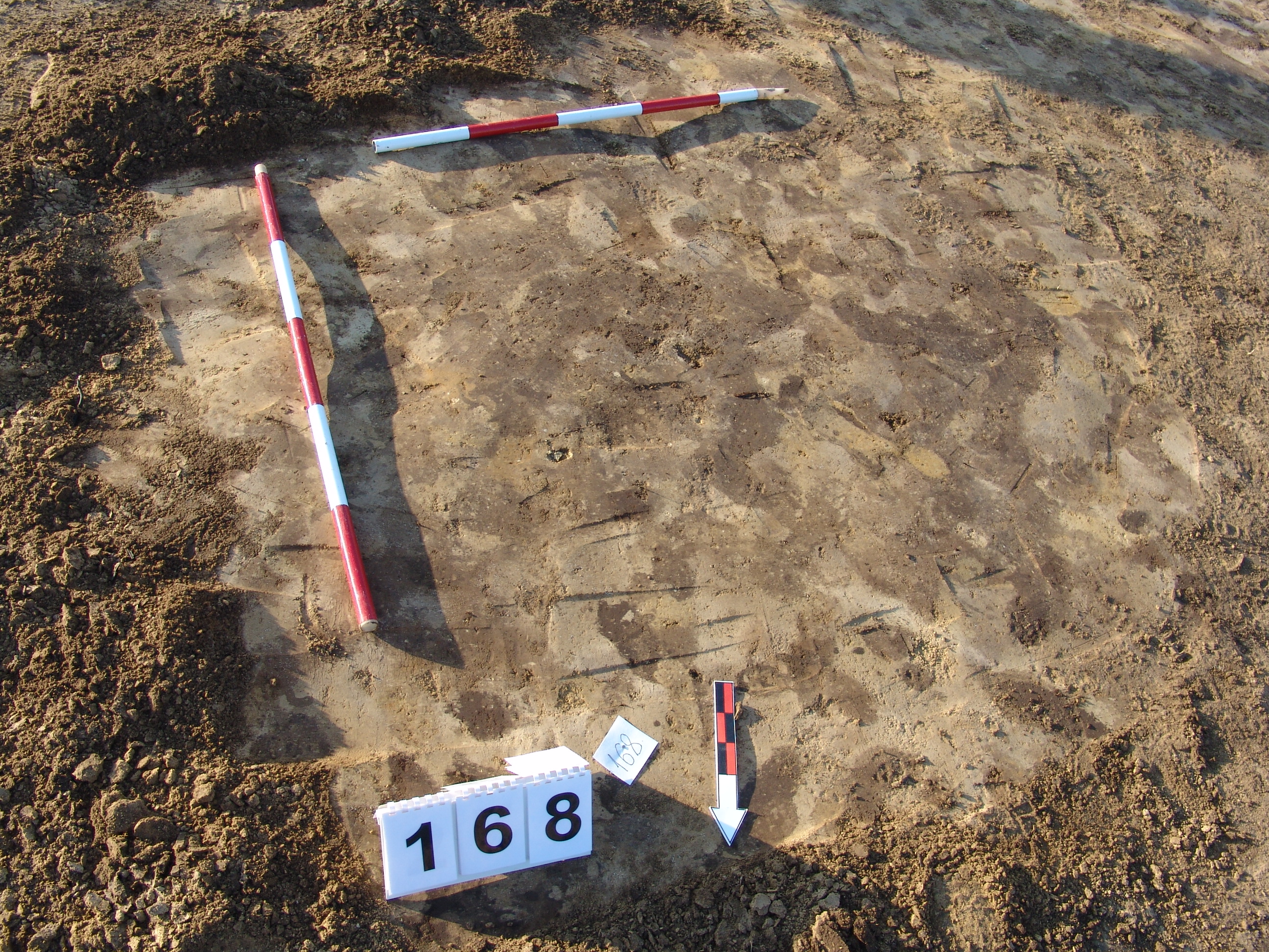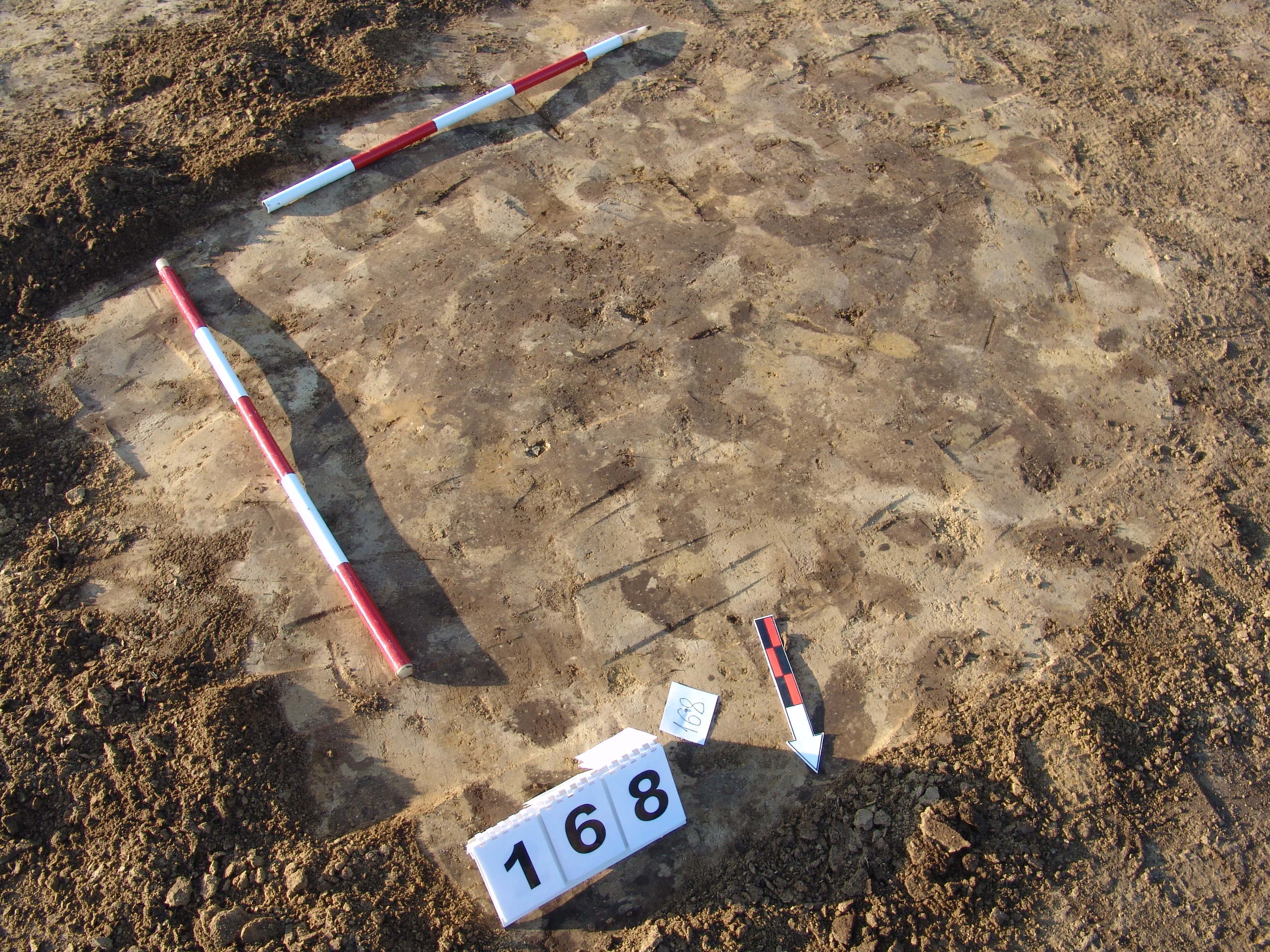 Bizonytalan, elúszó "maszatos", sárga - szürke - barna kevert folttal jelentkező objektum. A foltnál némileg kisebb, meredek aljú, egyenes aljú gödör. Betöltése sárga szemcsés sötétbarna. Átmérője fent É - D 85, Ny - K 74 cm, lent É - D 76, Ny - K 68 cm. Mélysége: 8 cm.