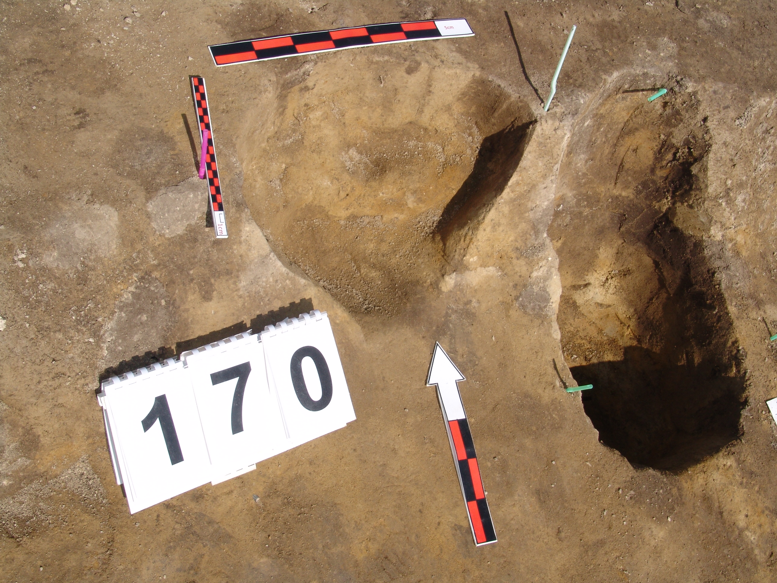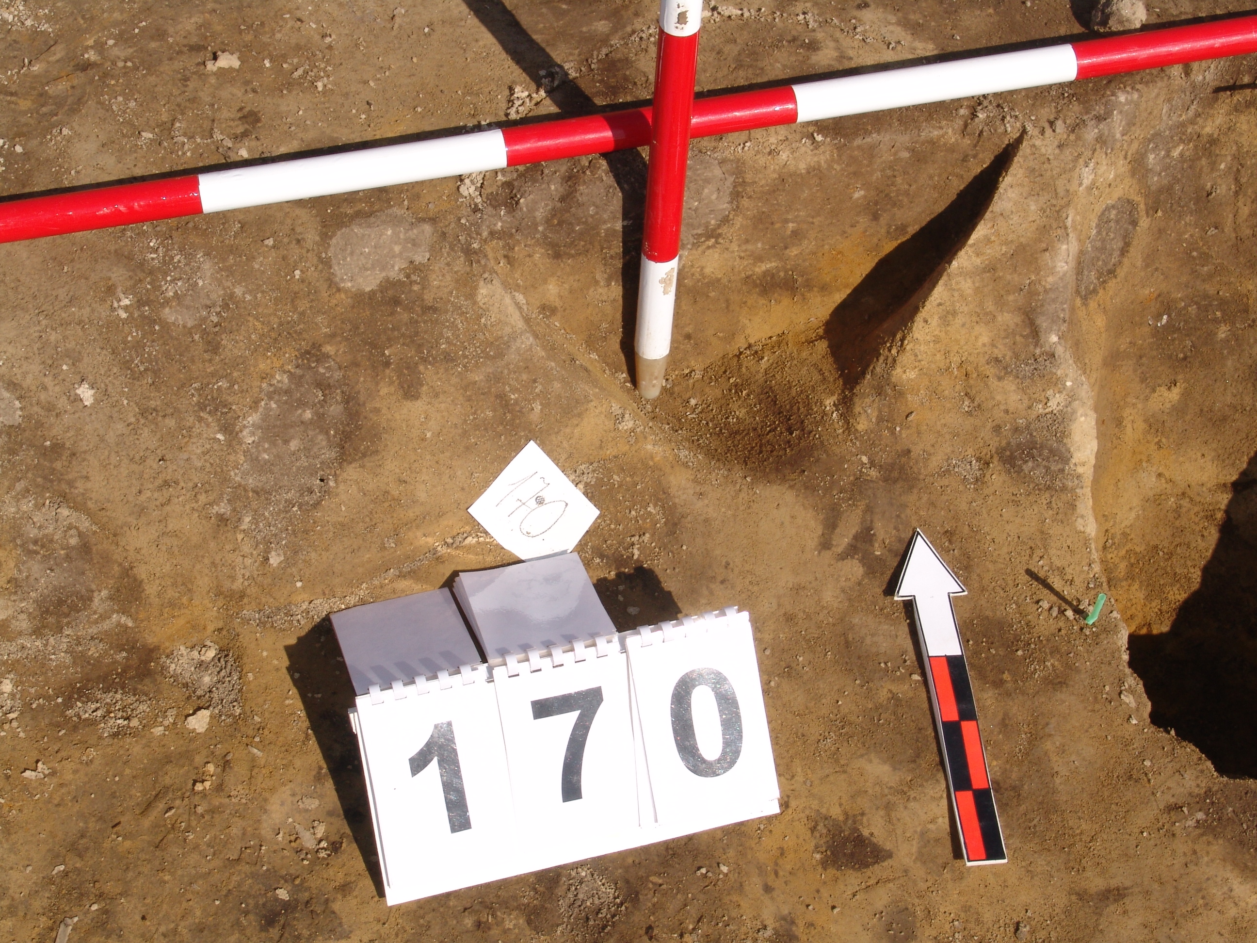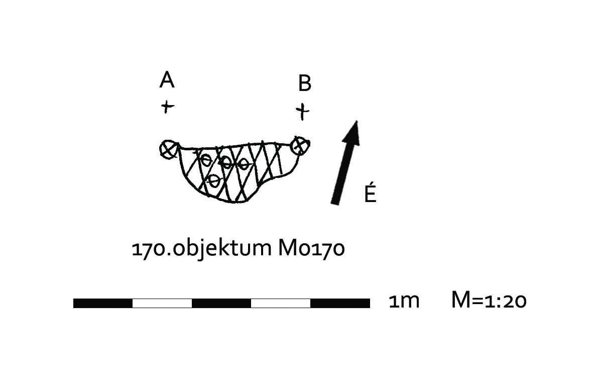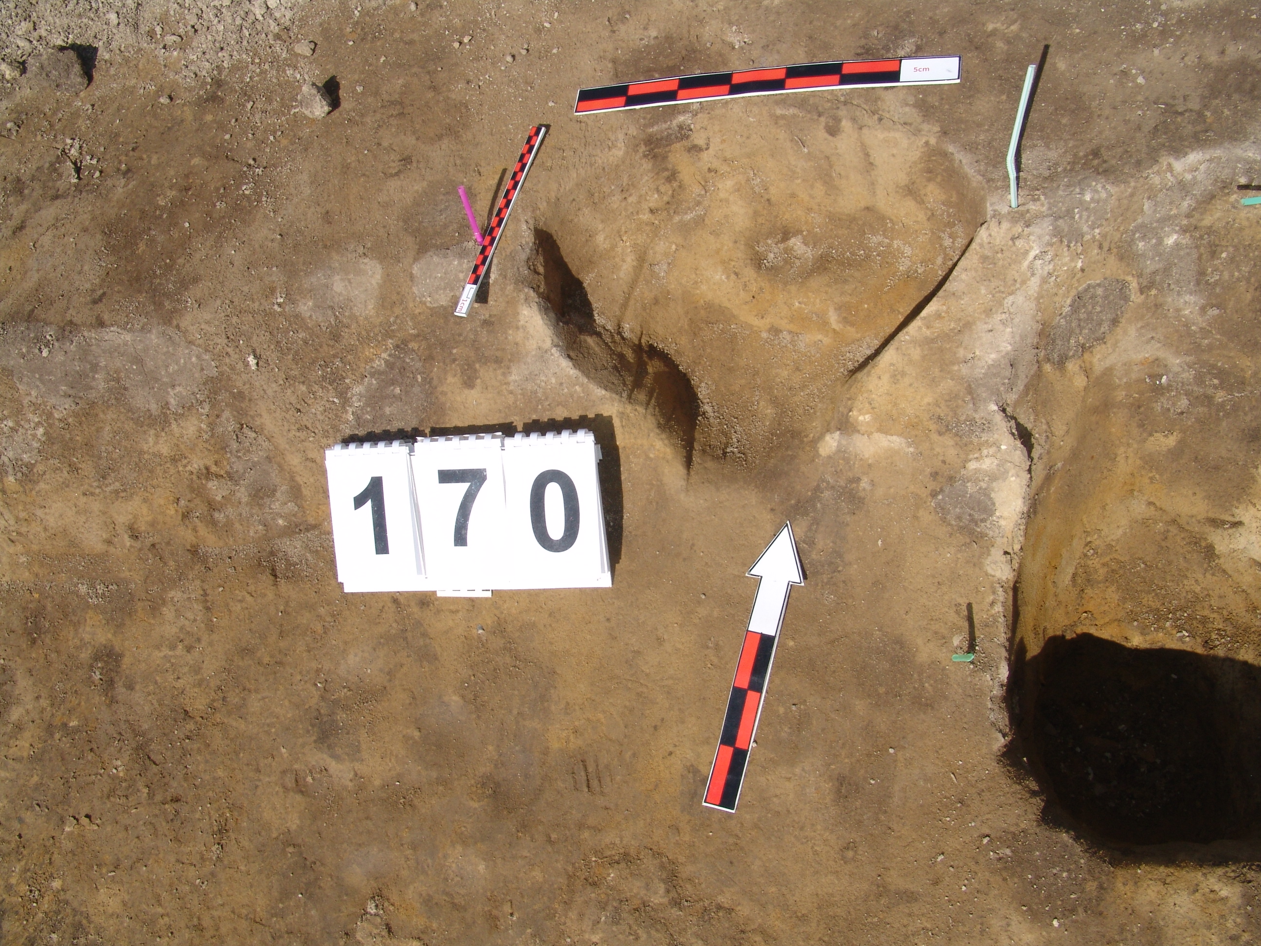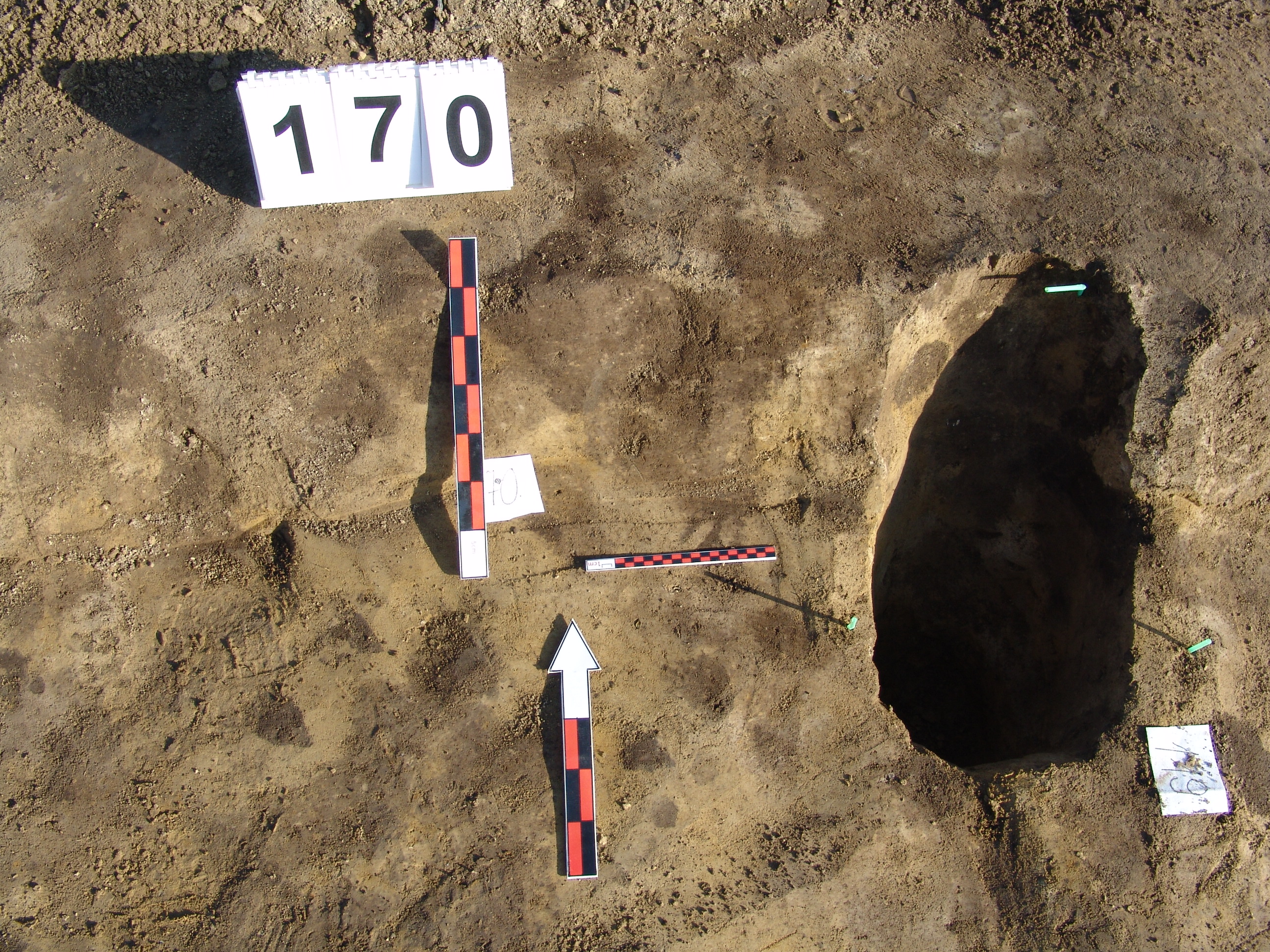 A 119 cölöplyuktól ÉNy - ra, a 100 ház falából "kiugró" folt jelentkezett. Kicsit szabálytalan alaprajzú, bizonytalan. Betöltése sárga szemcsés szürke állatjáratos. Átmérője Ny - K 38, É - D 22 cm. Mélysége 20 cm a ház jelentkezési szintjétől. A padló alá nem mélyül.