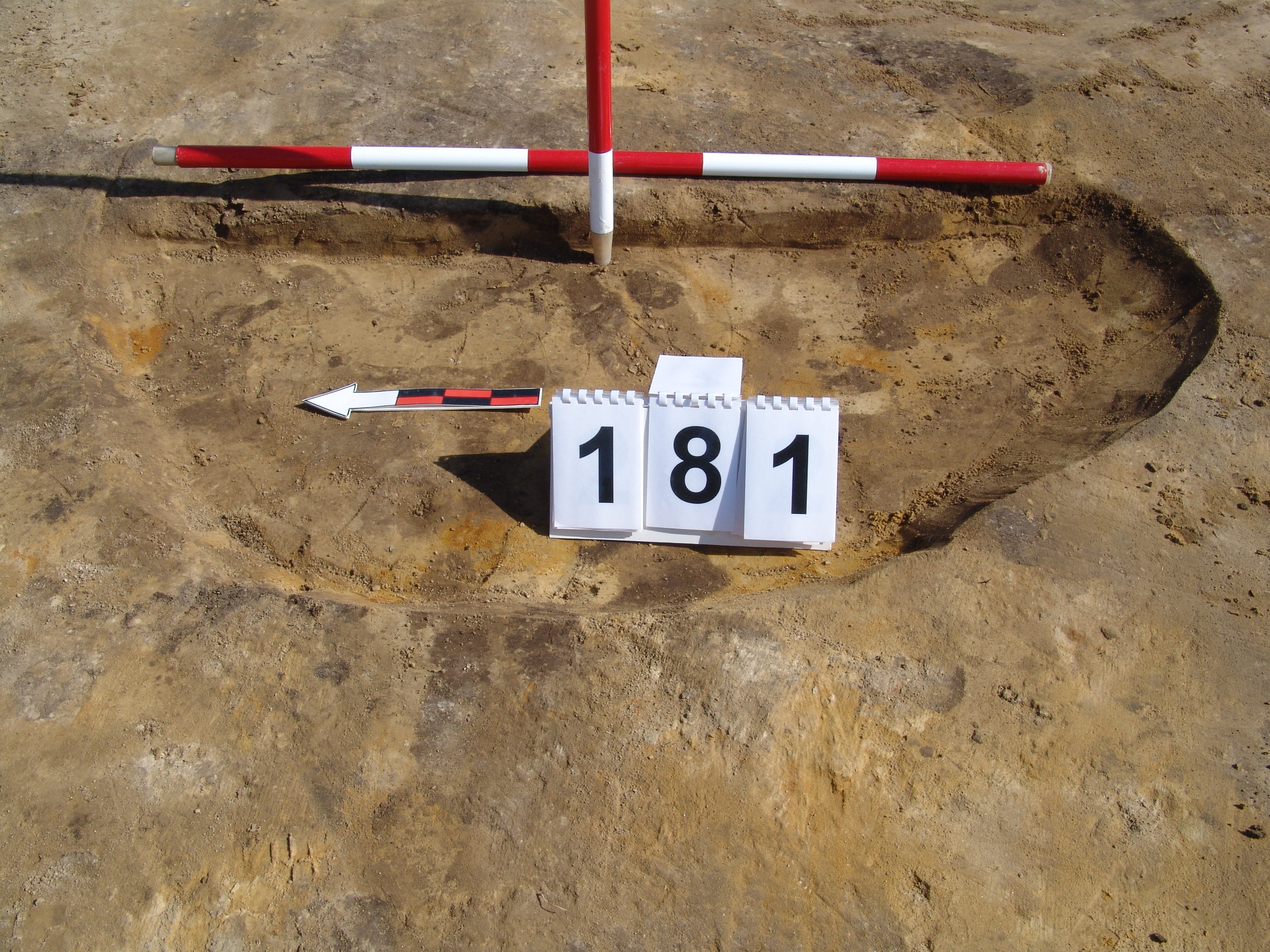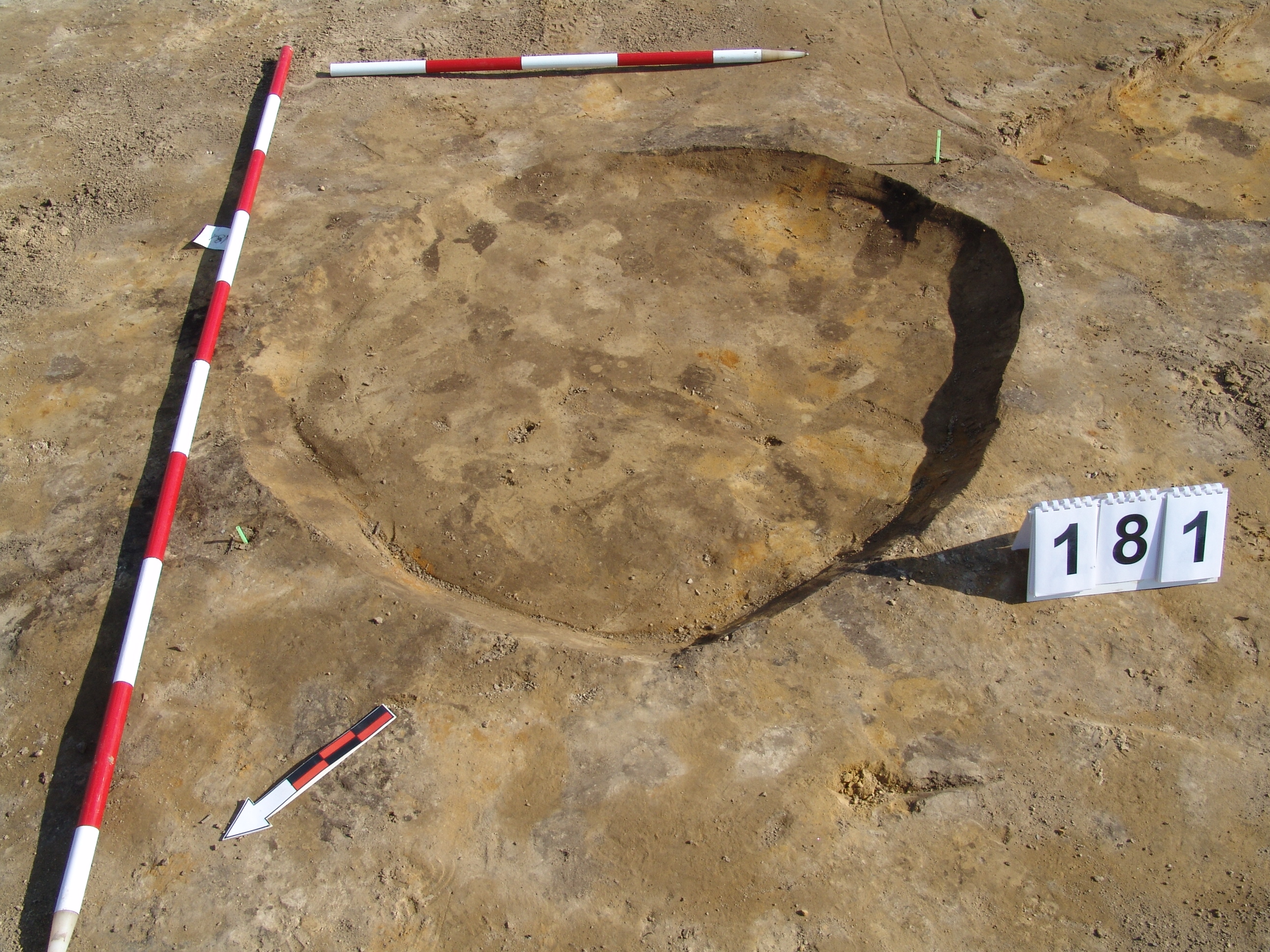 A 150 objektumtól NyDNy - ra körülbelül 5 - 6 cm - re kis kormos fekete folttal jelentkezett. egy gödörnek csak az alja maradt meg. Pár cm kevert réteg csak. Alja egyenes, fala talán meredek. Átmérője 100 X 110 cm. Mélysége 3 - 4 cm. D - i oldalát túlbontották.