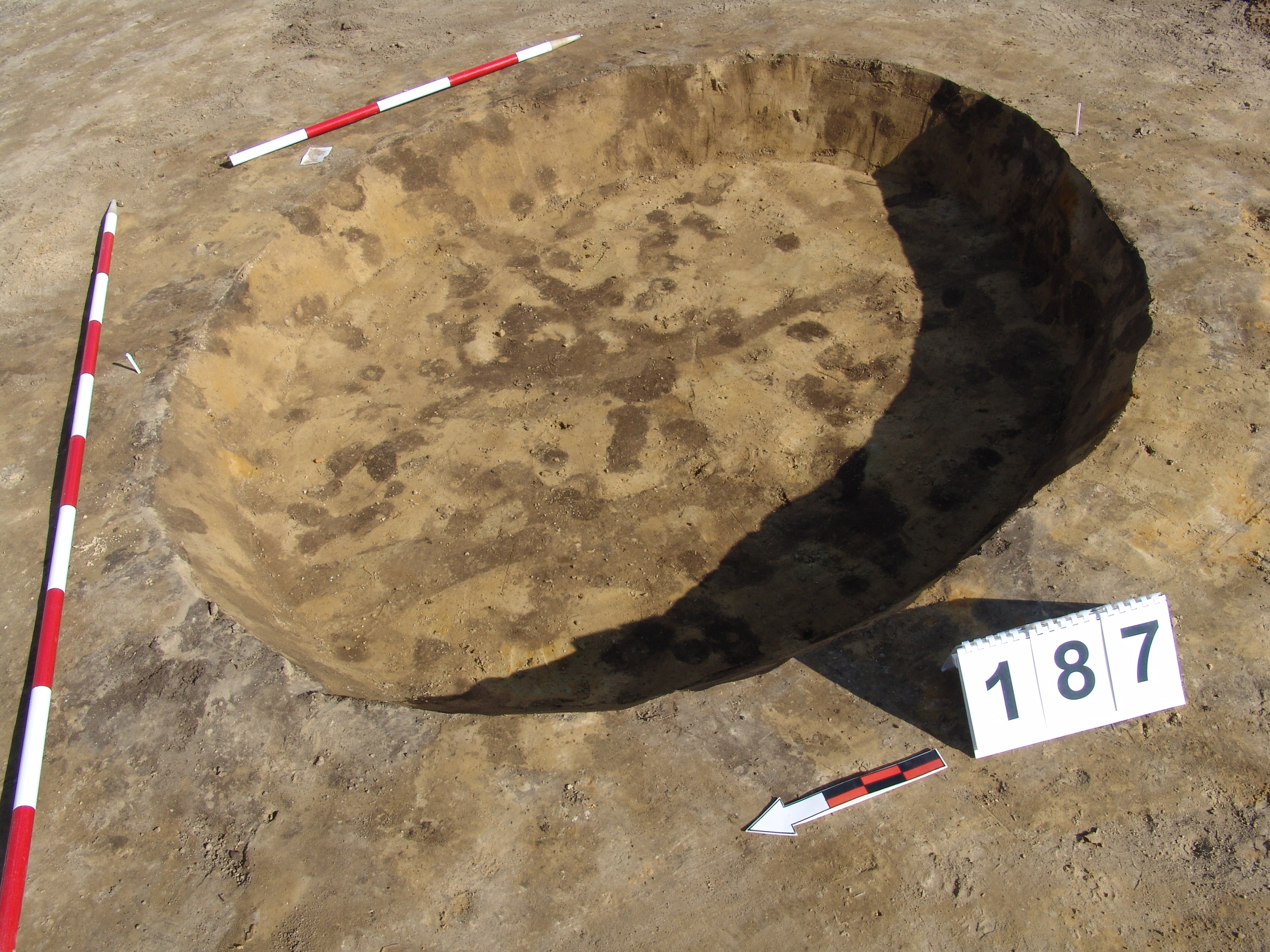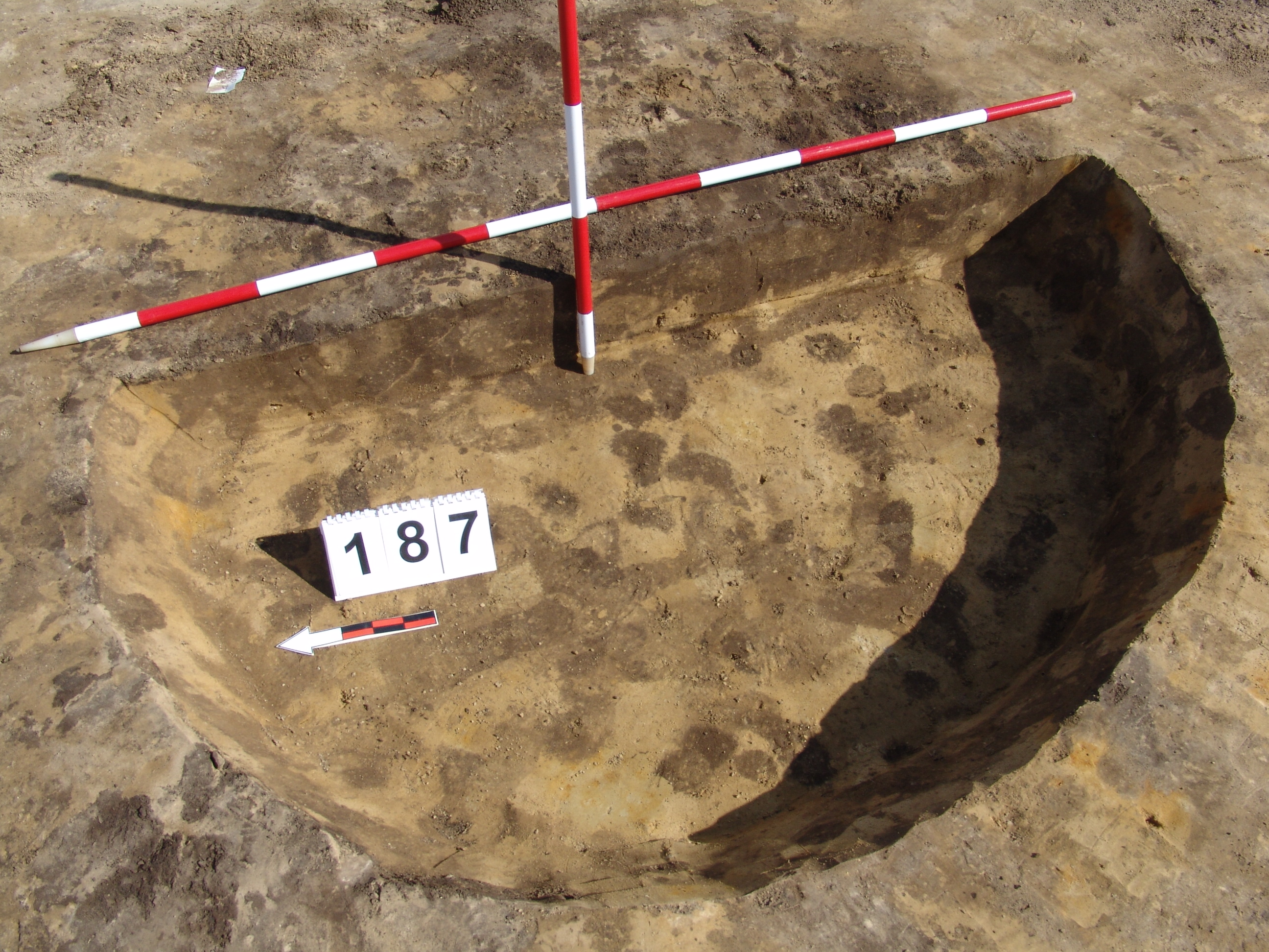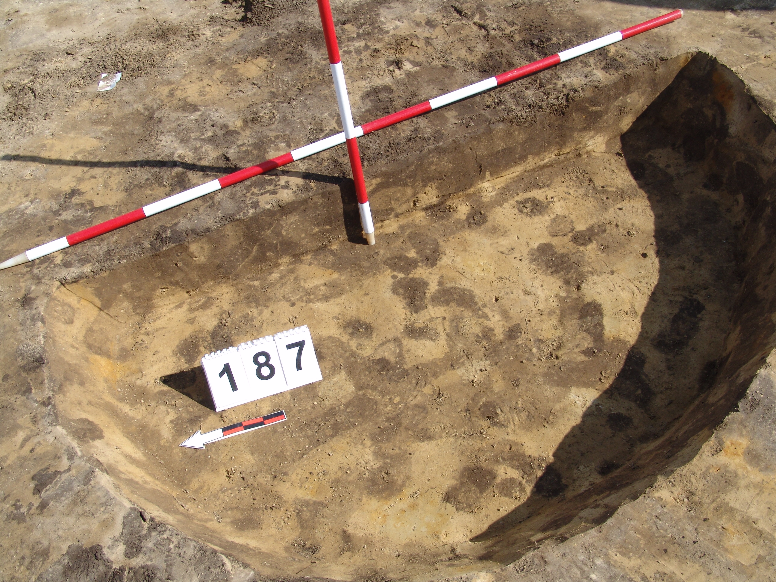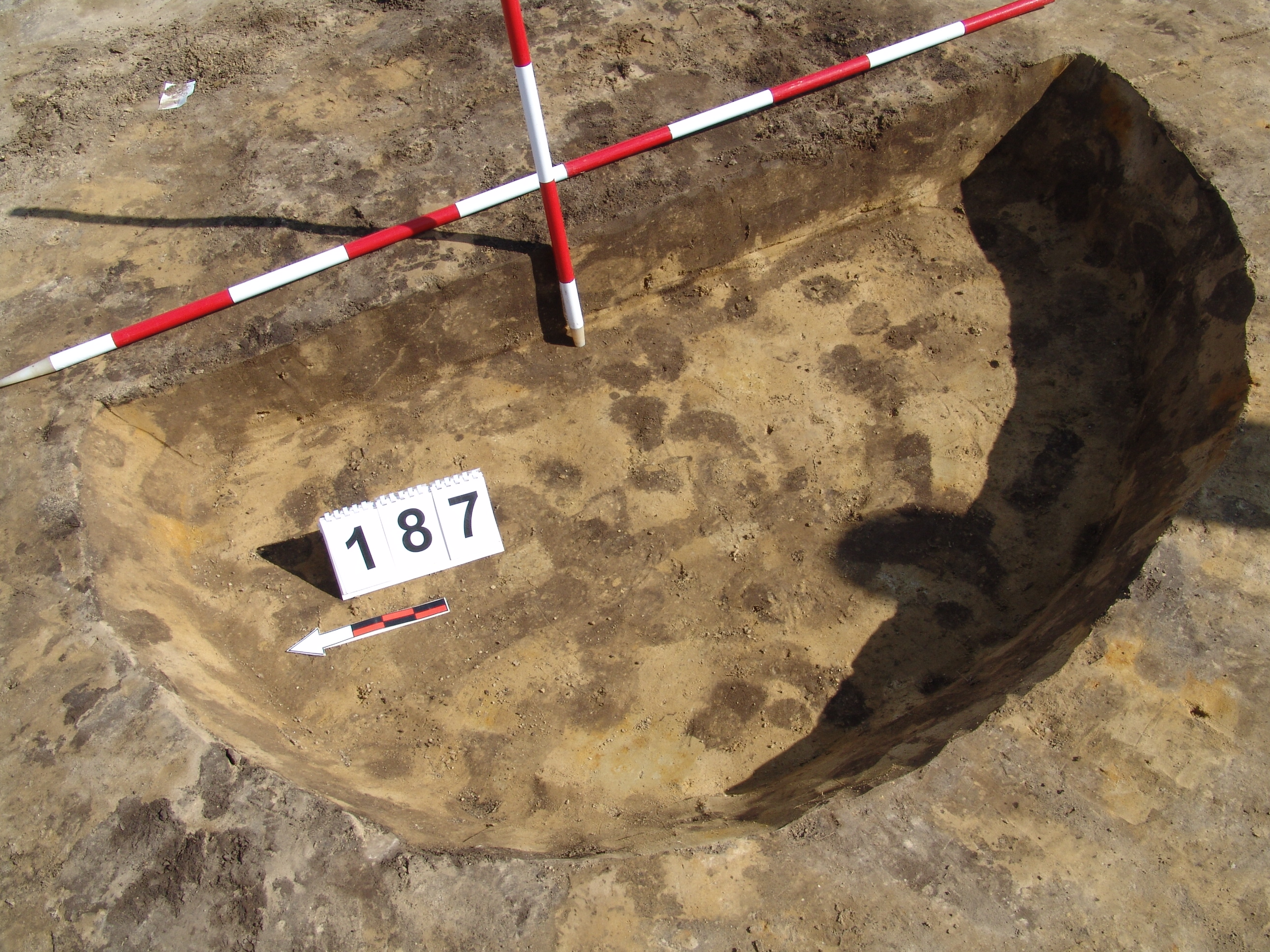 A 3700 karó és a 186 objektum közt valószínűleg az MNM NÖK által már kibontott objektum. Enyhén meredek falú, egyenes aljú, kör alaprajzú gödör. Betöltése sárga szemcsés sötét barnásszürke. Átmérője fent É - D 187, Ny - K 180 cm, lent É - D 169, Ny - K 152 cm. Mélysége 17 - 22 cm.