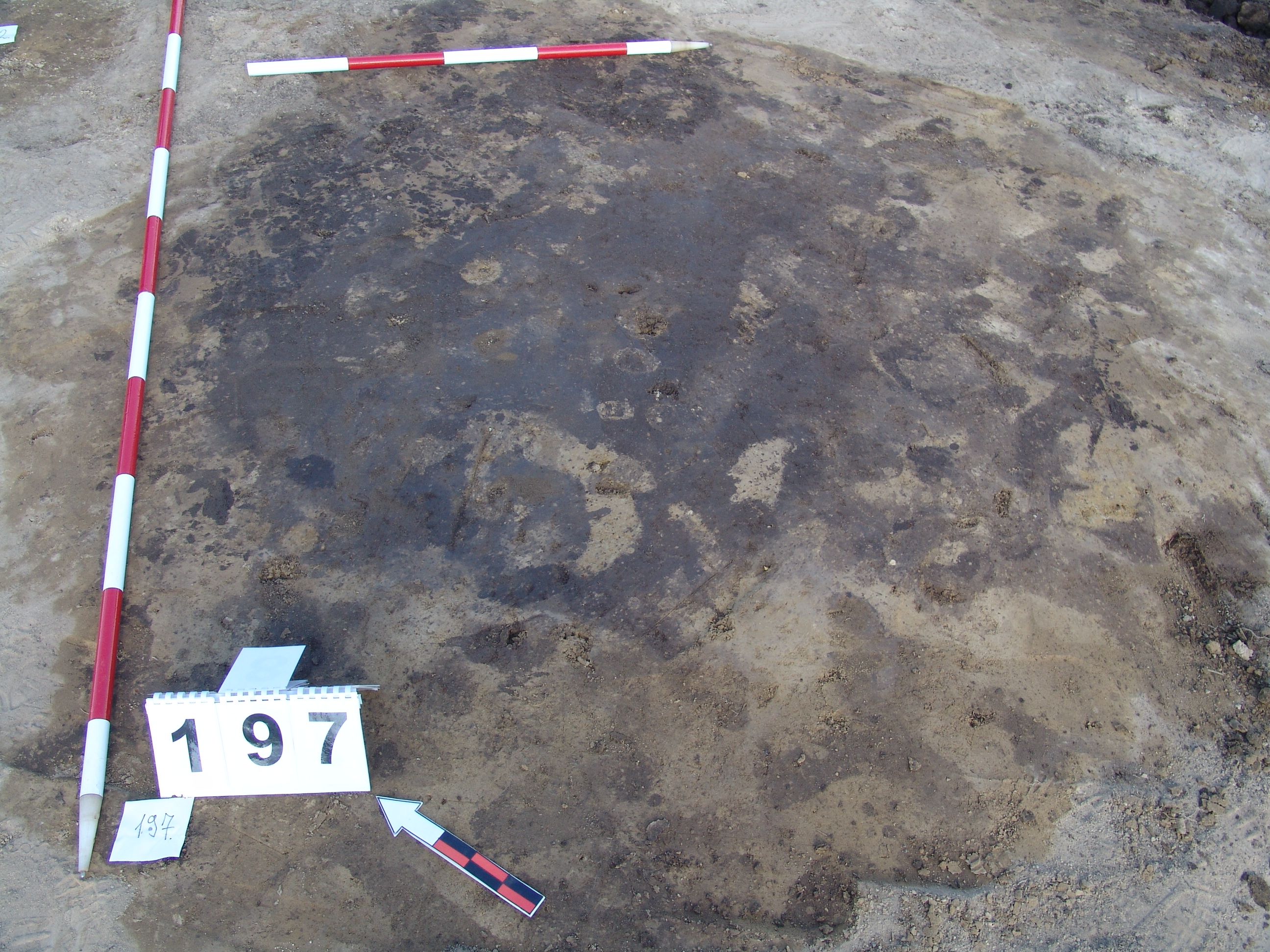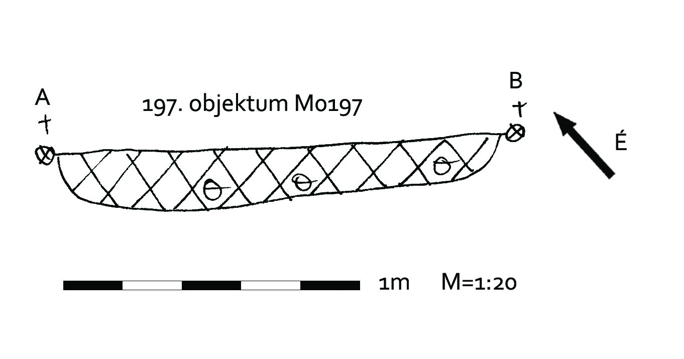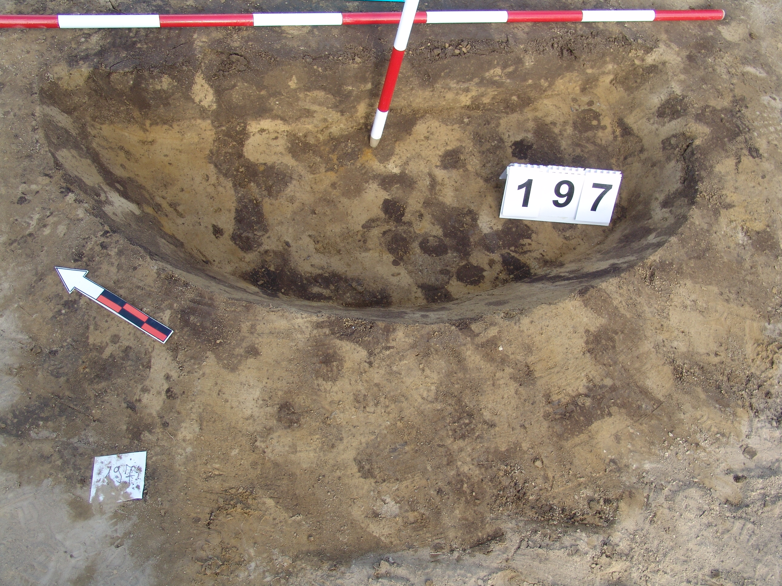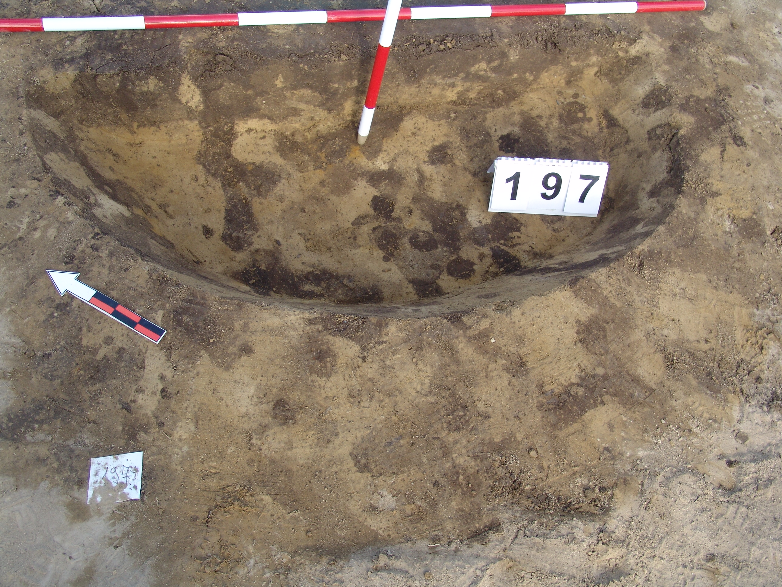 Jól látszó kerek folttal jelentkezett a 191 objektumtól K - re 2 - 3 cm -re. Meredek falú, egyenes aljú, sárga - szürke szemcsés sötét barnásszürke betöltésű gödör. Átmérője fent É - D 155, Ny - K 145 cm, lent É - D 135, Ny - K 128 cm. Mélysége 13 - 25 cm.