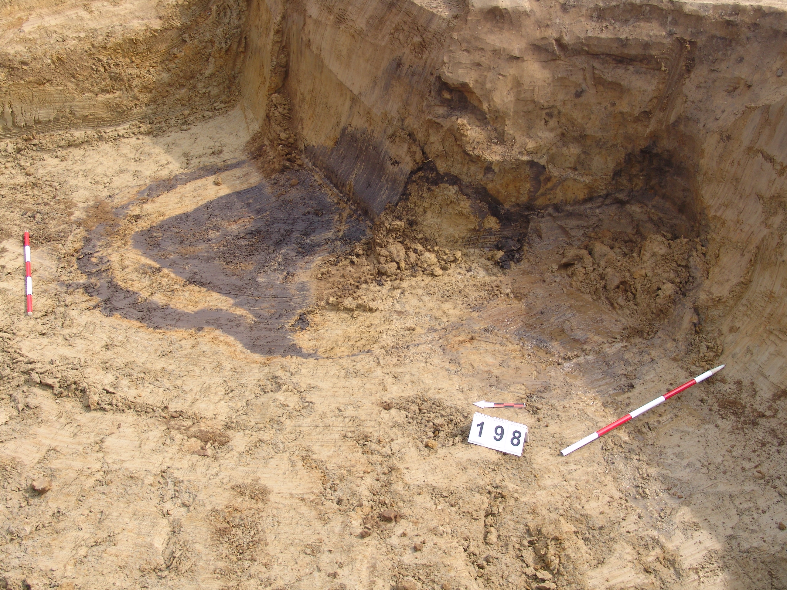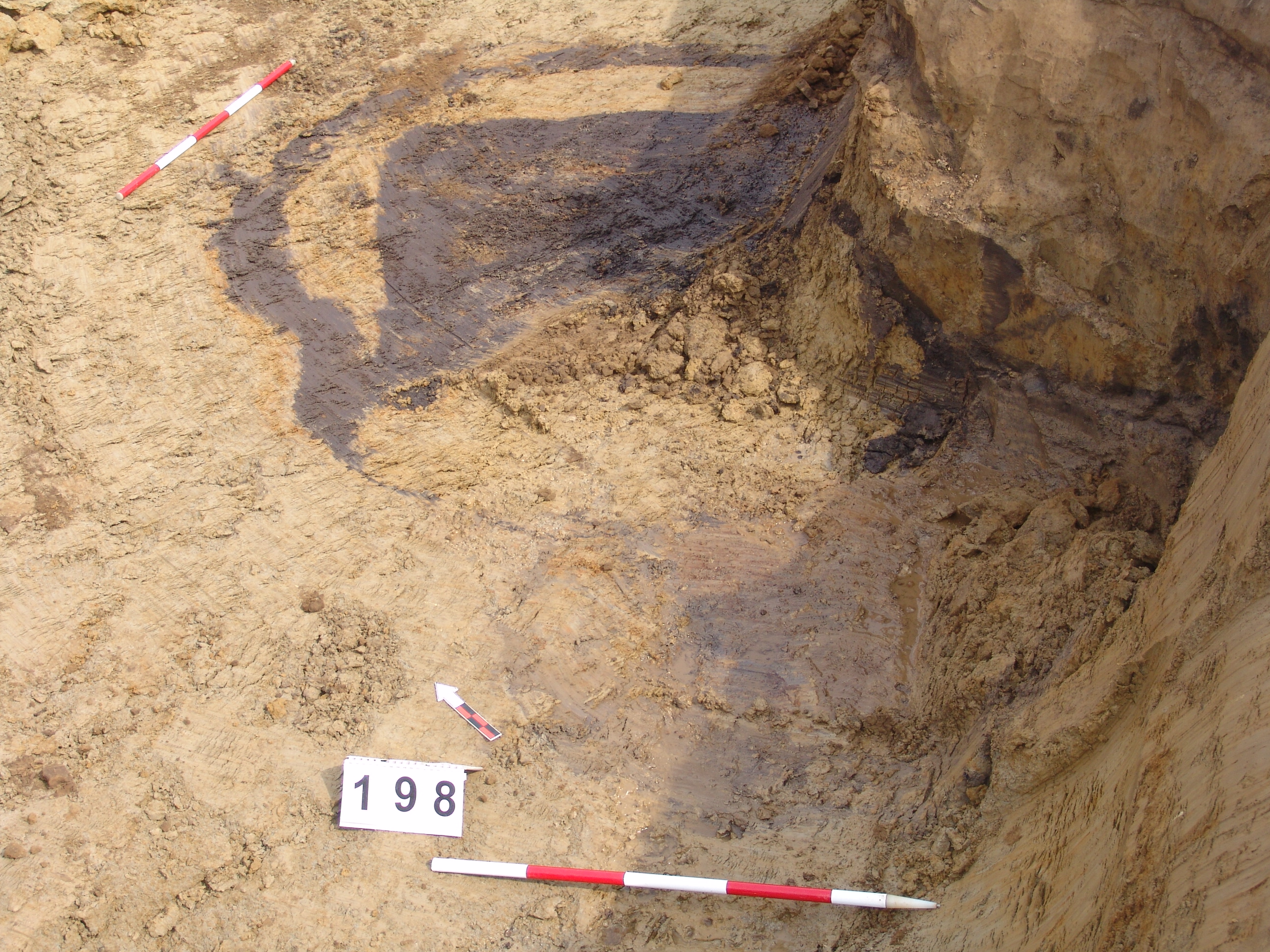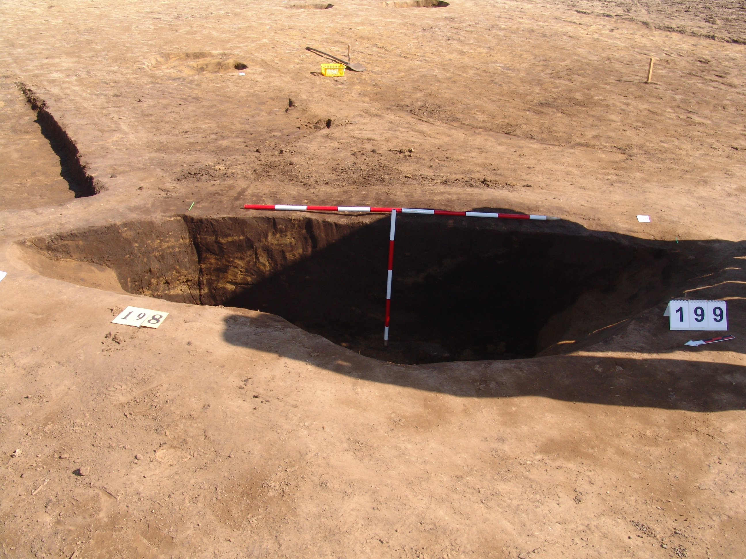 Betöltése: sárga- fekete réteges, kevert, 55 cm mélységű. É-ról egy padkával indul, mely meredeken befelé lejt. 55 cm széles. A lejtős rész végénél 25 cm mély. Innen függőlegesen "indul", lefelé. A D-i folt függőlegesnek tűnik, itt vágja a 199. objektumot.