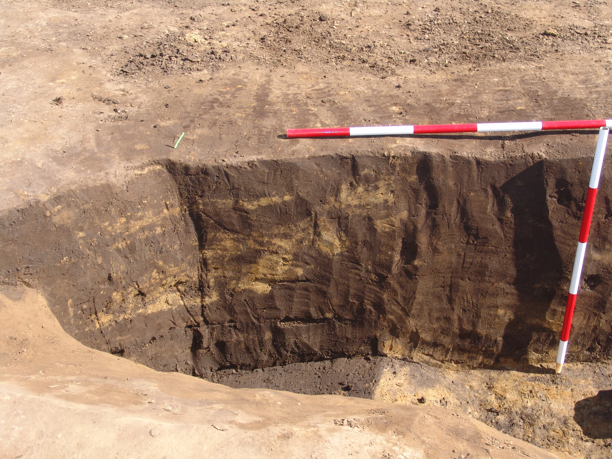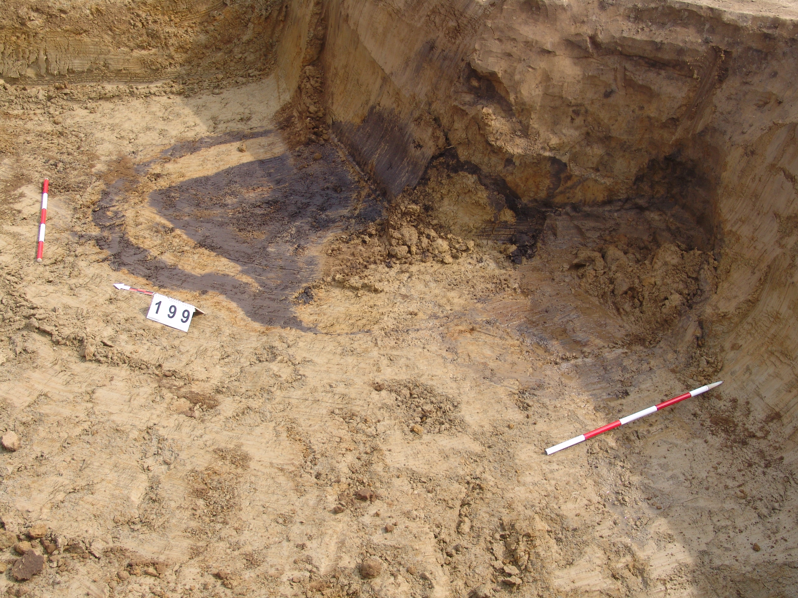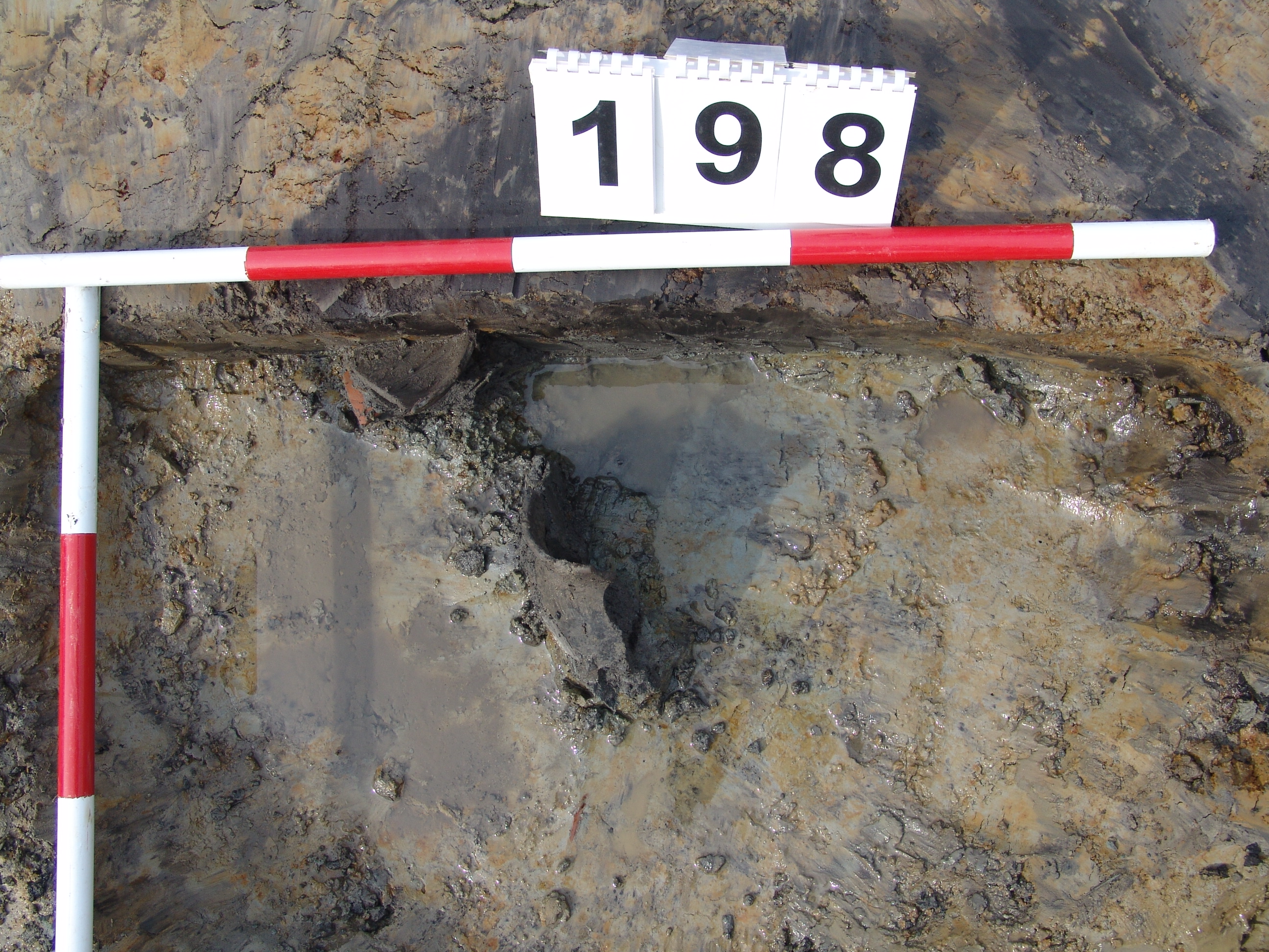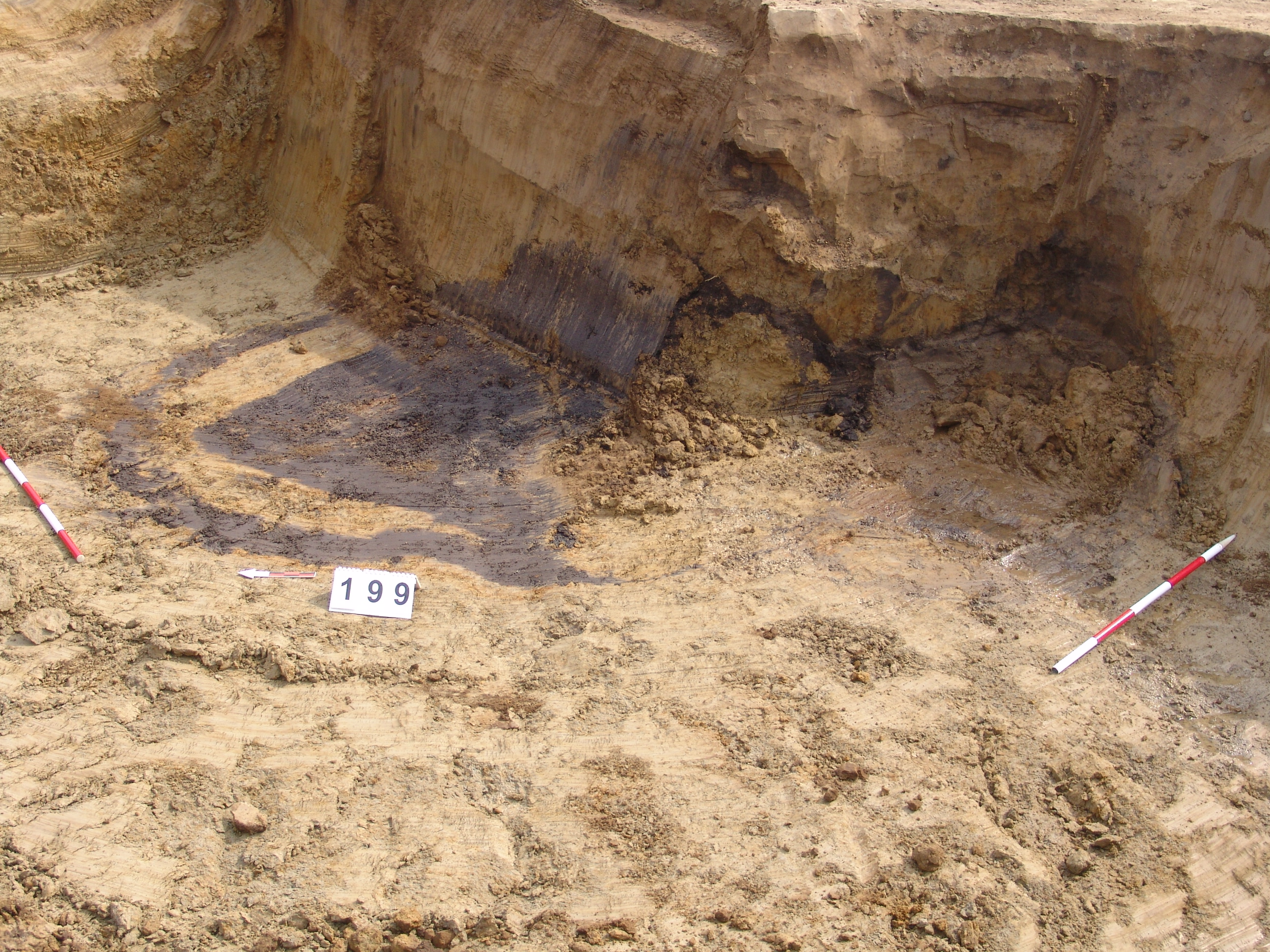 A kb. 270- 280 cm mélyen készült felszíni fotókon jól látszik, hogy a 199. objektum felől ez a sárga bedöngölt rész "megcsúszott" a kútakna irányában. A kútakna egynemű betöltése a legalján sárga és iszapos réteg váltakozásába "ment át".