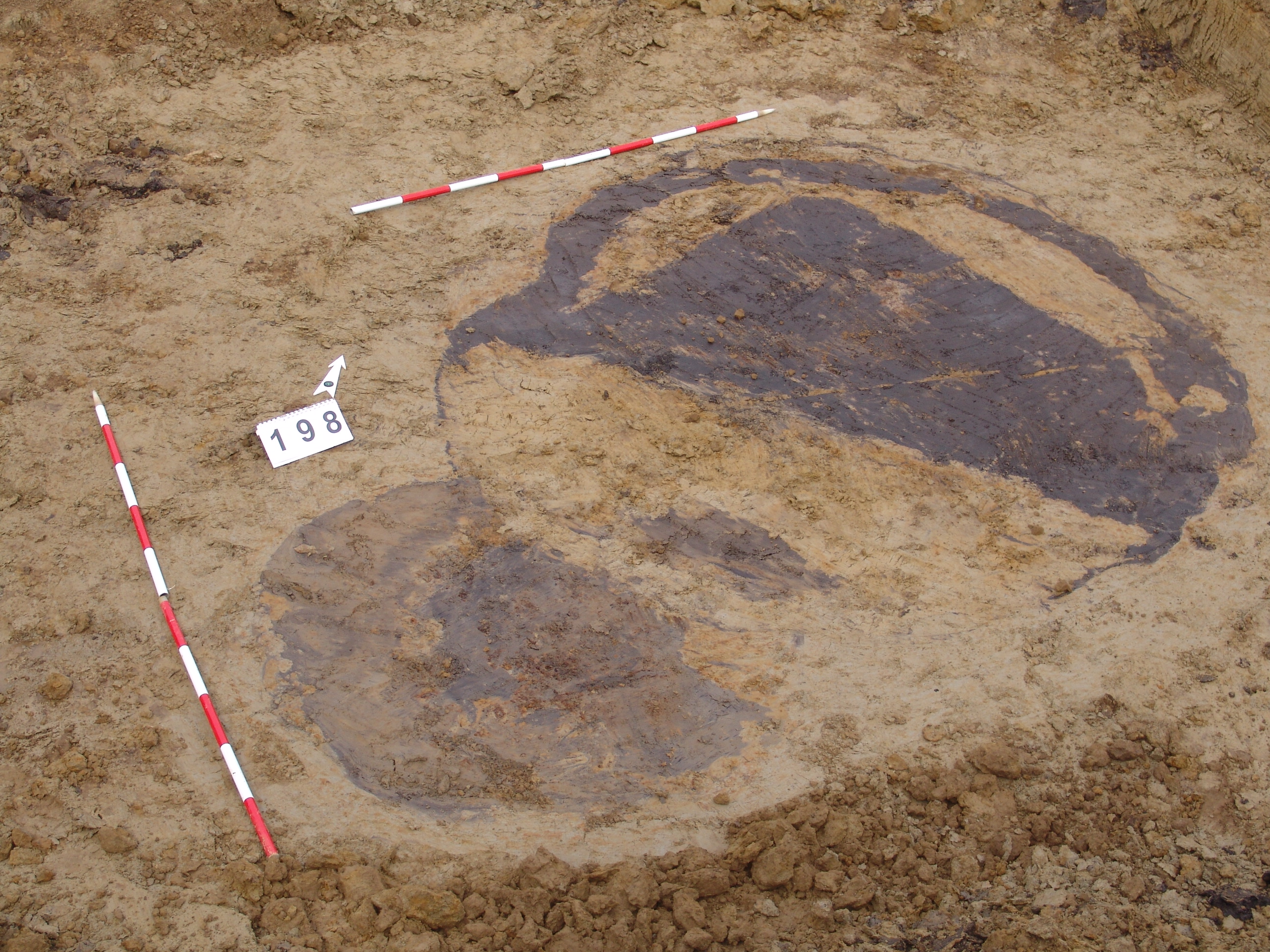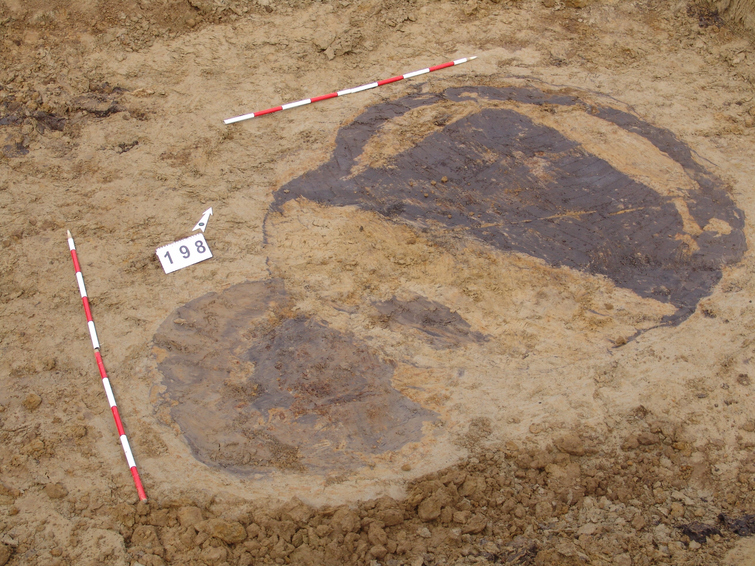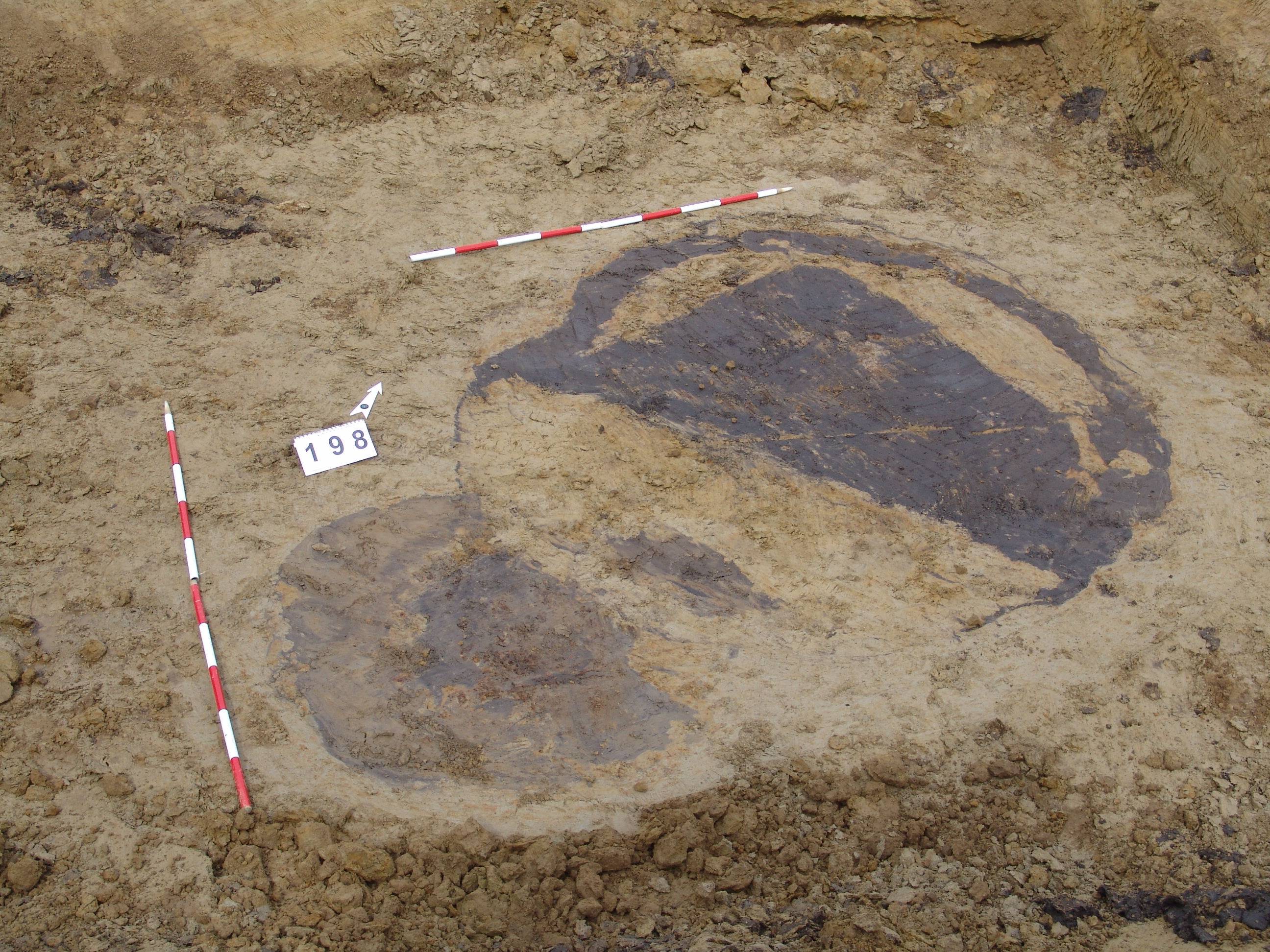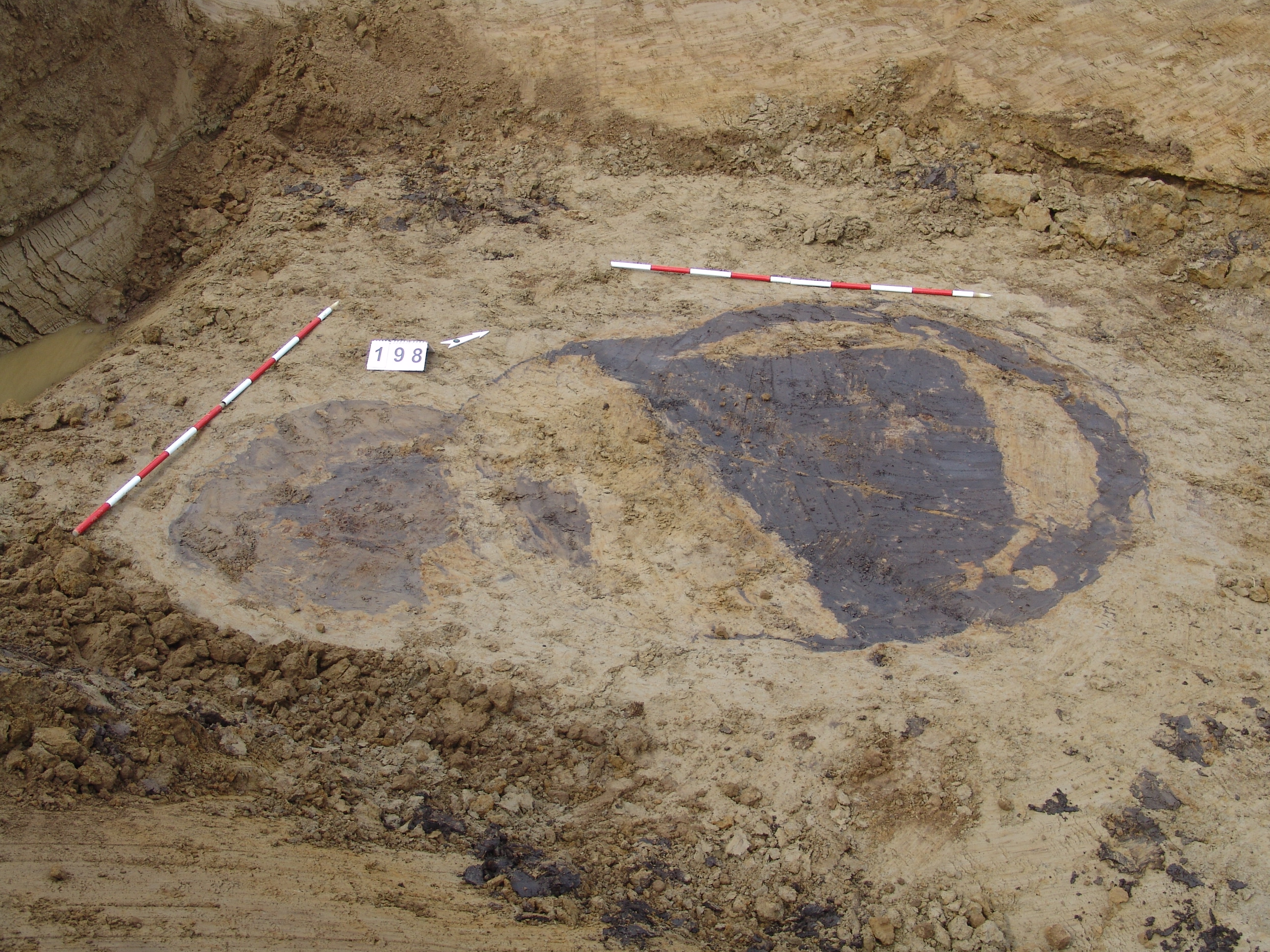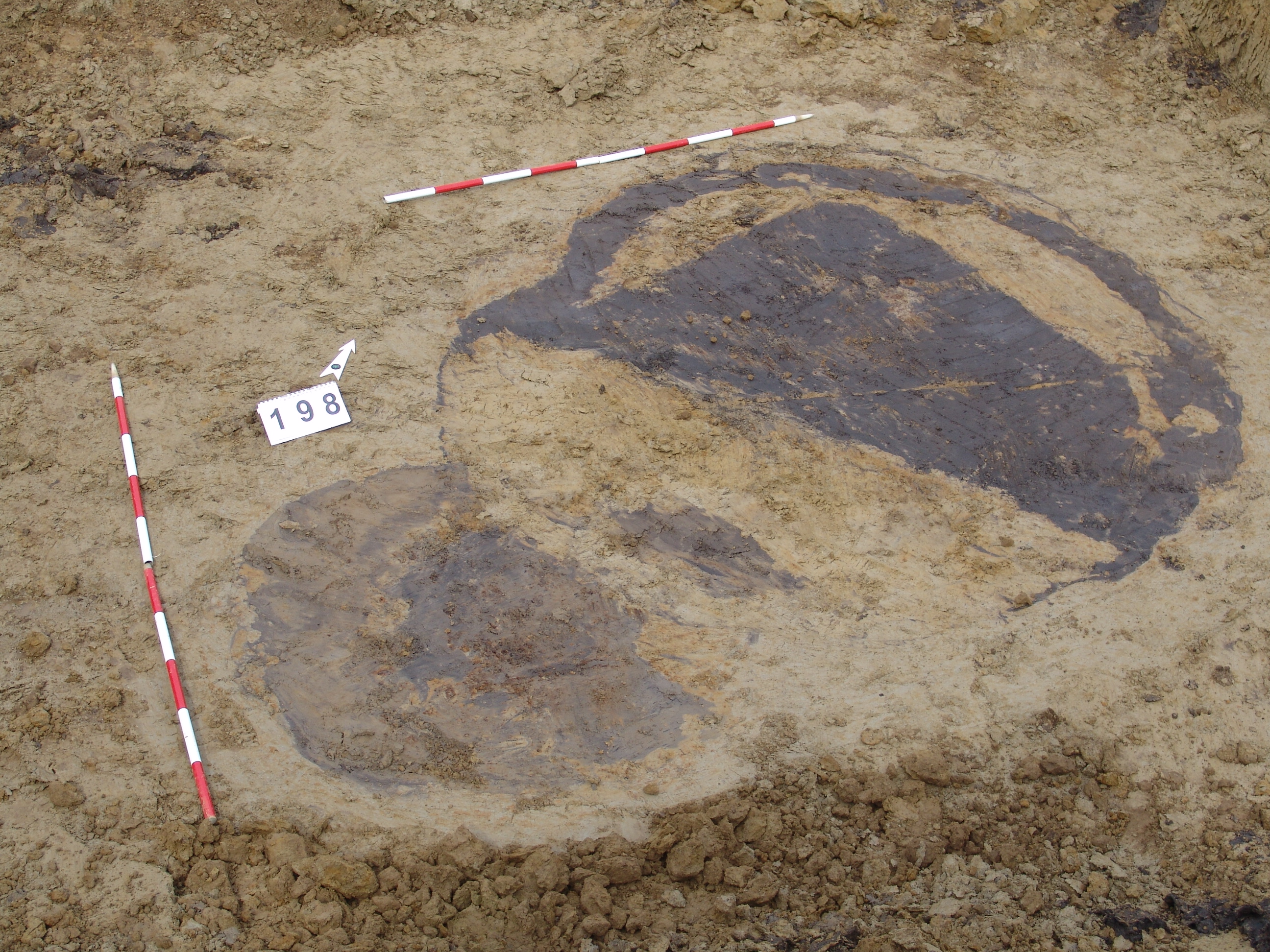 Kettős nagy objektum a terület mély részén, a 3297. karótól DNy-ra. A MNM NÖK elkezdte ásni. Az ÉK-i fekete betöltésű, kerek folt a 199. objektum felett jelentkezett. Csak egy stratszámot (17) találtunk.