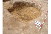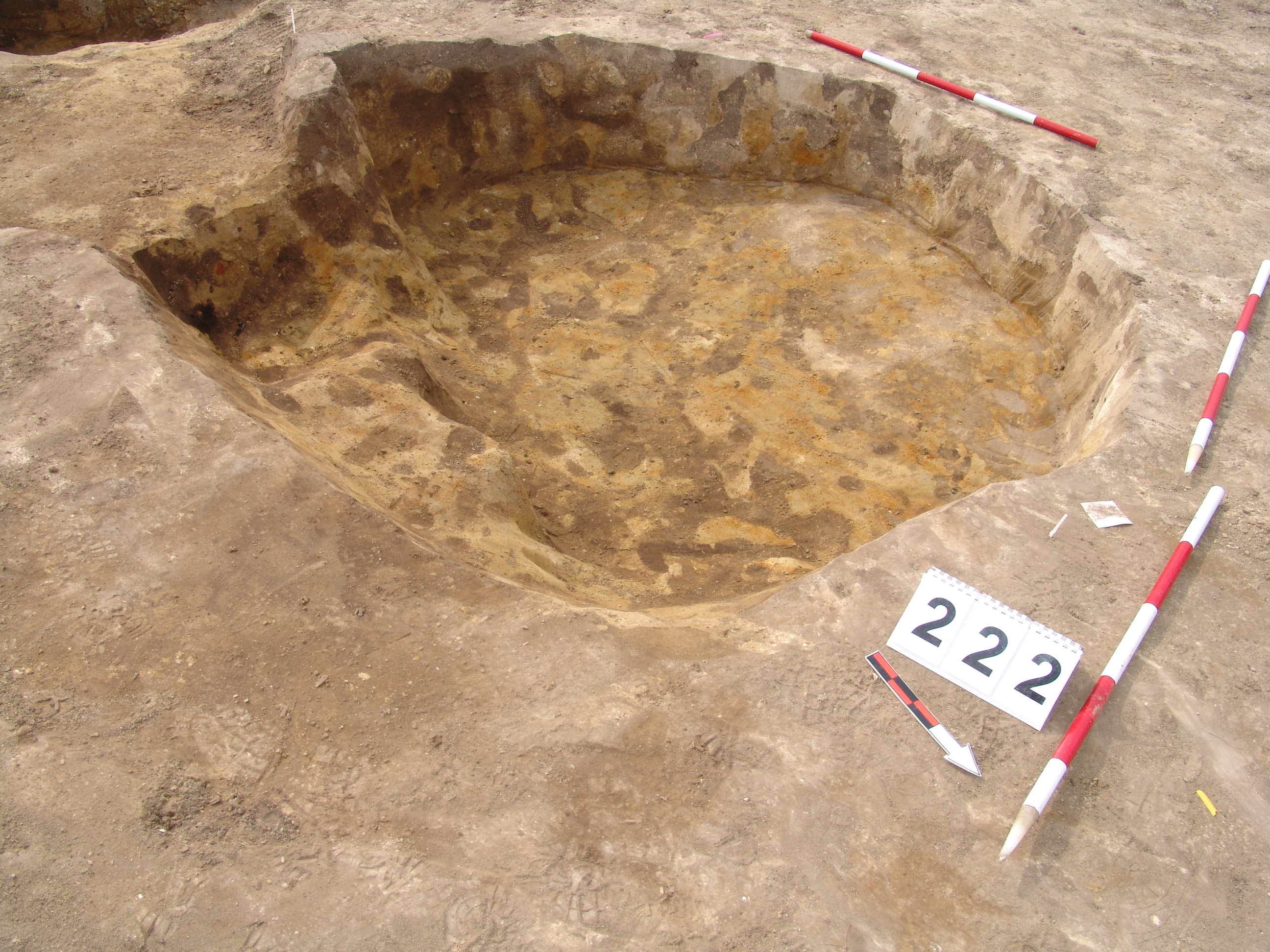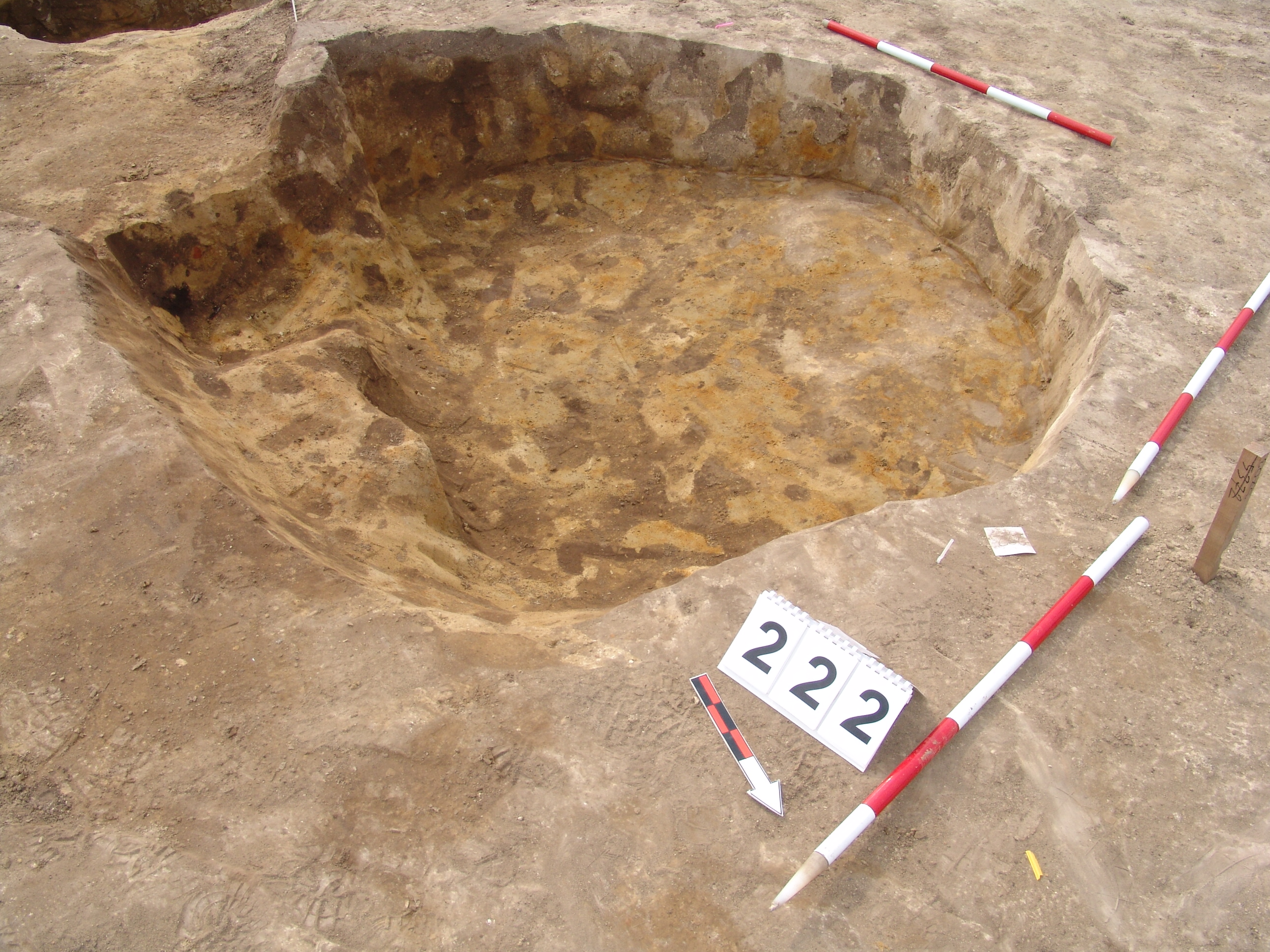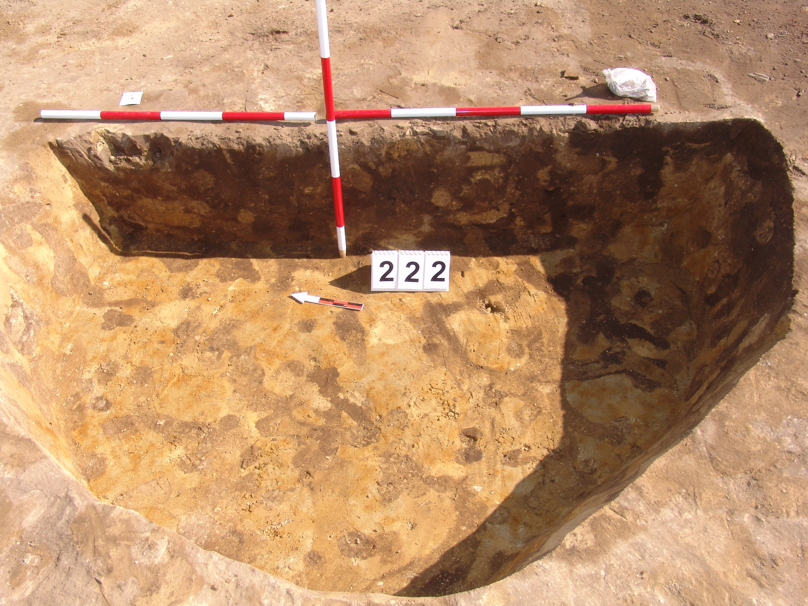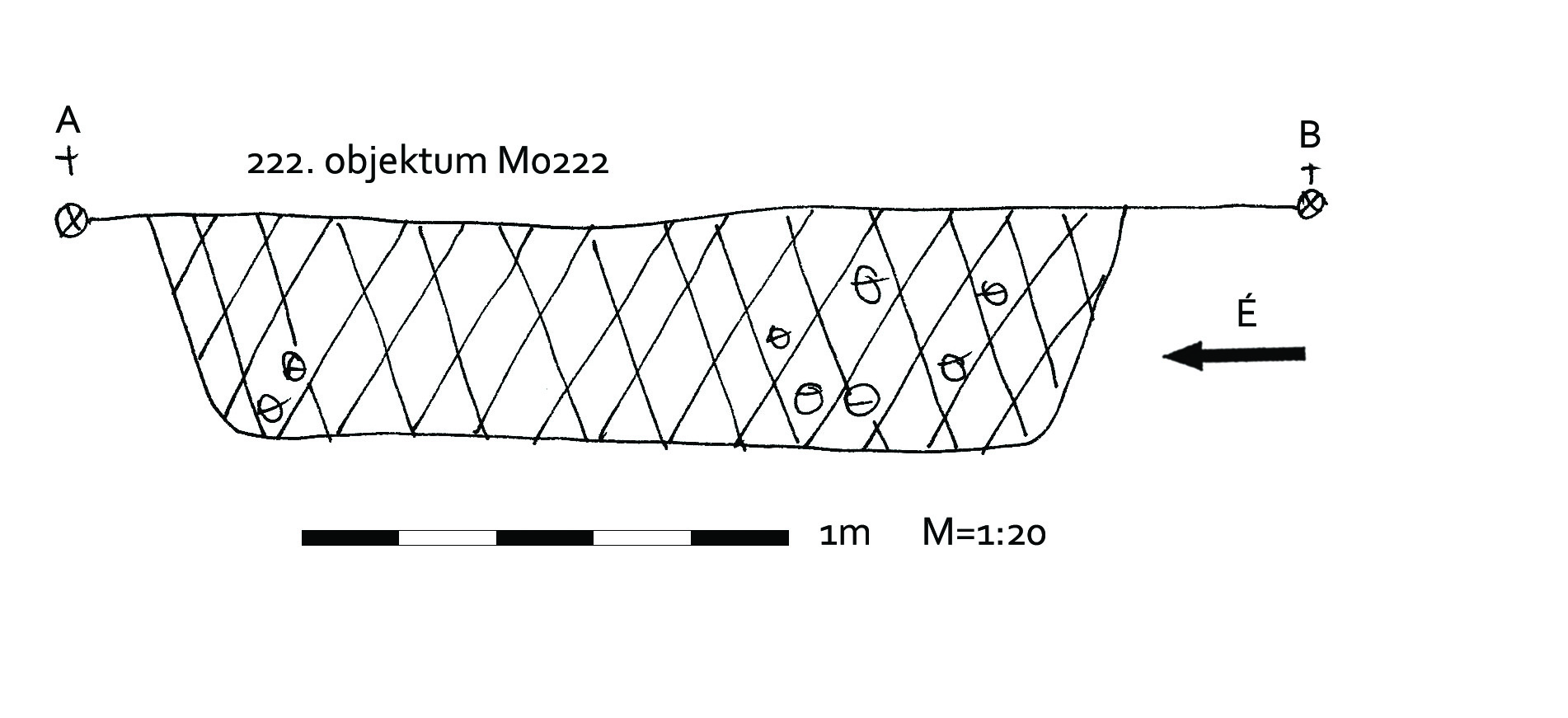 A 220-221. kemence-gödör együttestől É-Ny, a kerek jól rajzolódó folttal jelentkező objektum. Fala enyhén meredek, alja egyenes. D-re túlbontották.