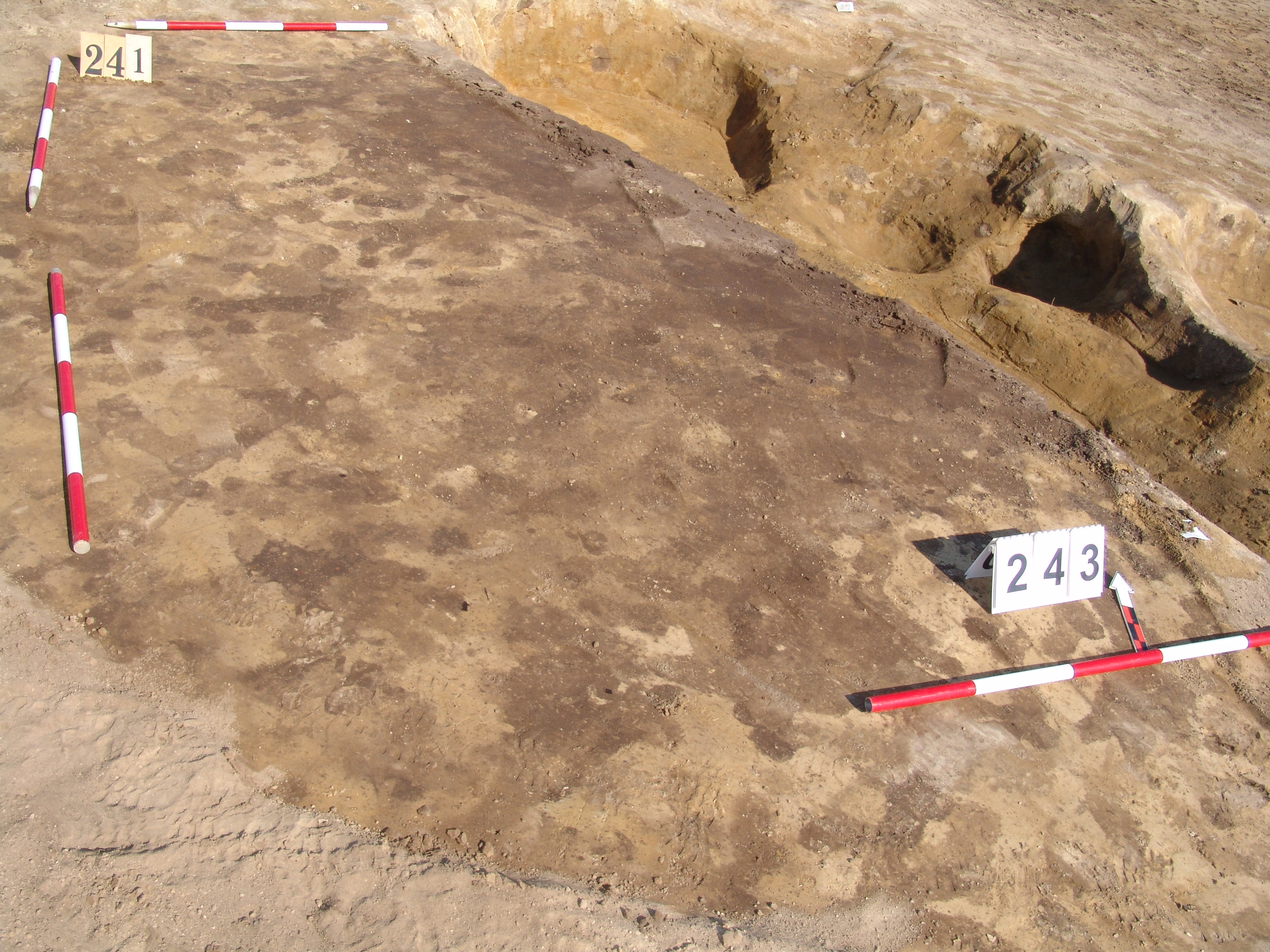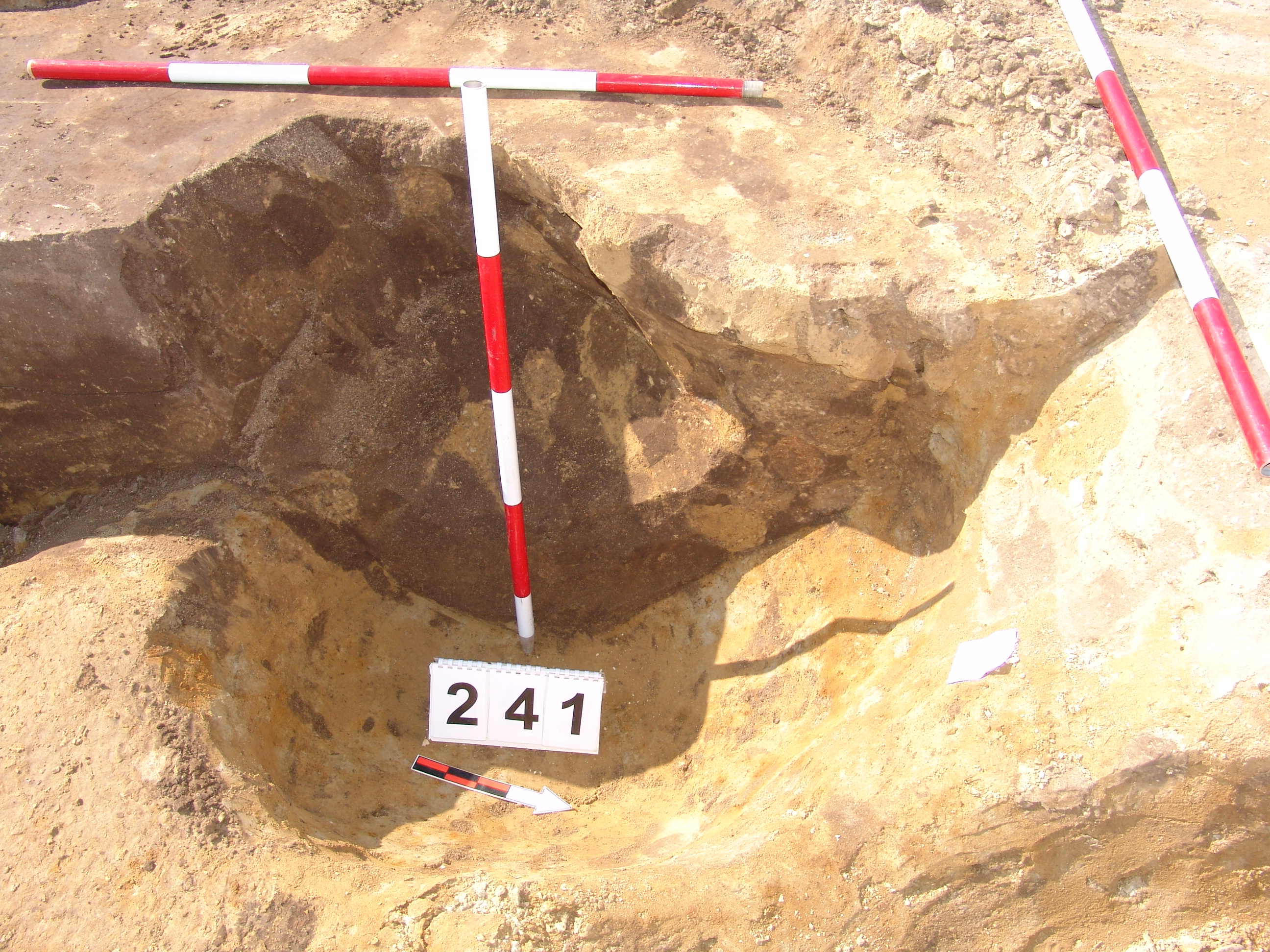 Betöltése: alul egynemű barnásszürke "púpszerű" felett paticsrögös, sárga-szürke kevert. A 241. objektum ÉNy-i sarkában egy 15 cm vastag Ny-K-re 40 cm É-D-re 70 cm folton sárga tapasztásréteg látszott, amelyről nem tudtuk eldönteni, hova tartozik.