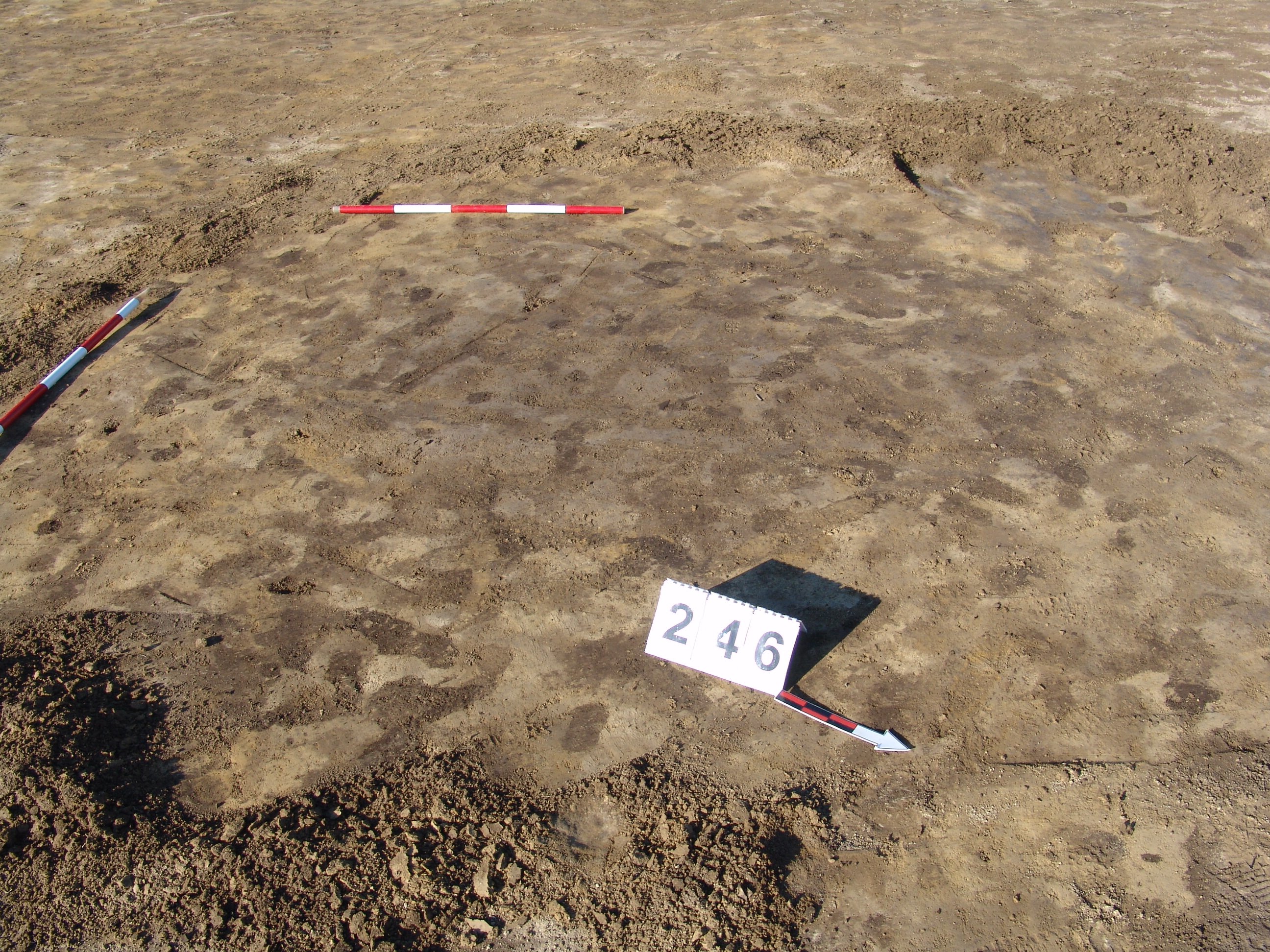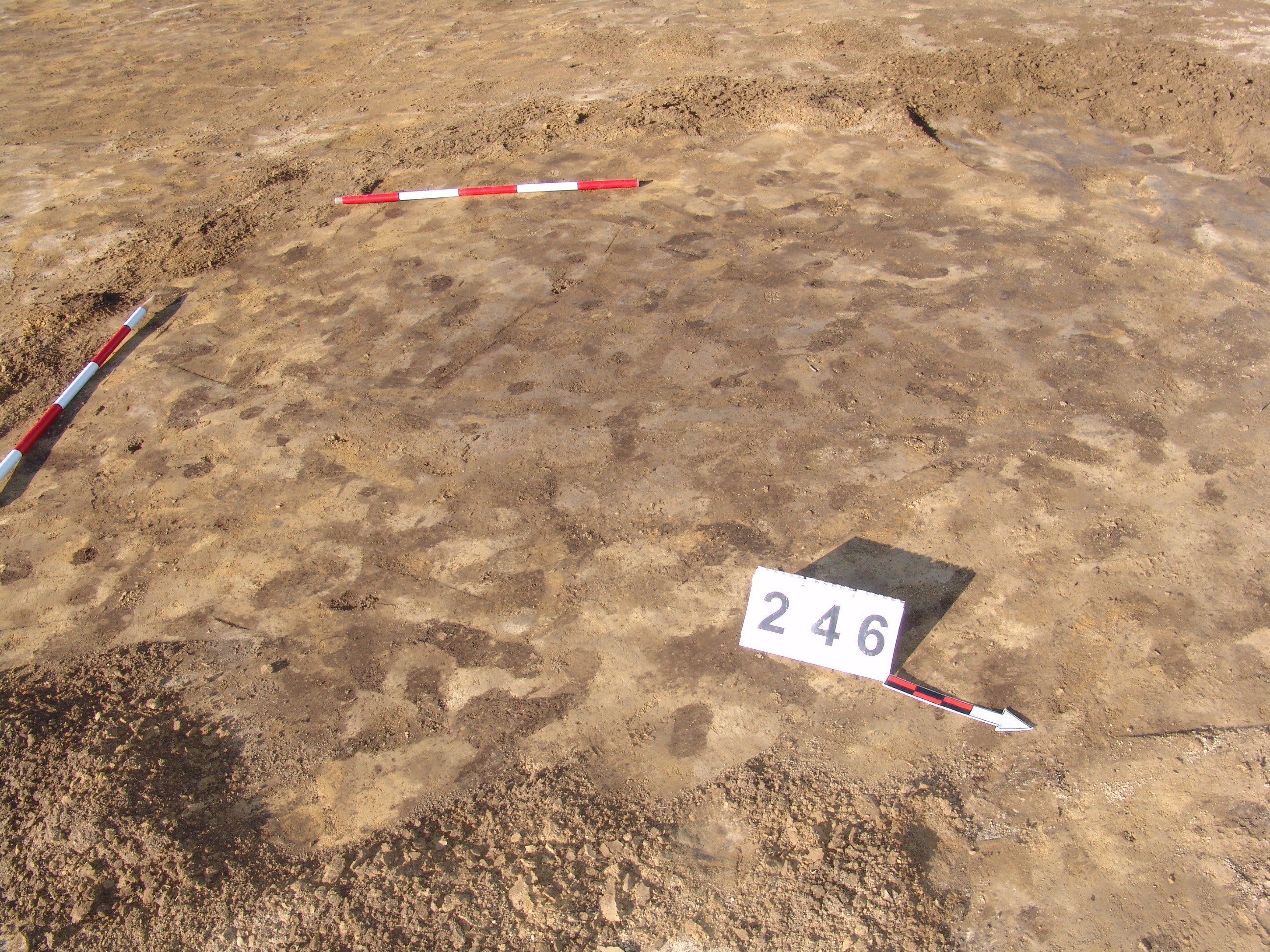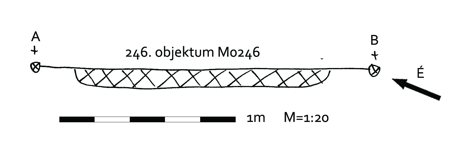 A 3487 karótól Ny-ra ovális szürke folt jelentkezett. Bontásnál jóval kisebb lett, és csak az alja egy gödörnek. Betöltése „maszatos” sötétbarna. Nem biztos, hogy objektum.