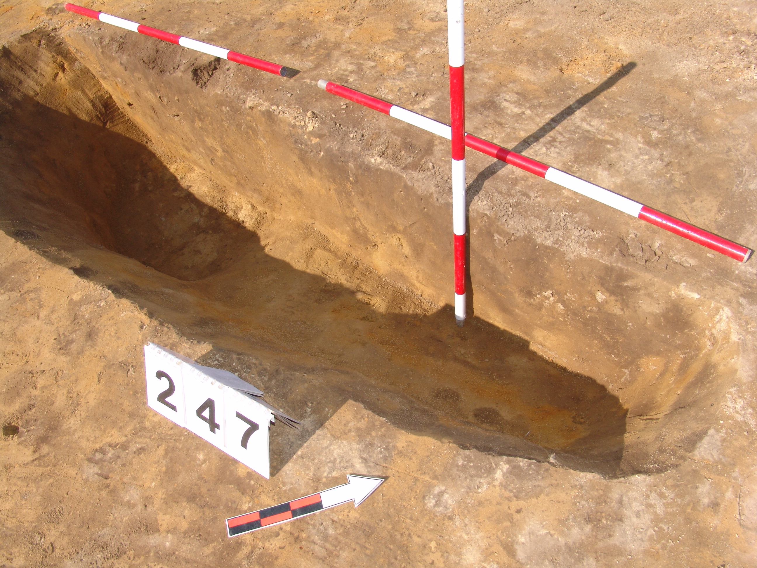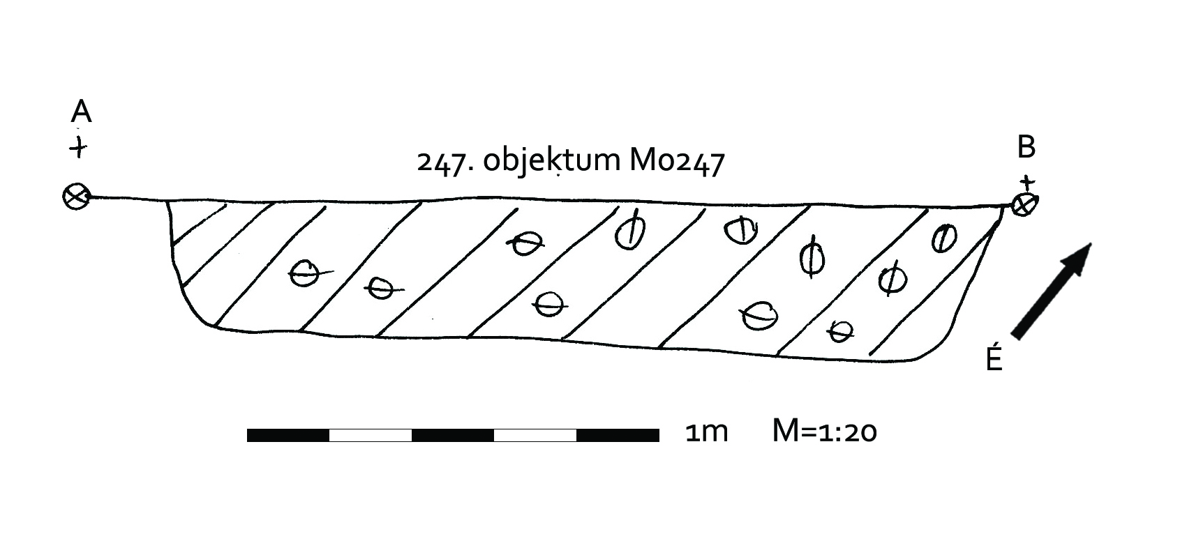 Ny-K-i téglalap alakú, kissé elúszó folttal jelentkezett a 3784. karótól K-re. Fala D-ről igen erősen meredek. A Ny-i oldalon csaknem függőleges, a K-in is. Betöltése sötétbarna, sárga-szürke szemcsés, kissé „maszatos”