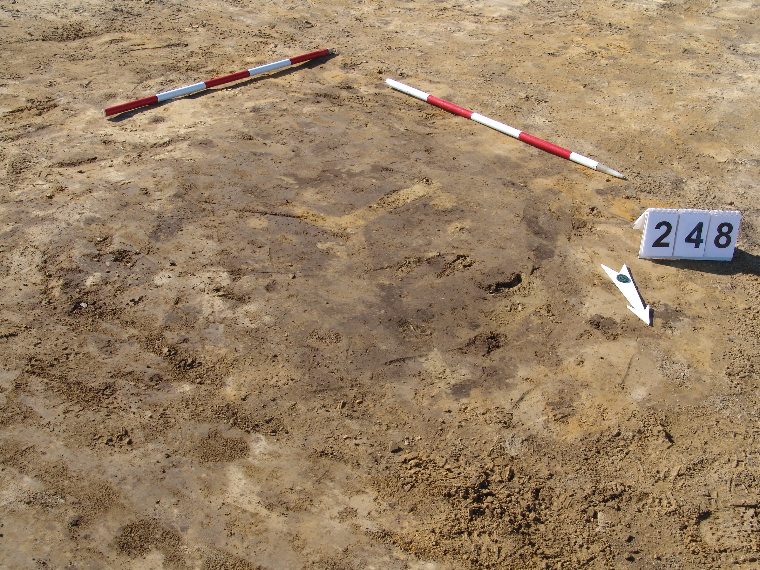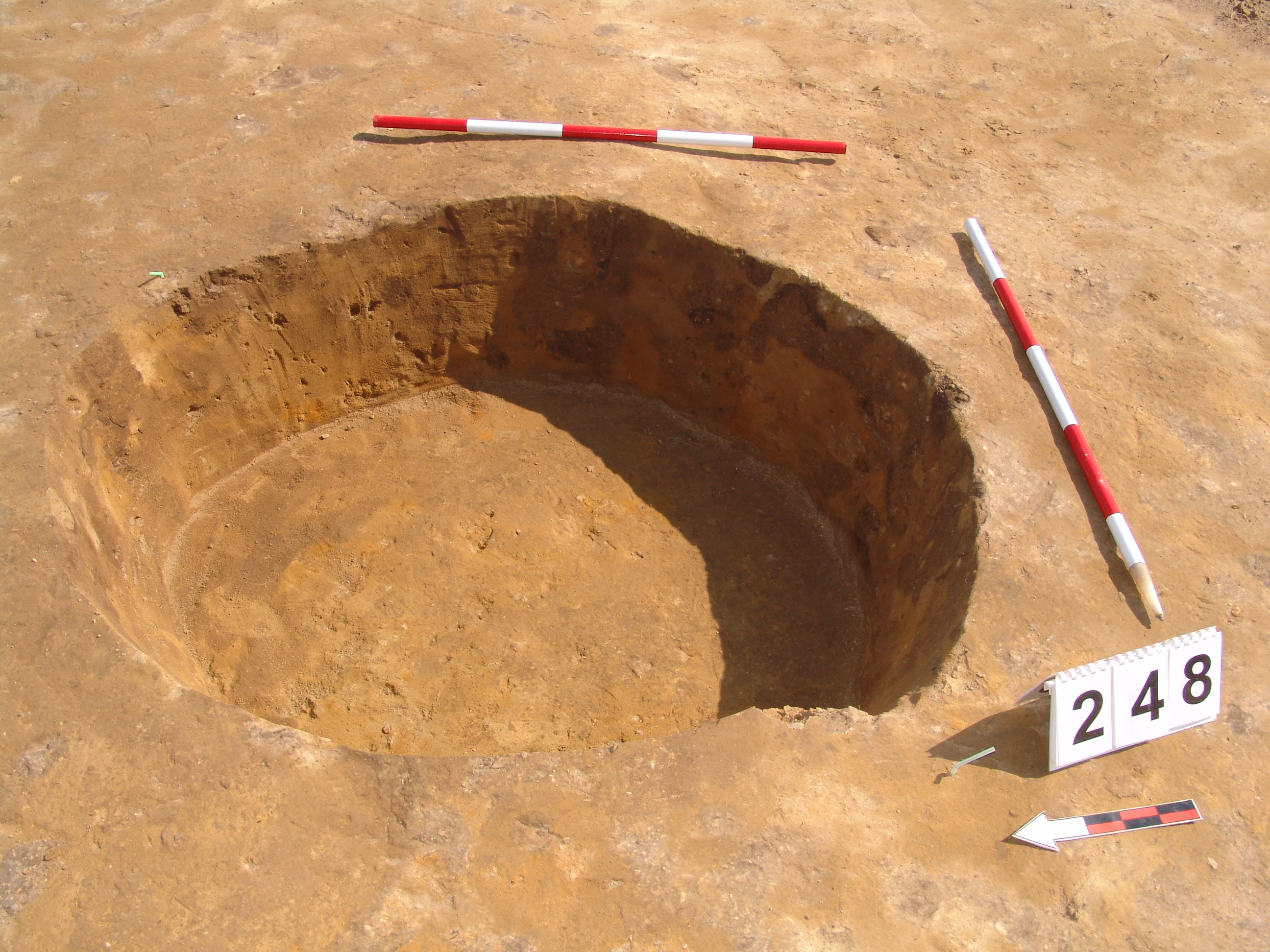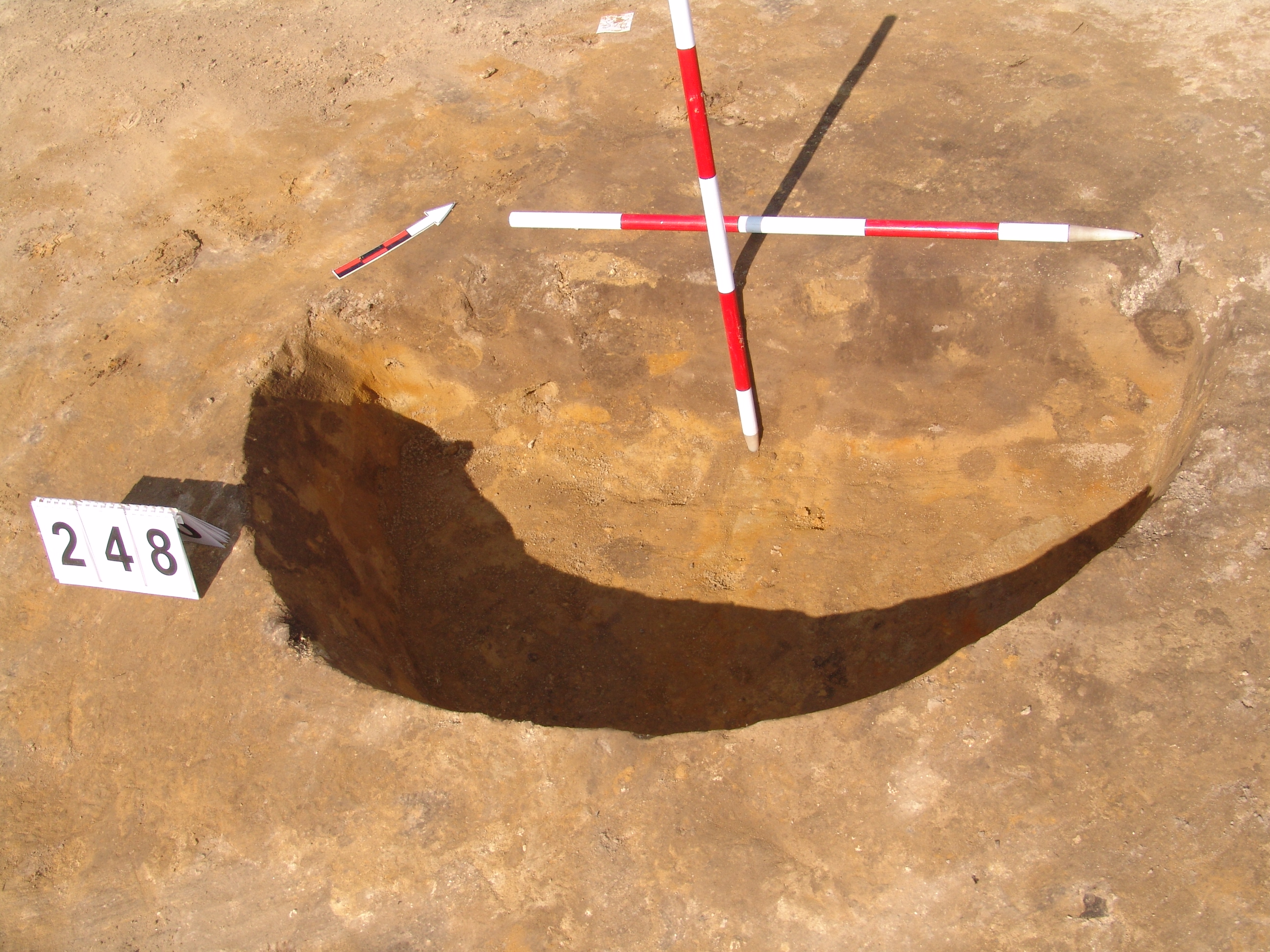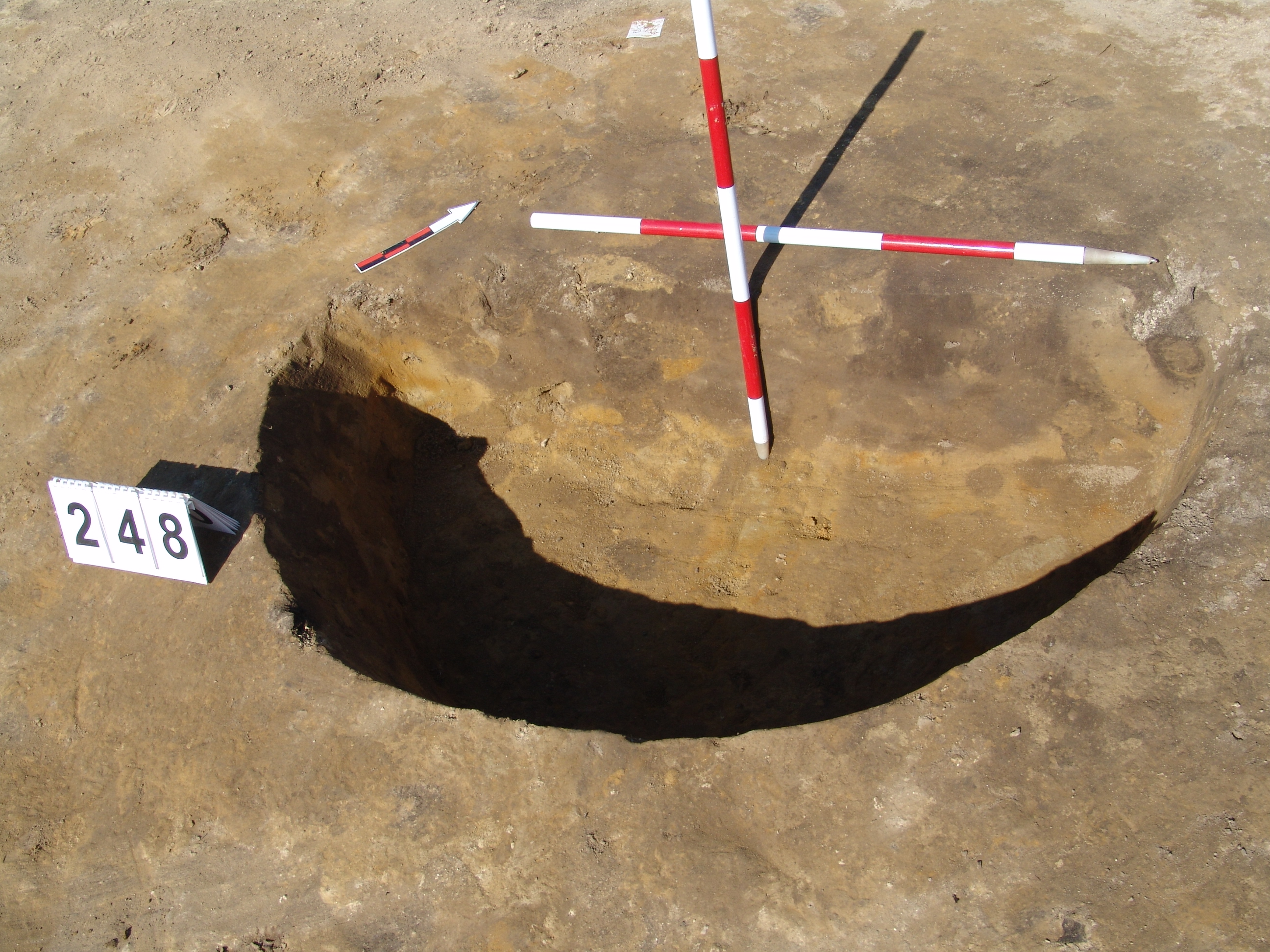 A 247.obj.-tól DNy-ra kerek folttal jelentkezett. Méhkas alakú, egyenes aljú, kör alaprajzú, kissé maszatos, sötét barnásszürke betöltésű gödör.