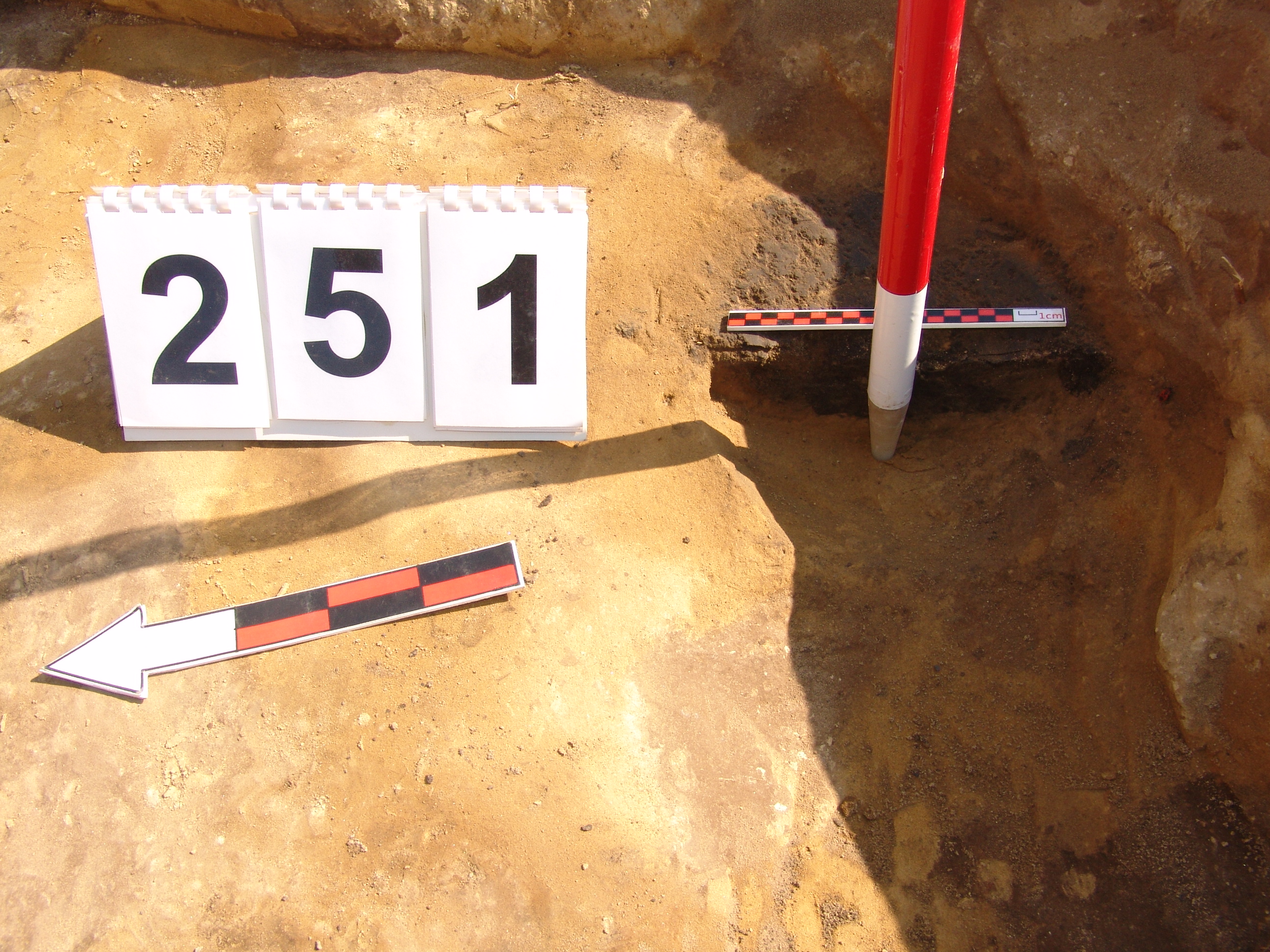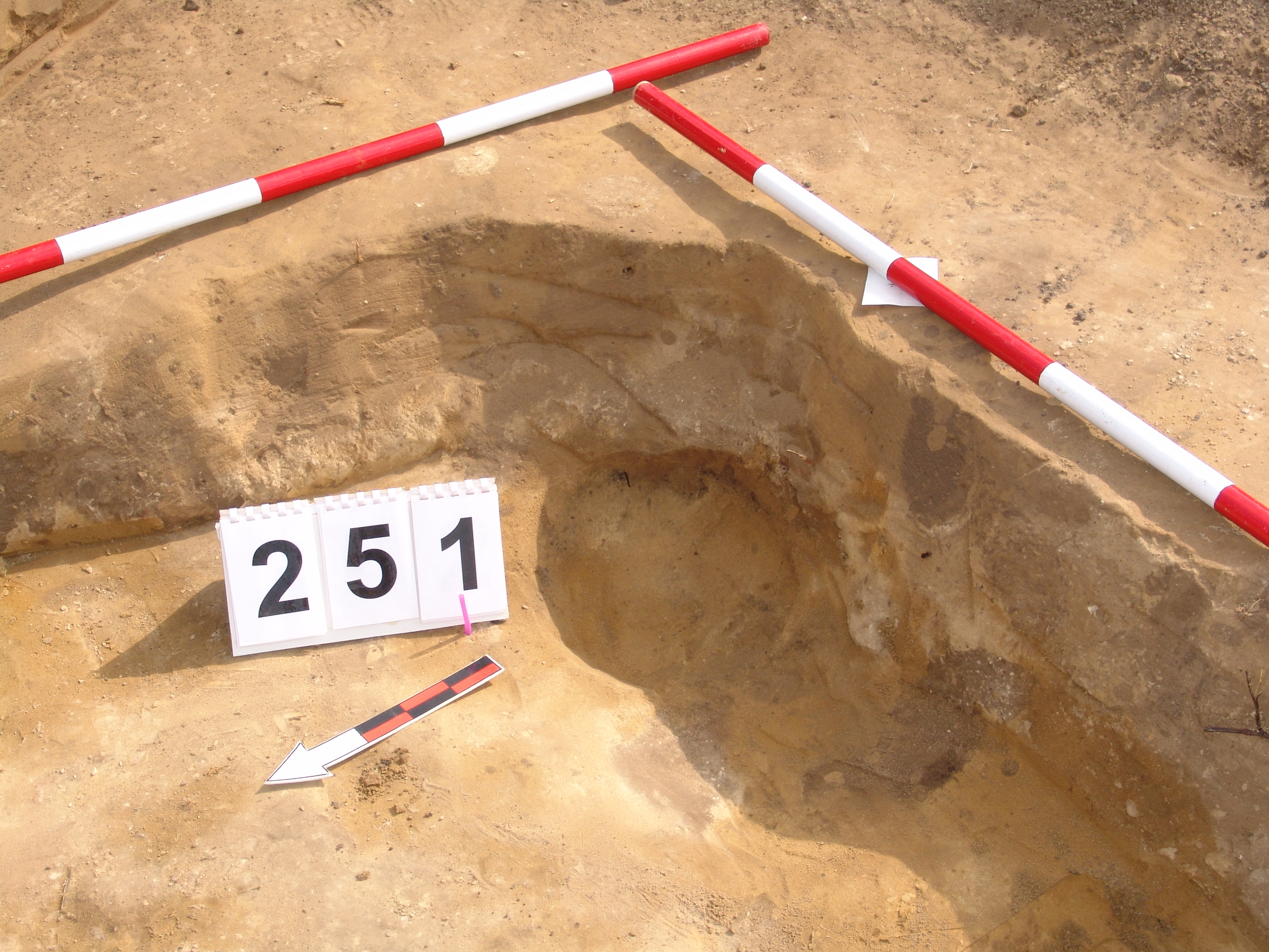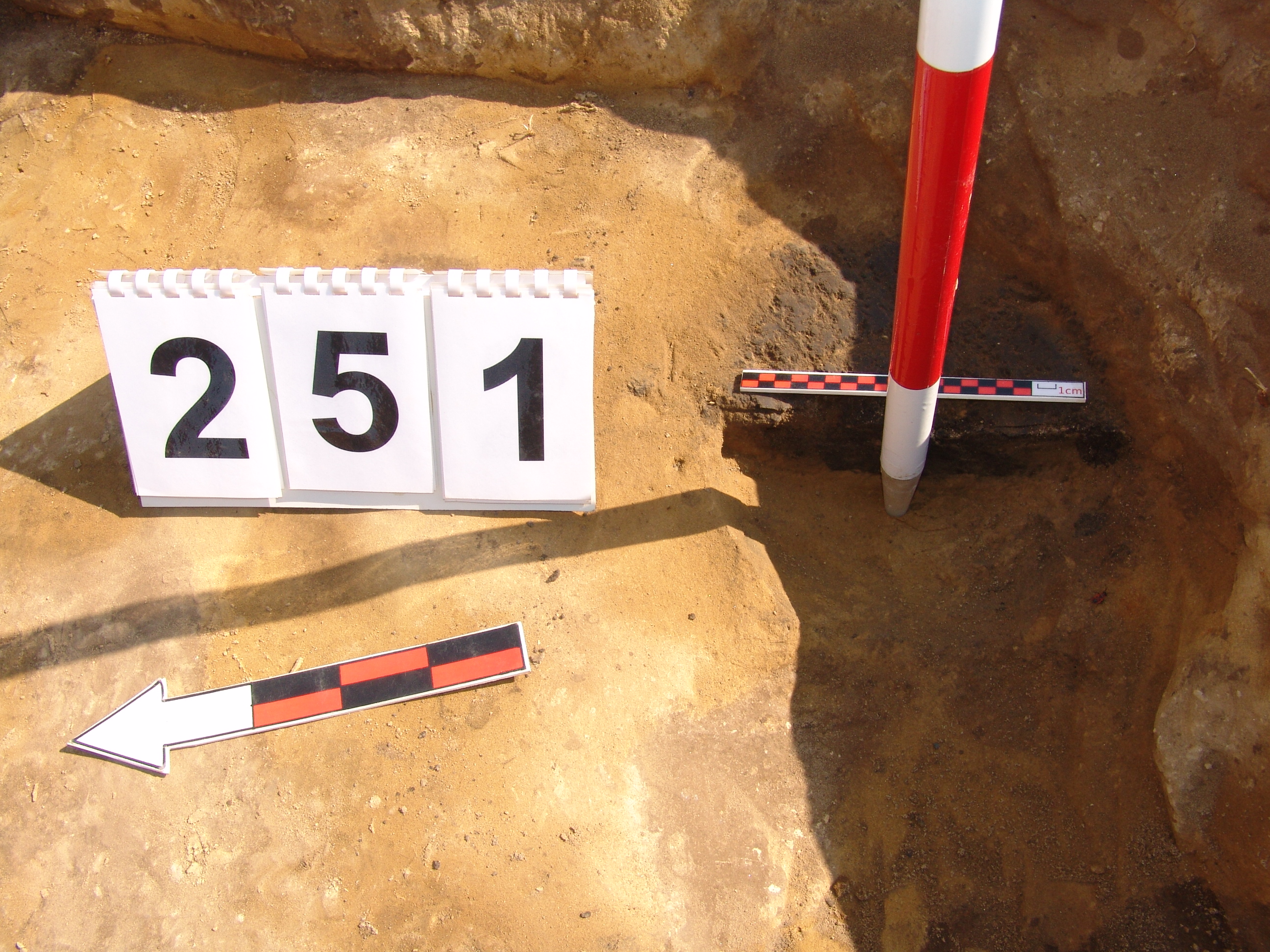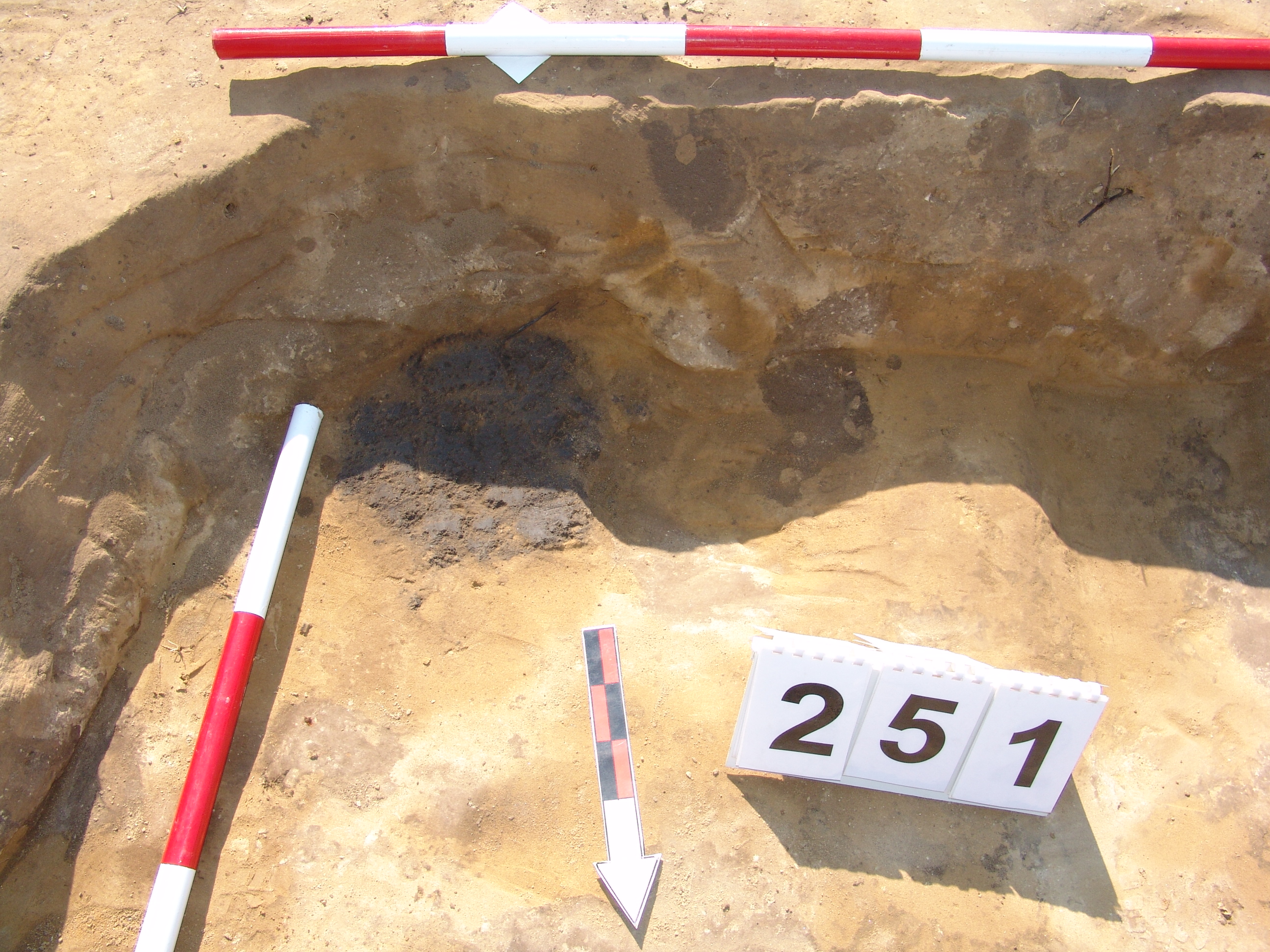 A 210. ház DK-i sarkában szabályos kerek folttal jelentkező objektum. Tetején szürke, mállékony „maszatos” valami-talán patics van. Az aljáig ez a kemény szürke valami van /patics vagy döngölt szürke/.