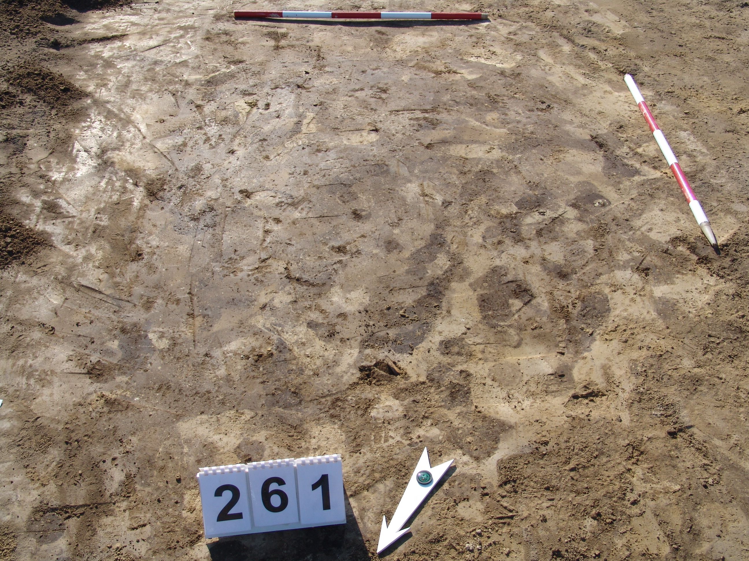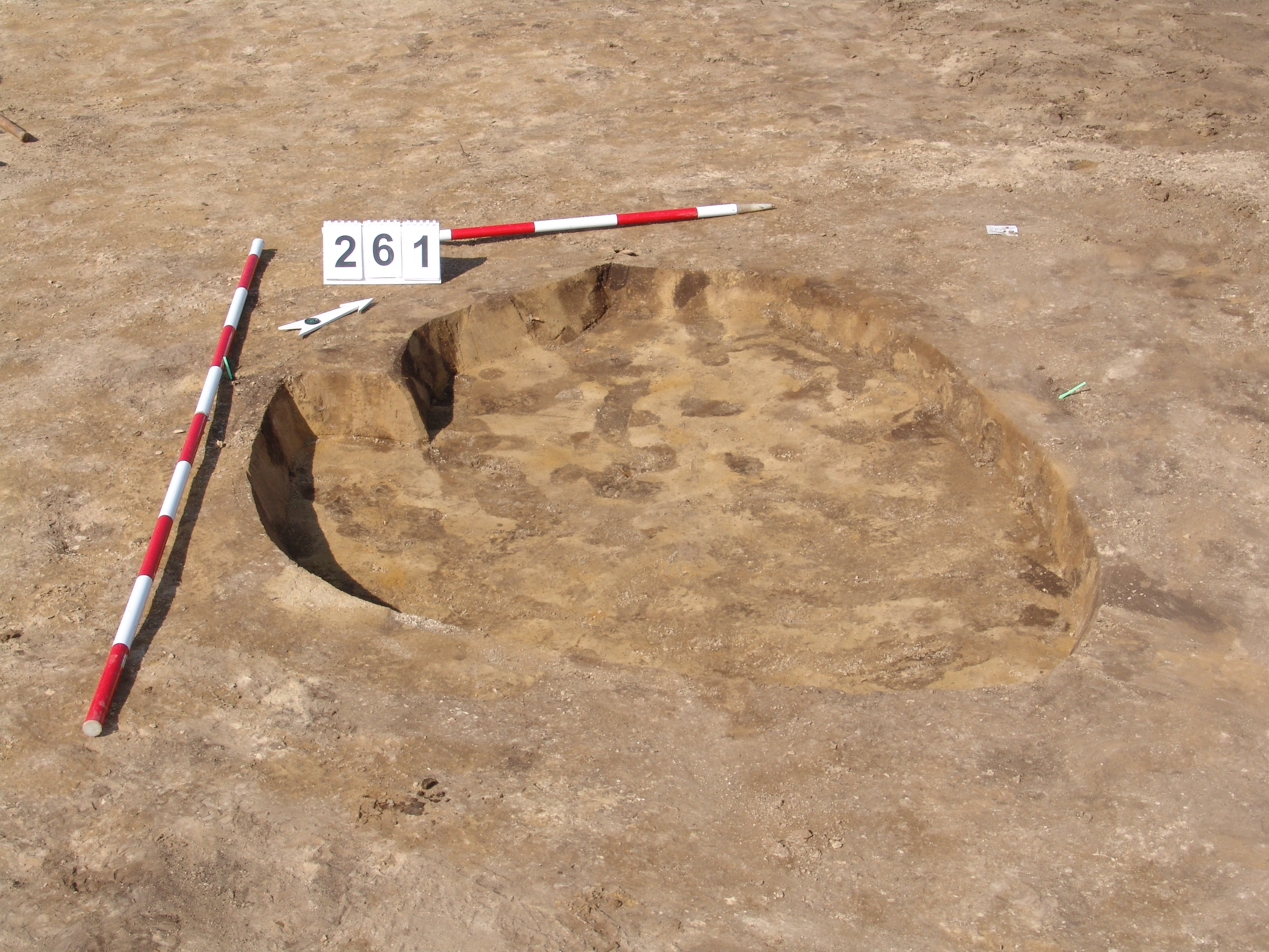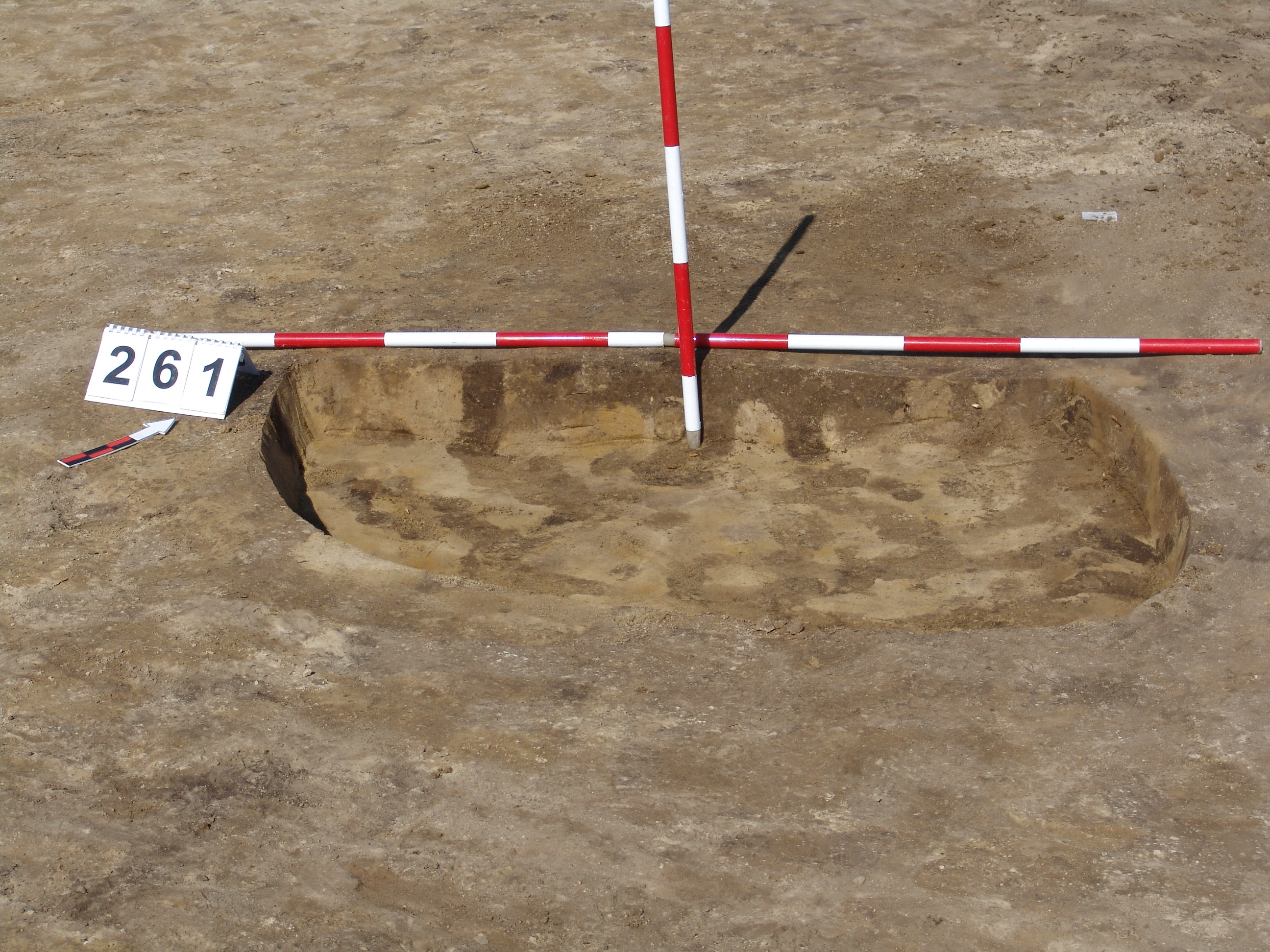 A 259-től KDK-re kicsit maszatosabb folttal jelentkező gödör. Ezen keresztül ment, valami gép. A K-i szélén rosszul látszik. Ny-i oldalát túlbontottuk