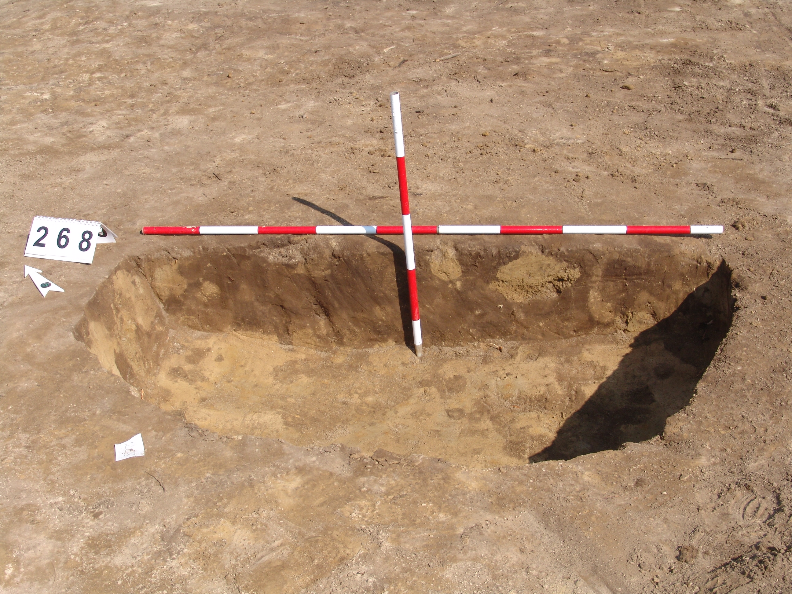 A 267-től D-re, közvetlen mellette kerek, jól rajzolódó folttal jelentkezett. Méhkas alakú, kör alaprajzú, egyenes aljú gödör.