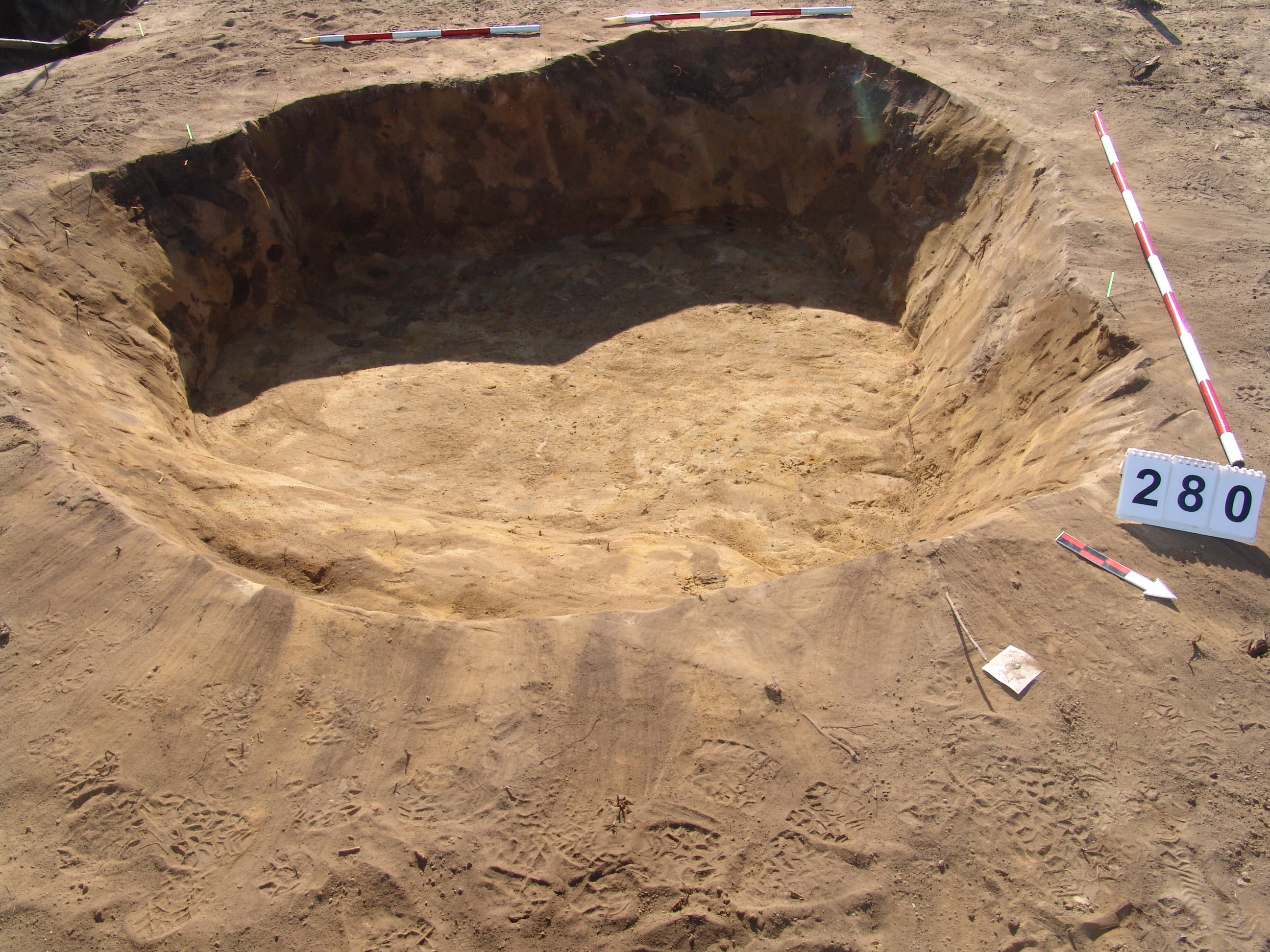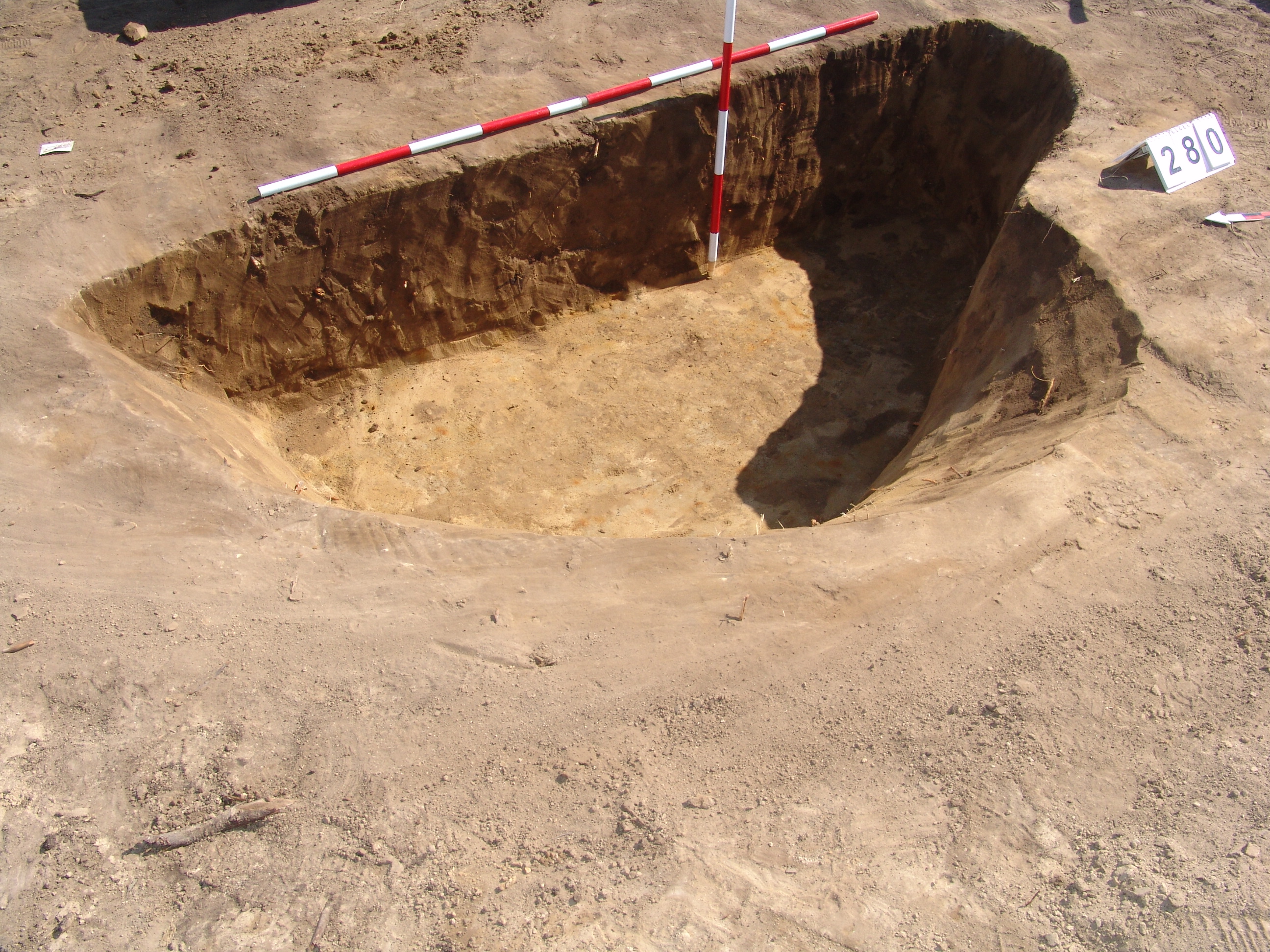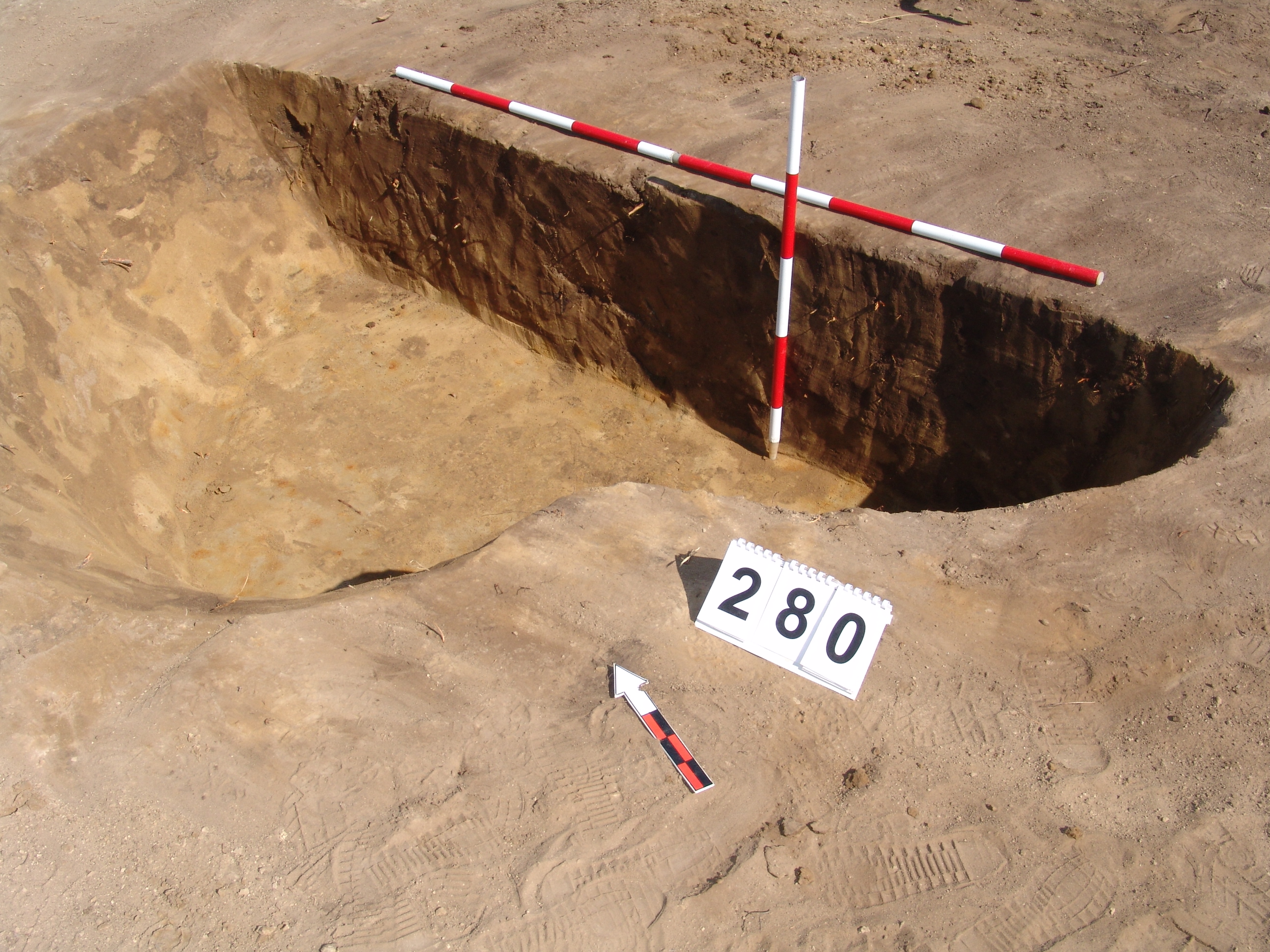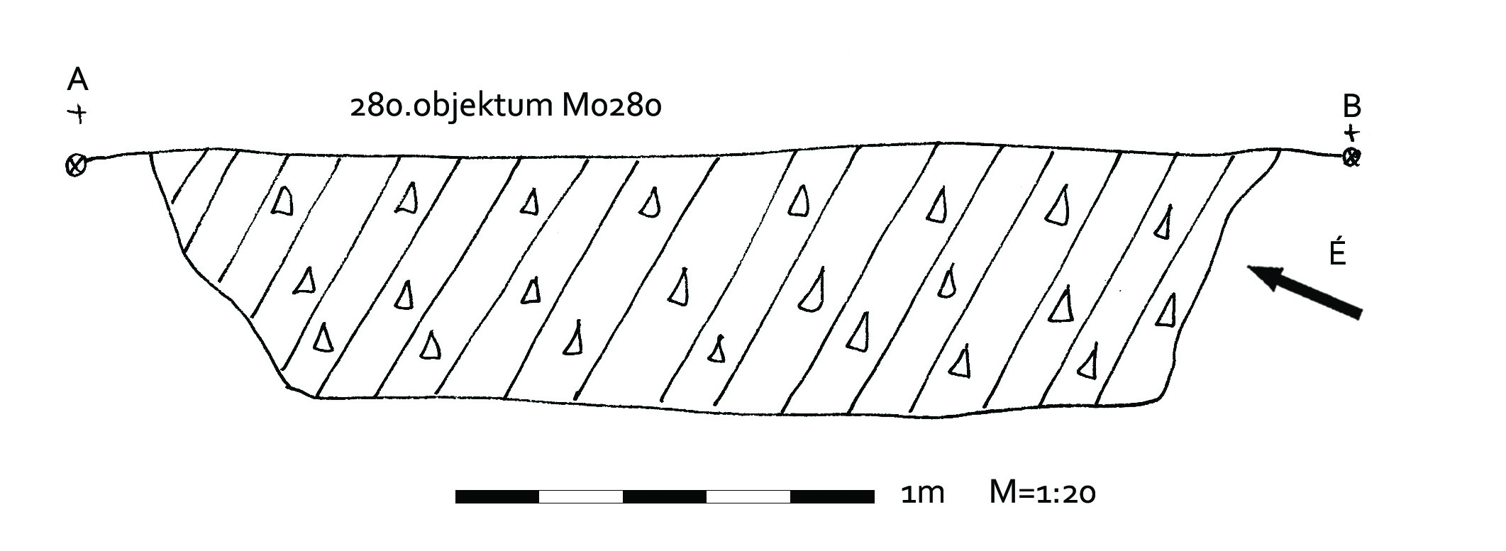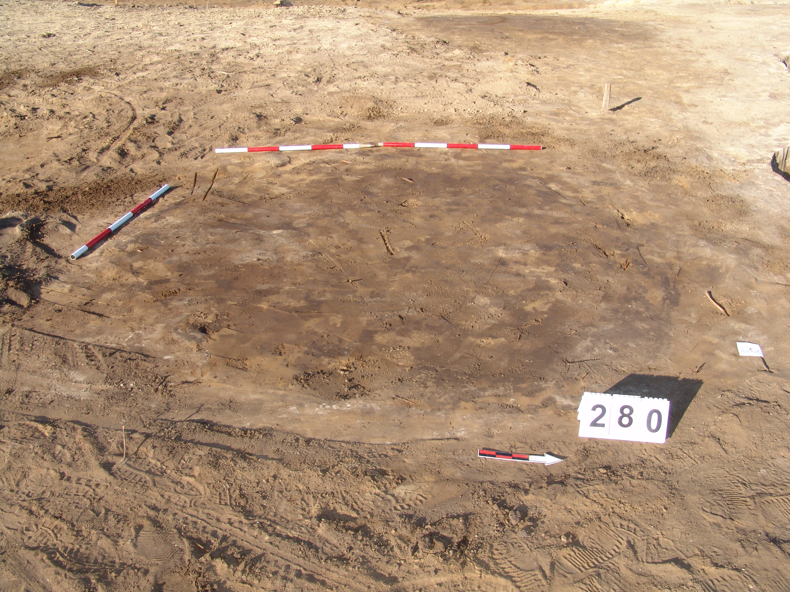 Sötétbarna színű ovális foltként jelentkezett. A 286. objektumtól Déli irányban 2 méterre.