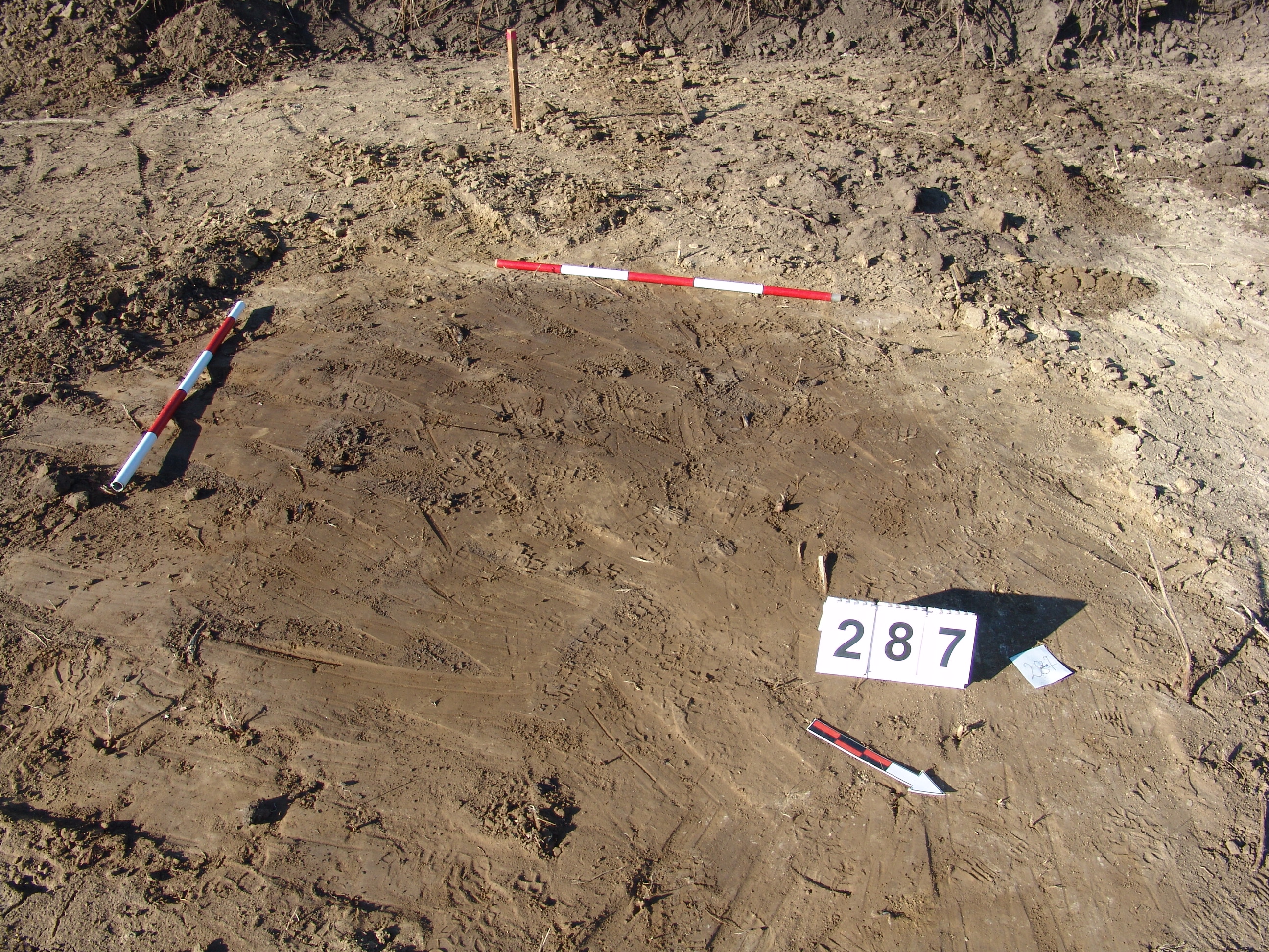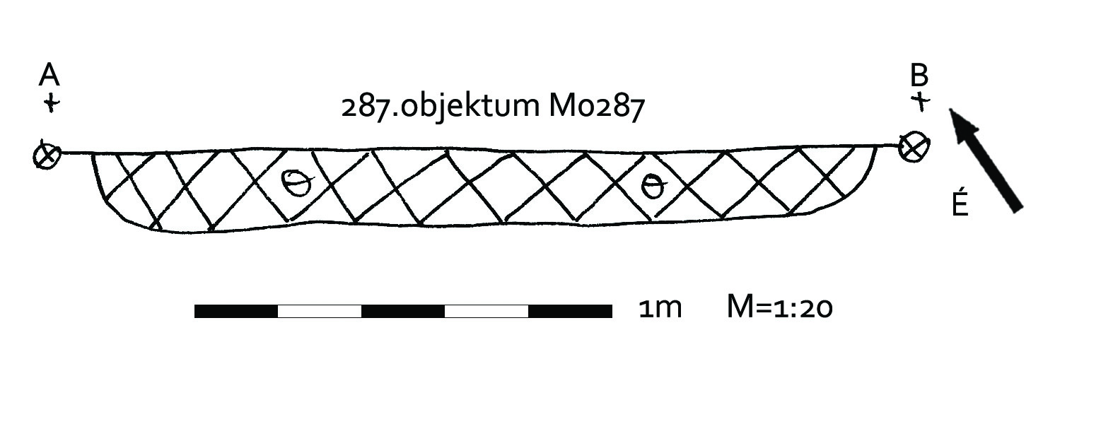 A 286. objektumtól 6 méterre ovális alakú szürkésbarna foltként jelentkezett.