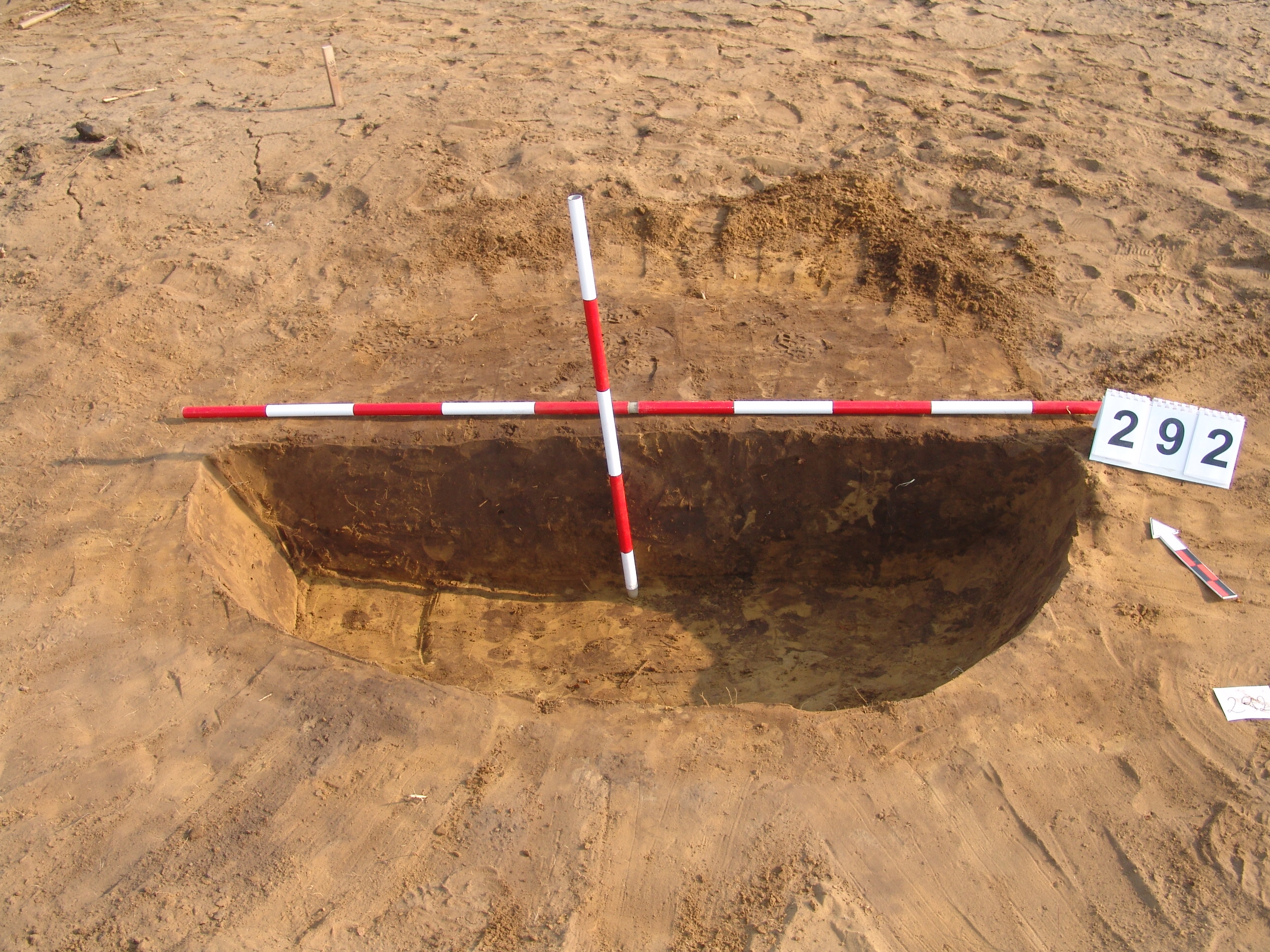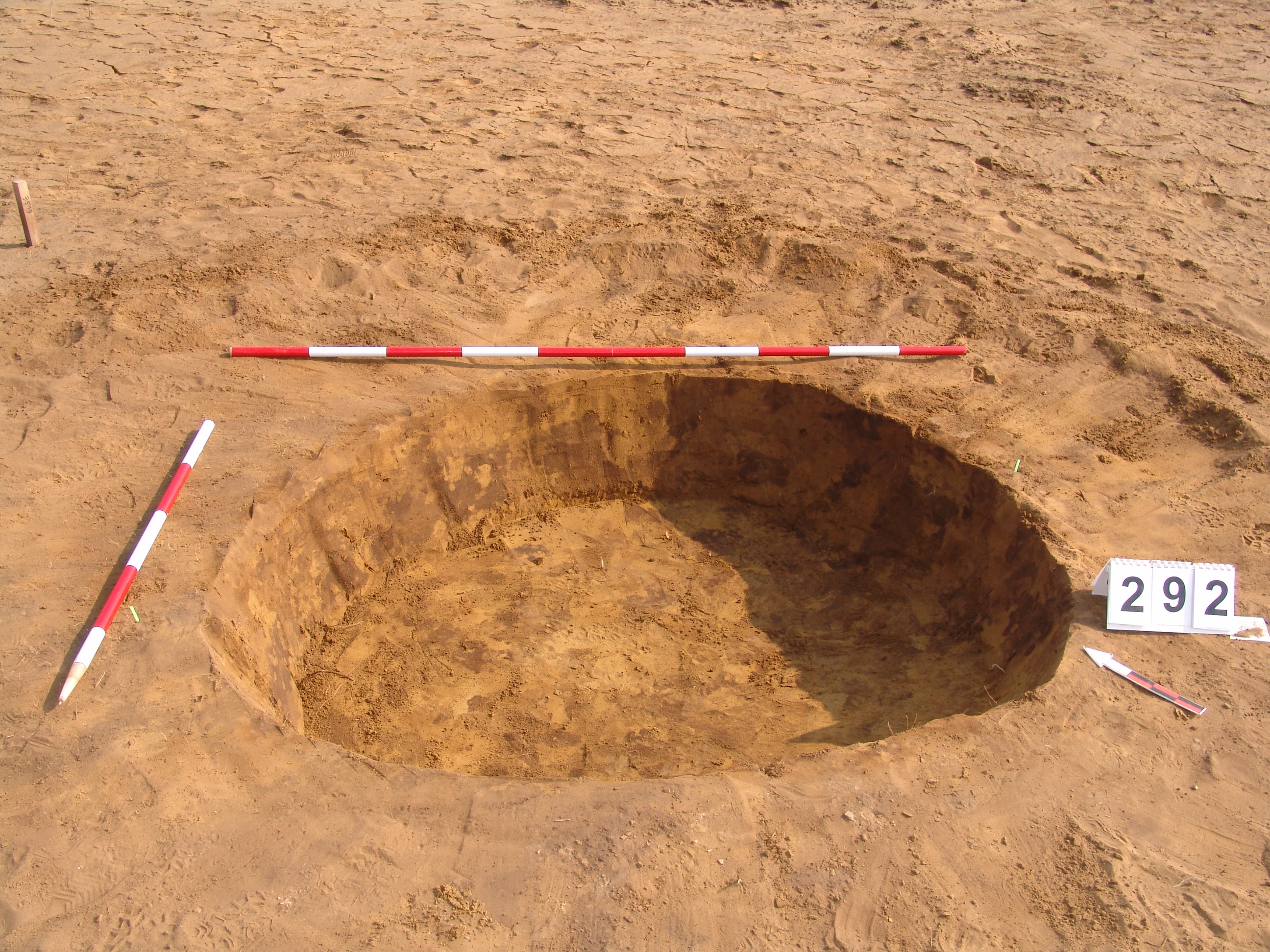 A 3519. karótól DDNy-ra 1,5 méterre ovális, kicsit elúszó folttal jelentkező gödör. Kissé meredek falú, egyenes aljú gödör. Ovális alaprajzú.