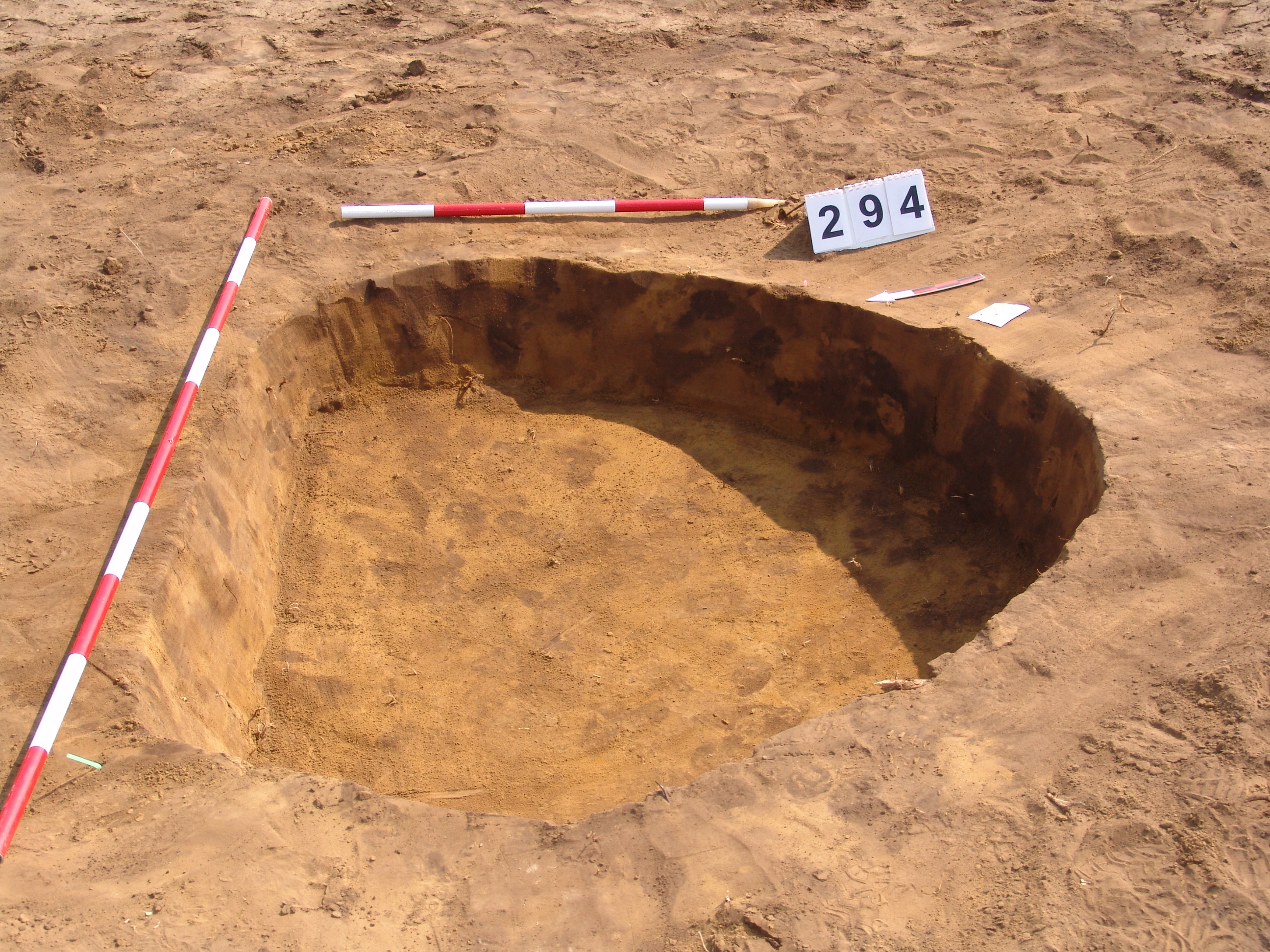 A 4222. karótól DDK-re kerek, kissé elúszó folttal jelentkezett. Betöltése: szürkésbarna, állatjáratokkal. Szabálytalan kör alaprajzú, csaknem függőleges falú gödör. Alja egyenes. Átm. É-D 160 Ny-K 145 M: 30-35