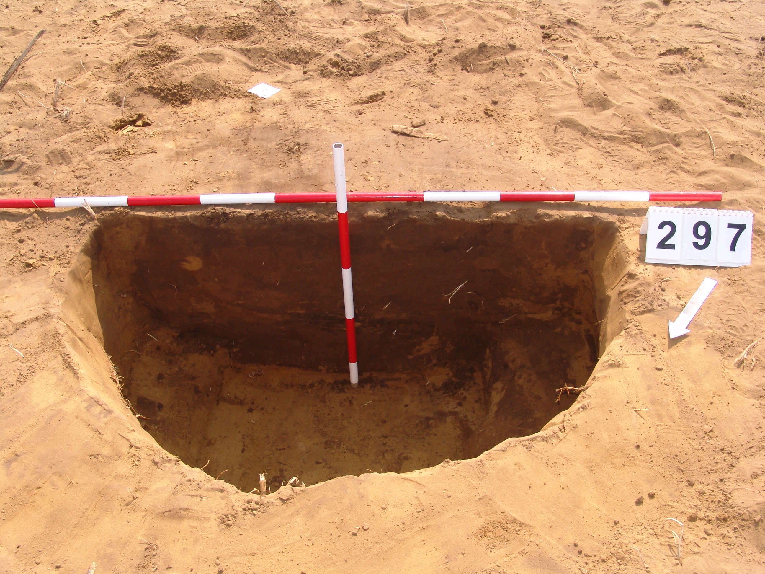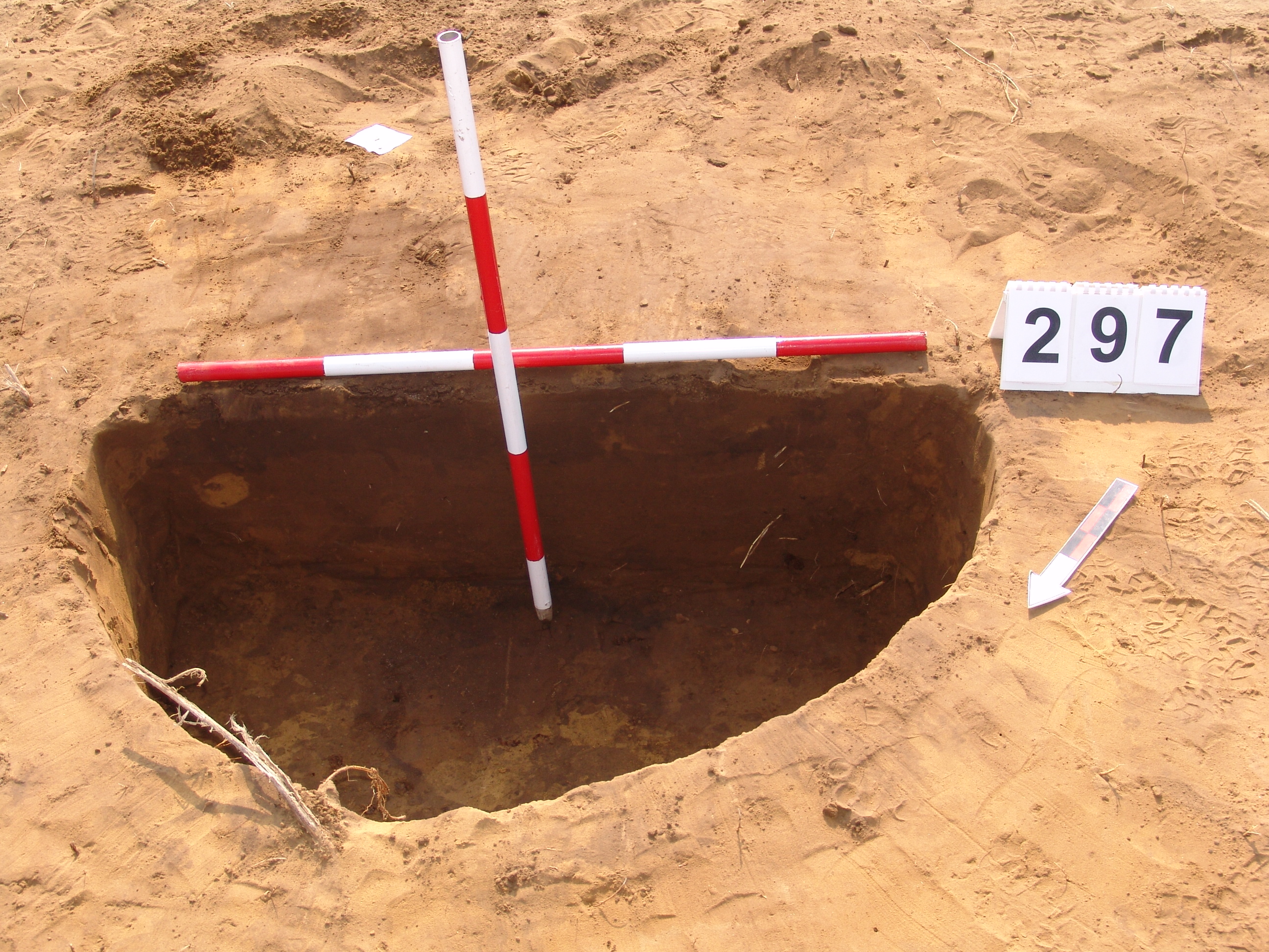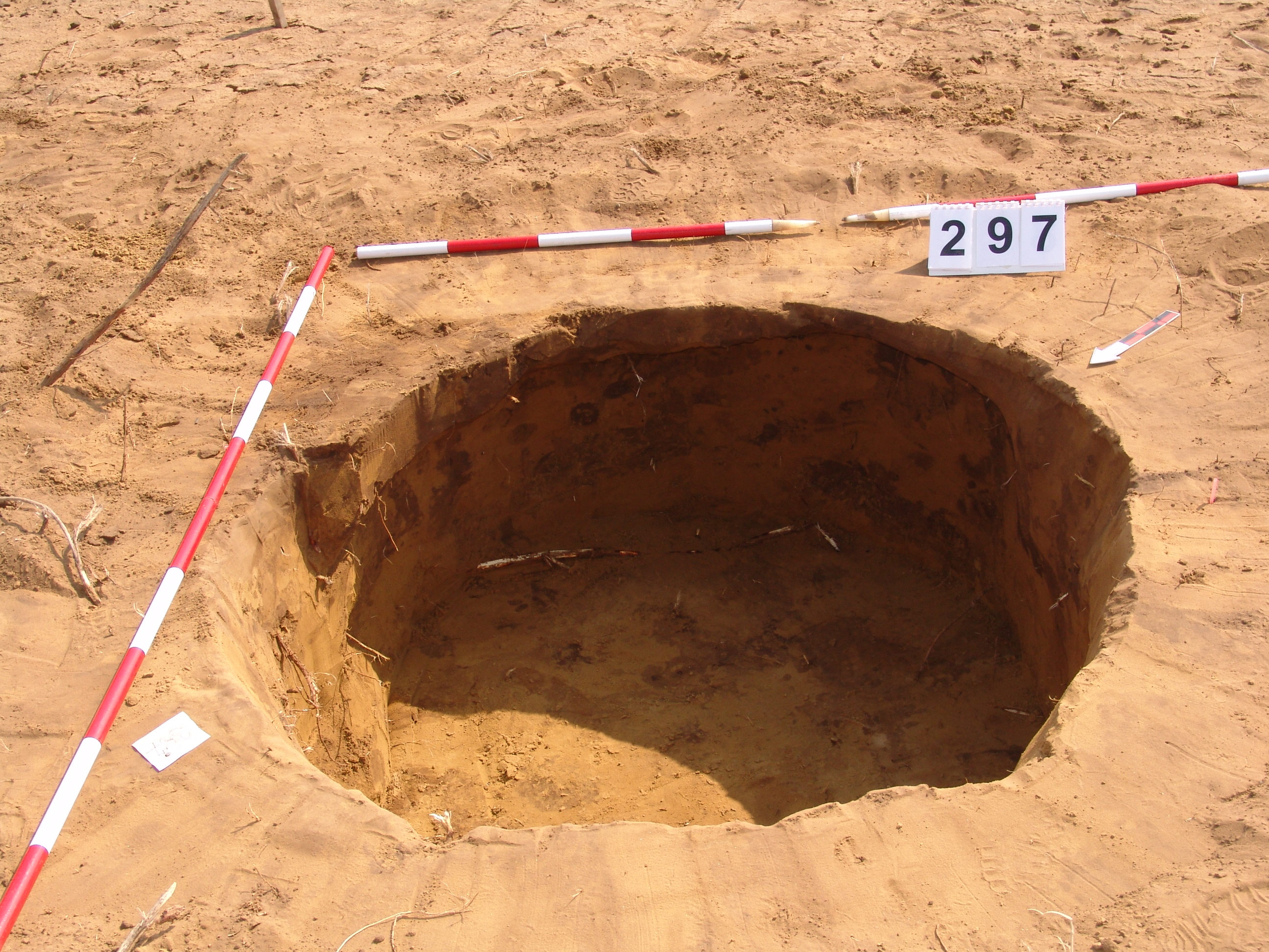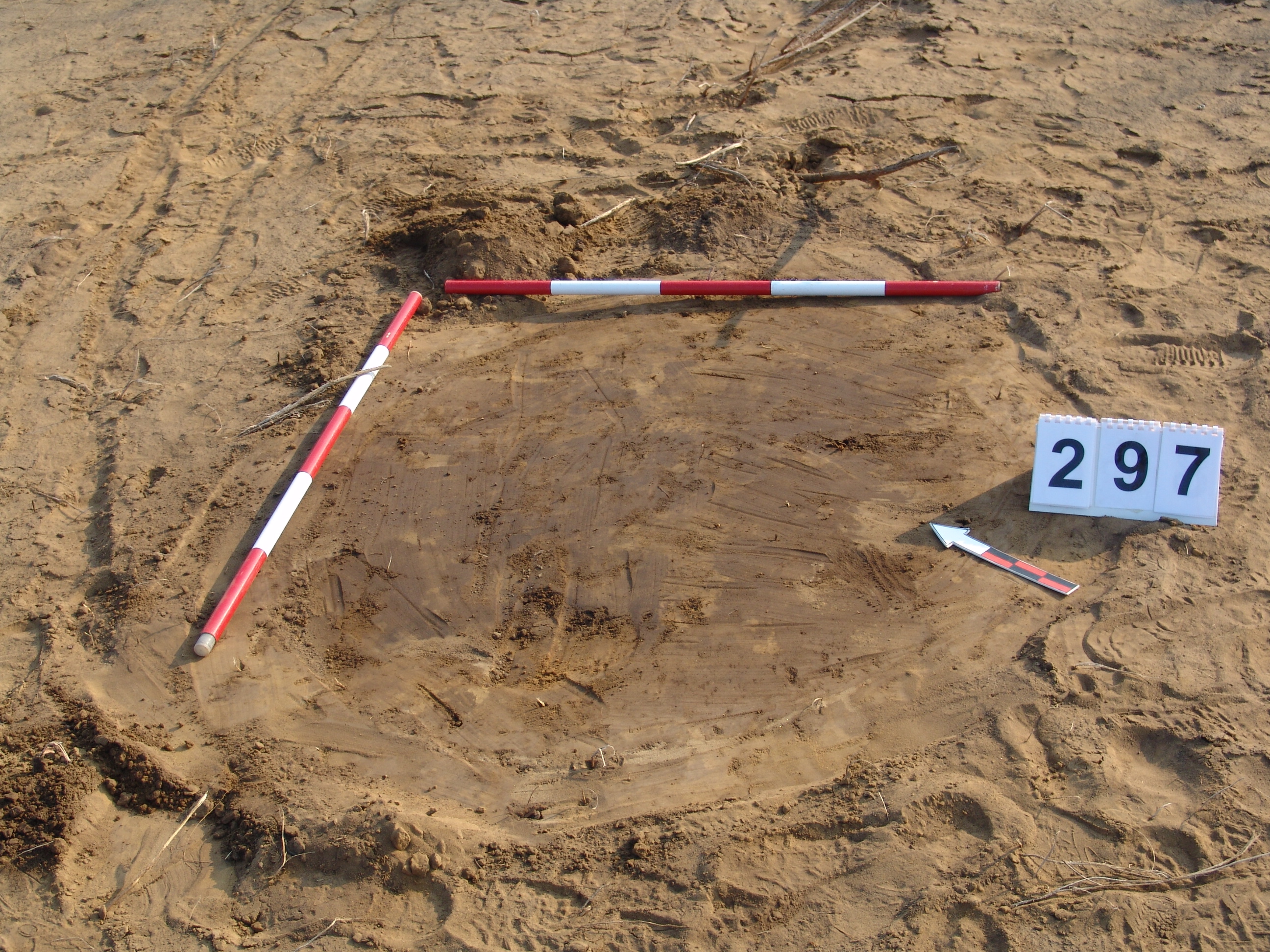 A 3521. karótól É-ra kb. 6 méterre kissé elúszó kerek folttal jelentkezett. Méhkas alakú, egyenes aljú, kör alaprajzú gödör.