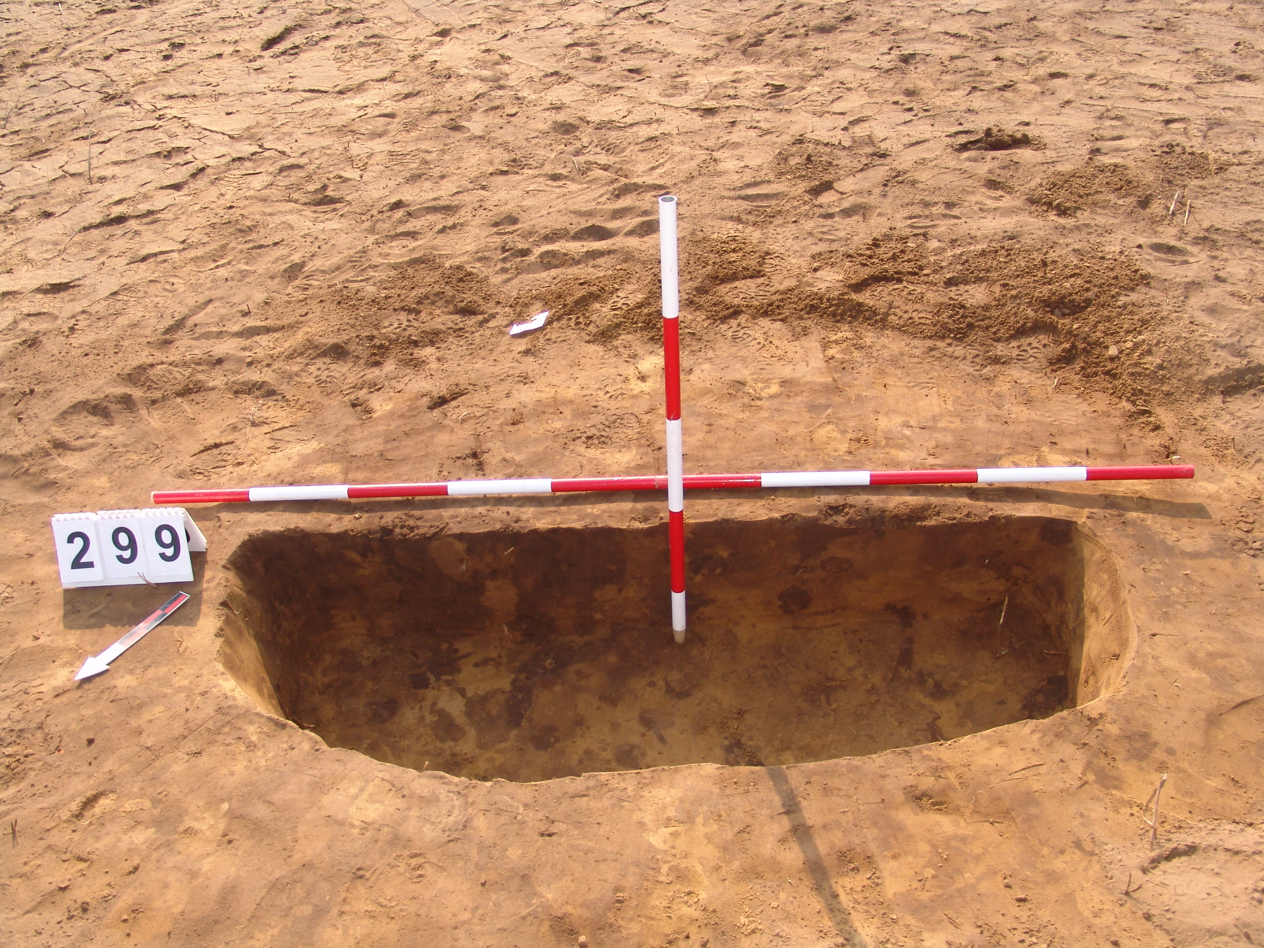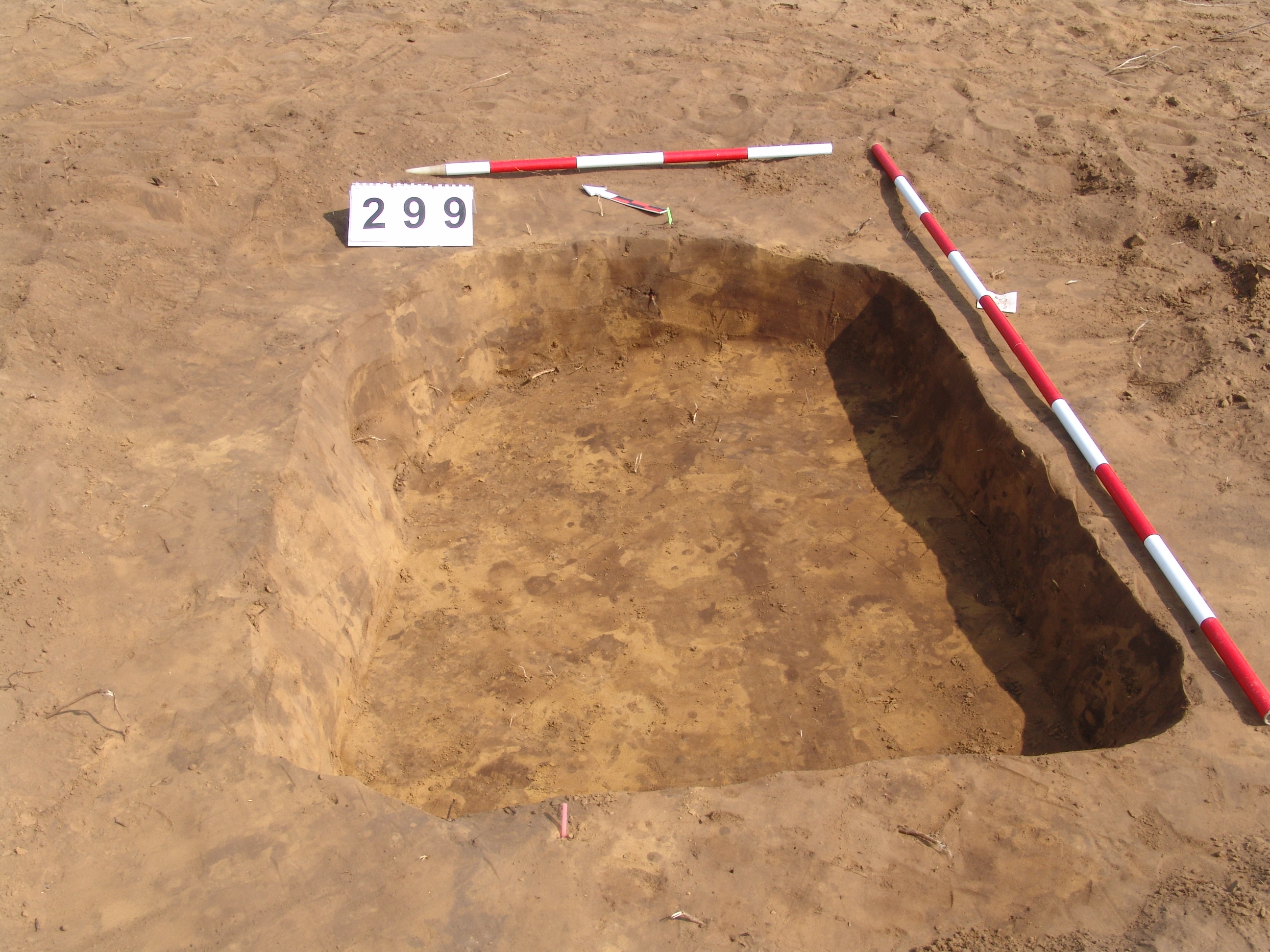 Betöltése: szürkésbarna, állatjáratokkal. A Ny-i szél erősen túlbontott. Kör alaprajzú, csaknem függőleges falú, egyenes aljú gödör.
