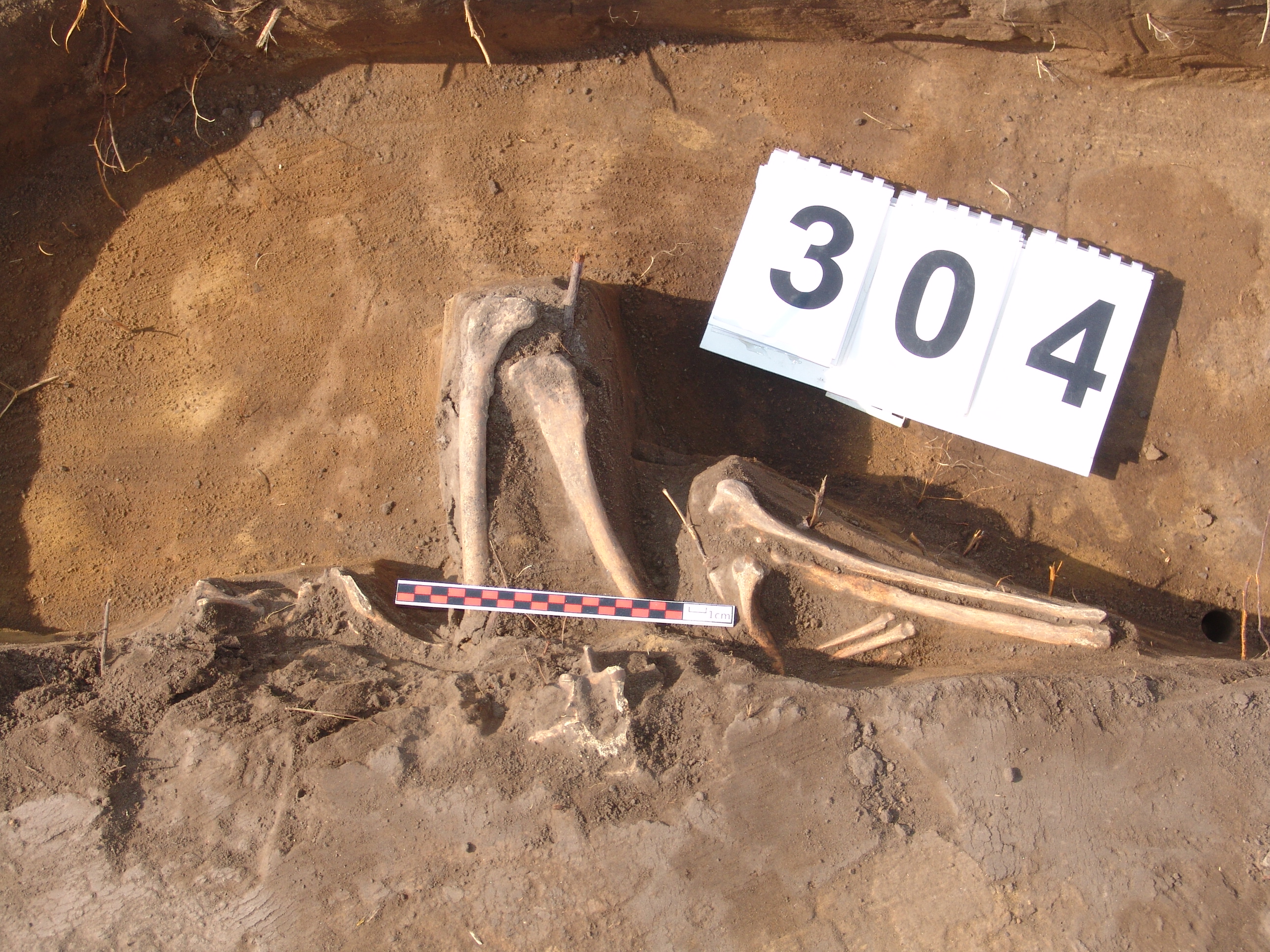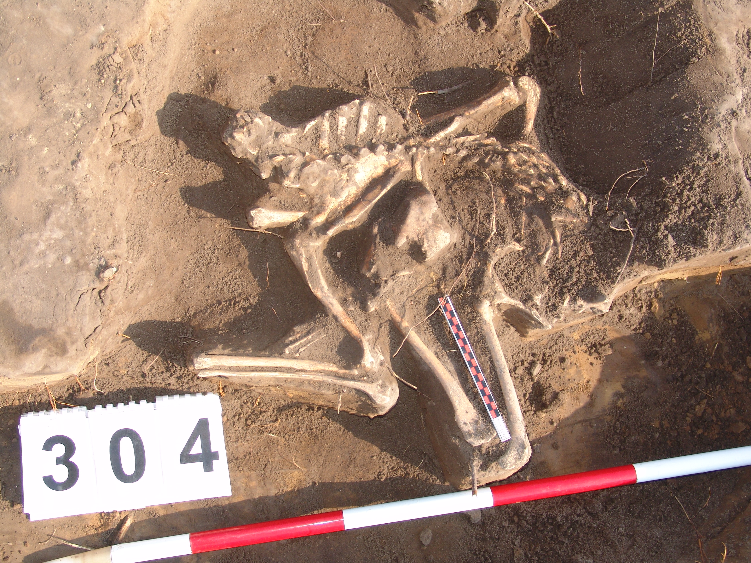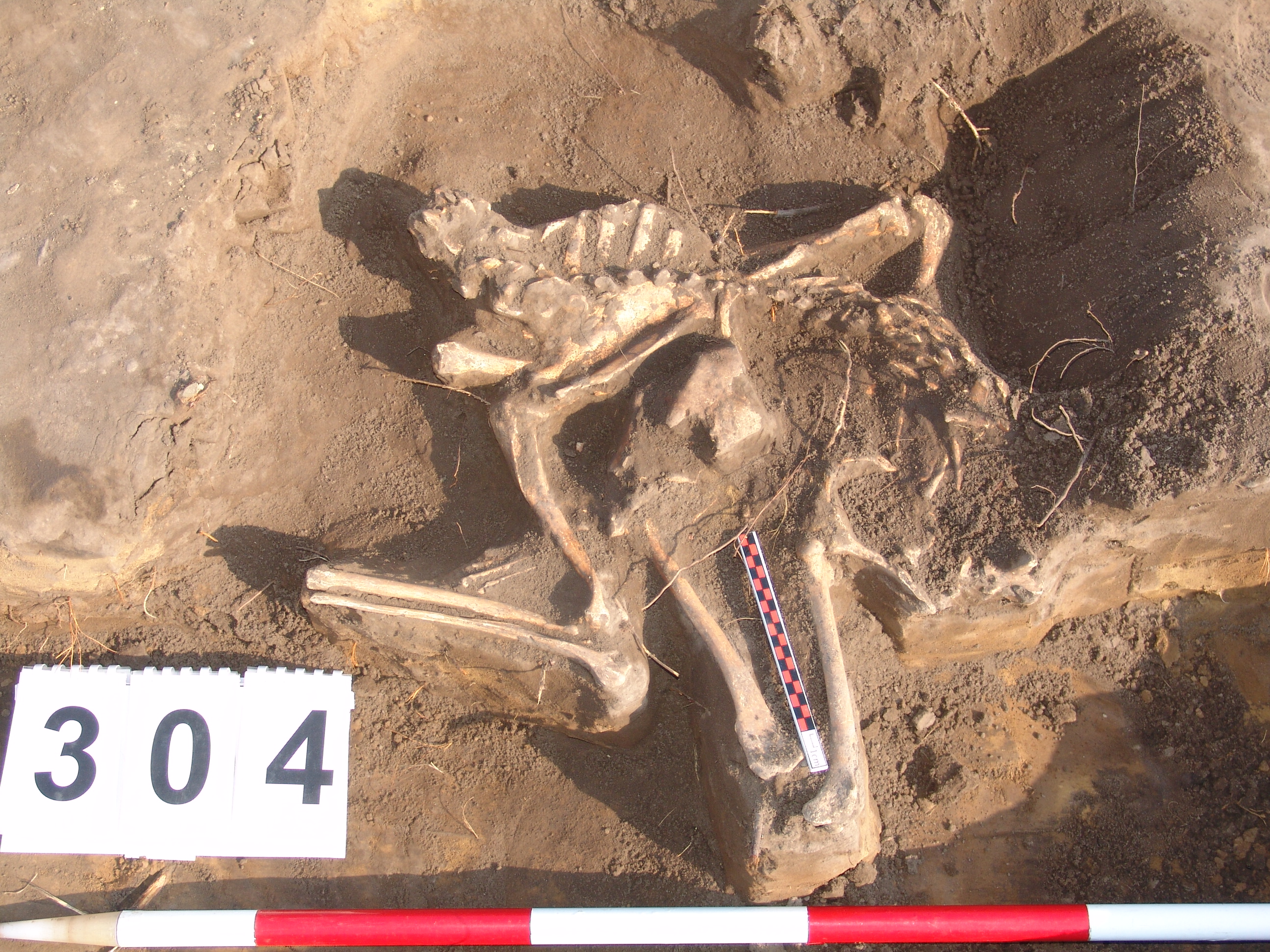 A jelentkezési szint alatt 10 cm-rel egy állat váza jelentkezett. Valószínűleg kutya, de a koponya már a nyesési szint felett lehetett és elpusztult.