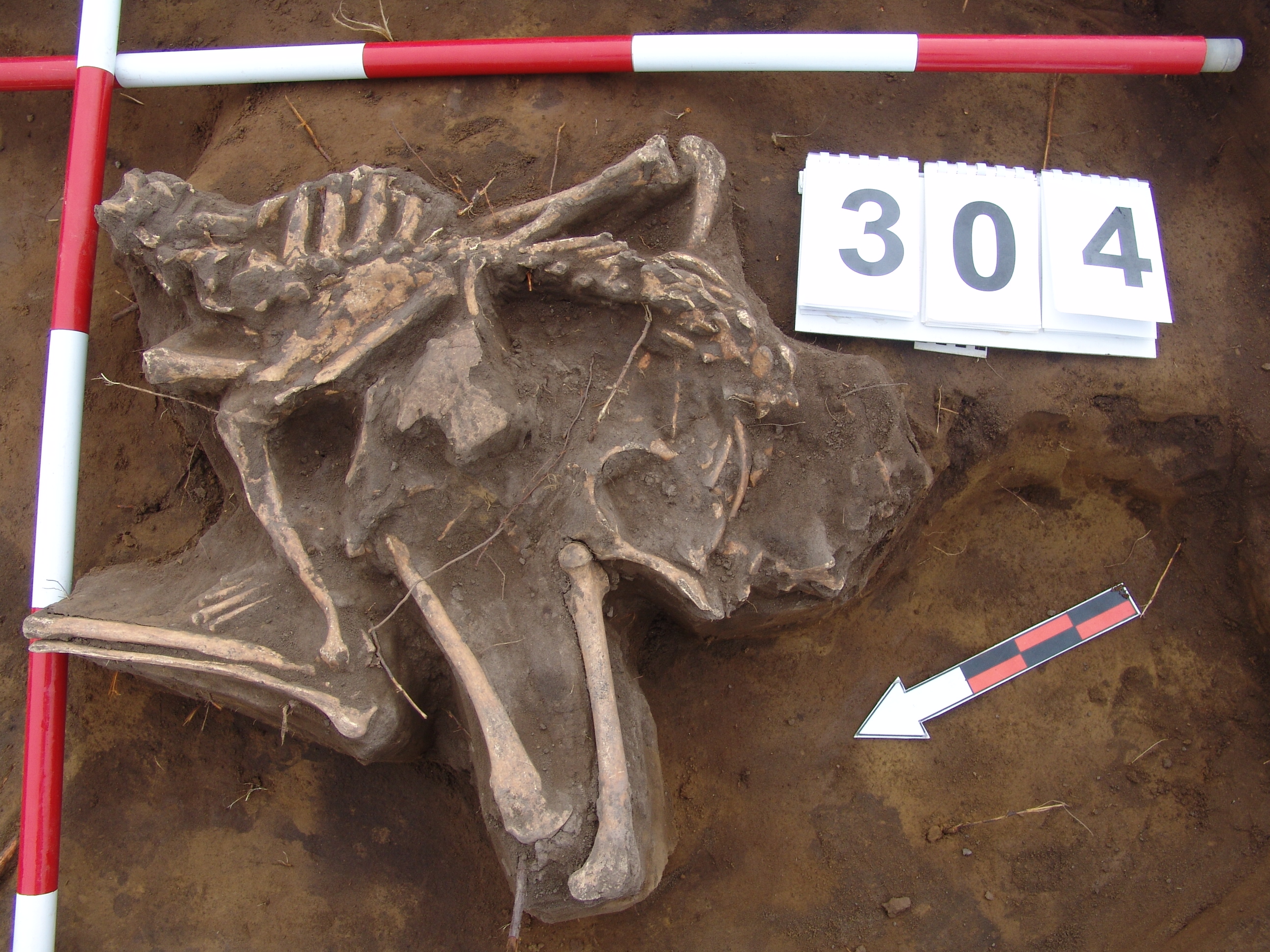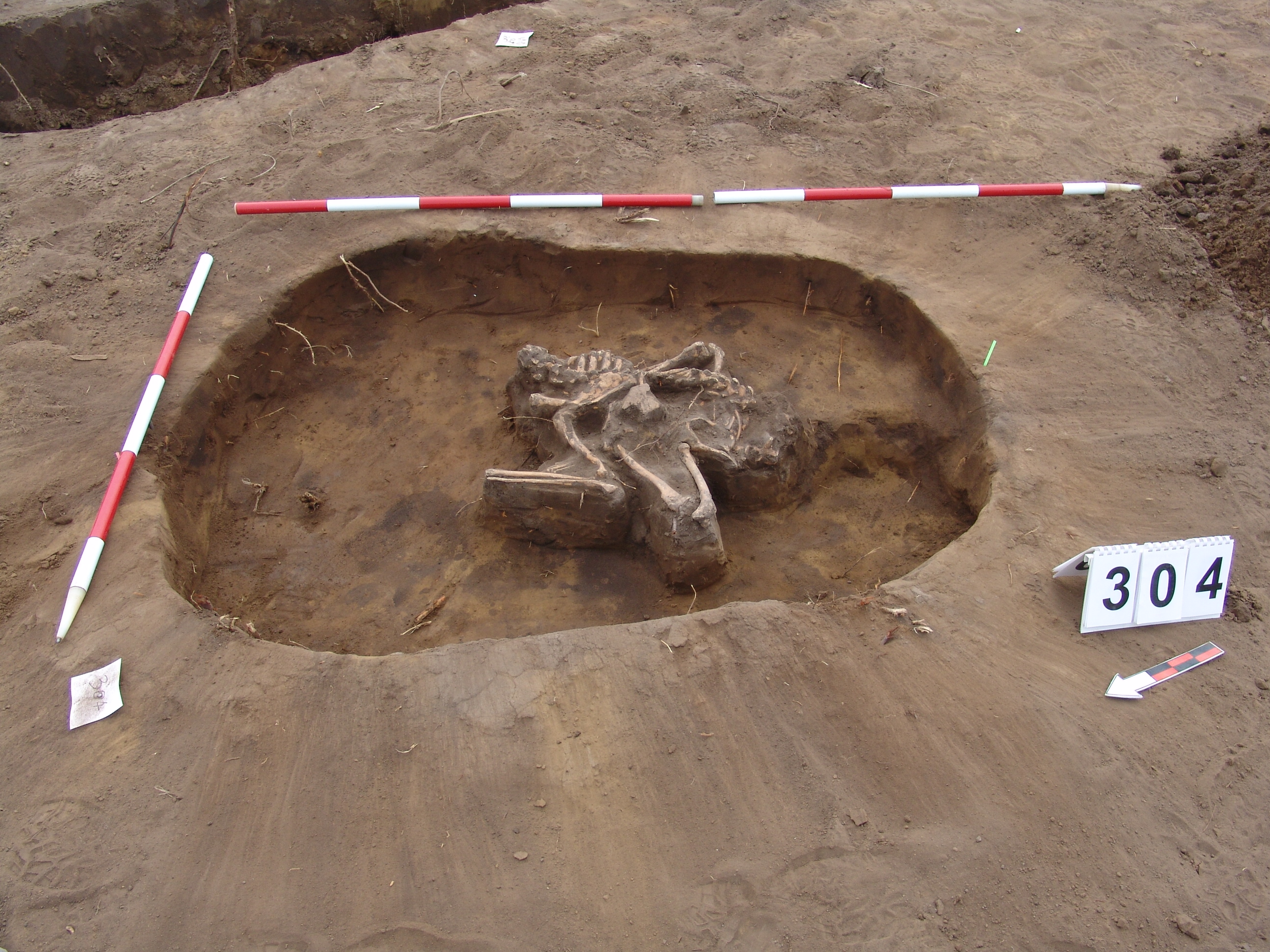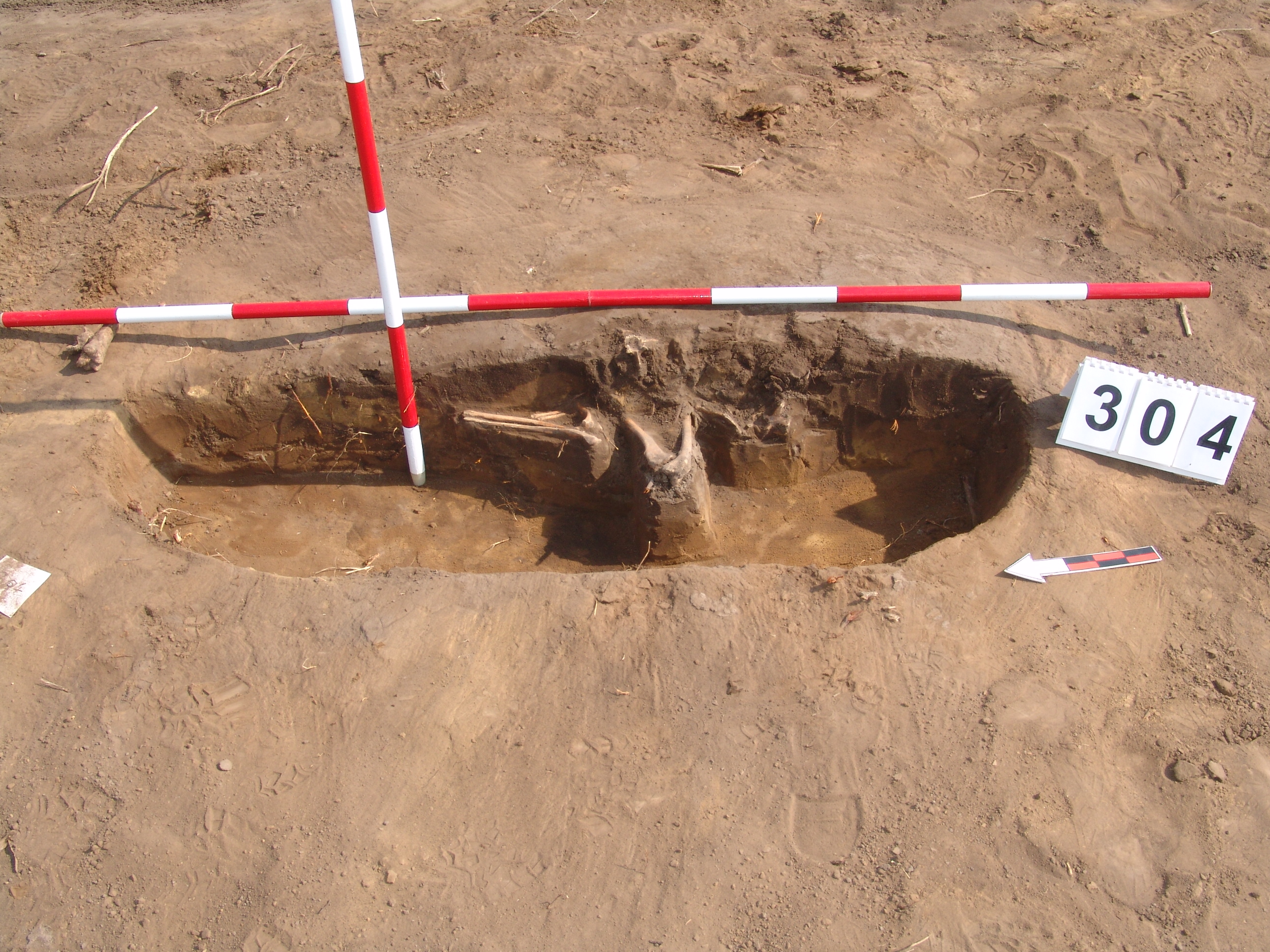 A jelentkezési szint alatt 10 cm-rel egy állat váza jelentkezett. Valószínűleg kutya, de a koponya már a nyesési szint felett lehetett és elpusztult.